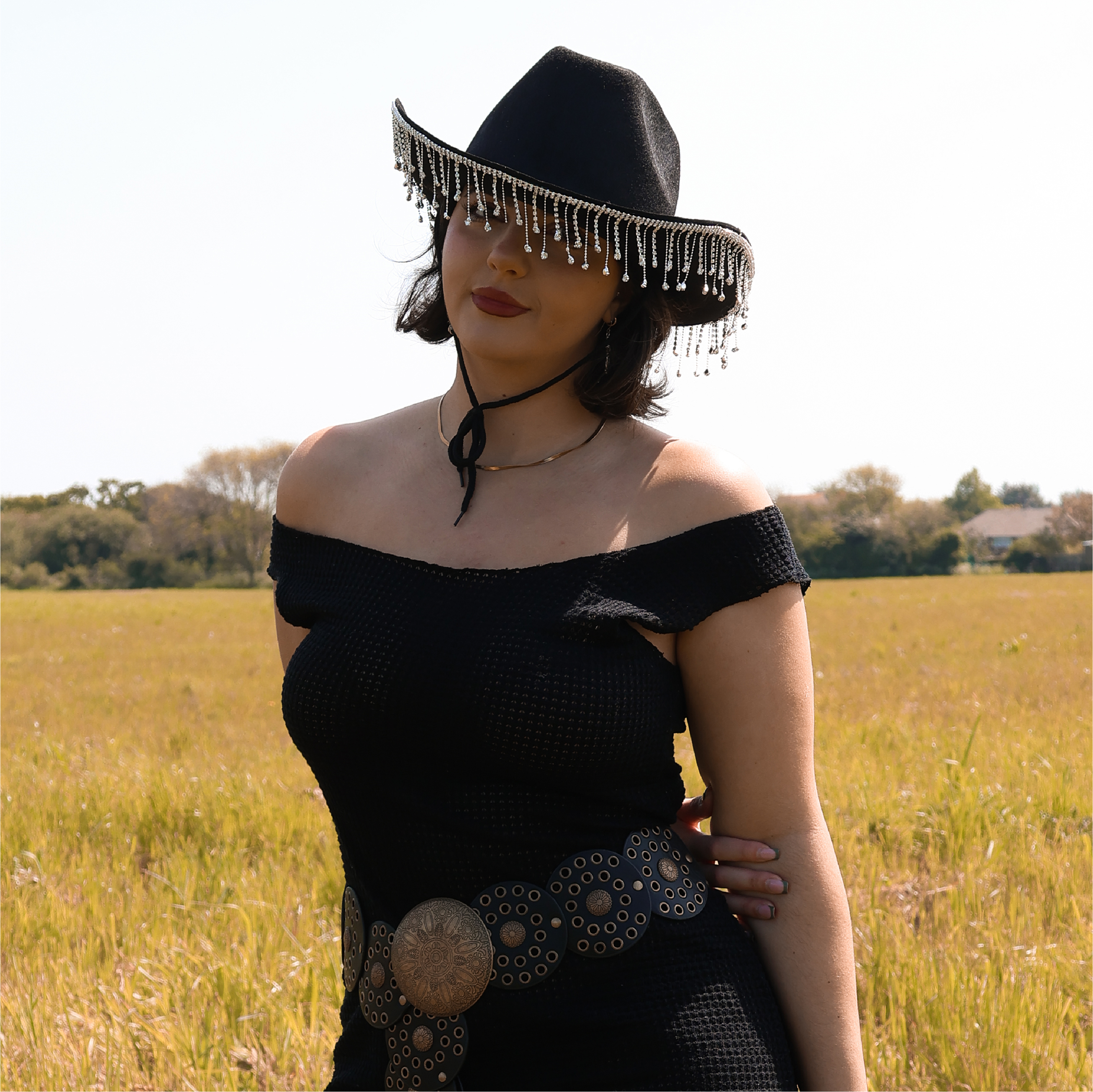 PERFECT FOR MUSIC EVENTS: There's no better way to celebrate a night filled with music and dancing than with our Black Cowboy Hat with Diamantés!