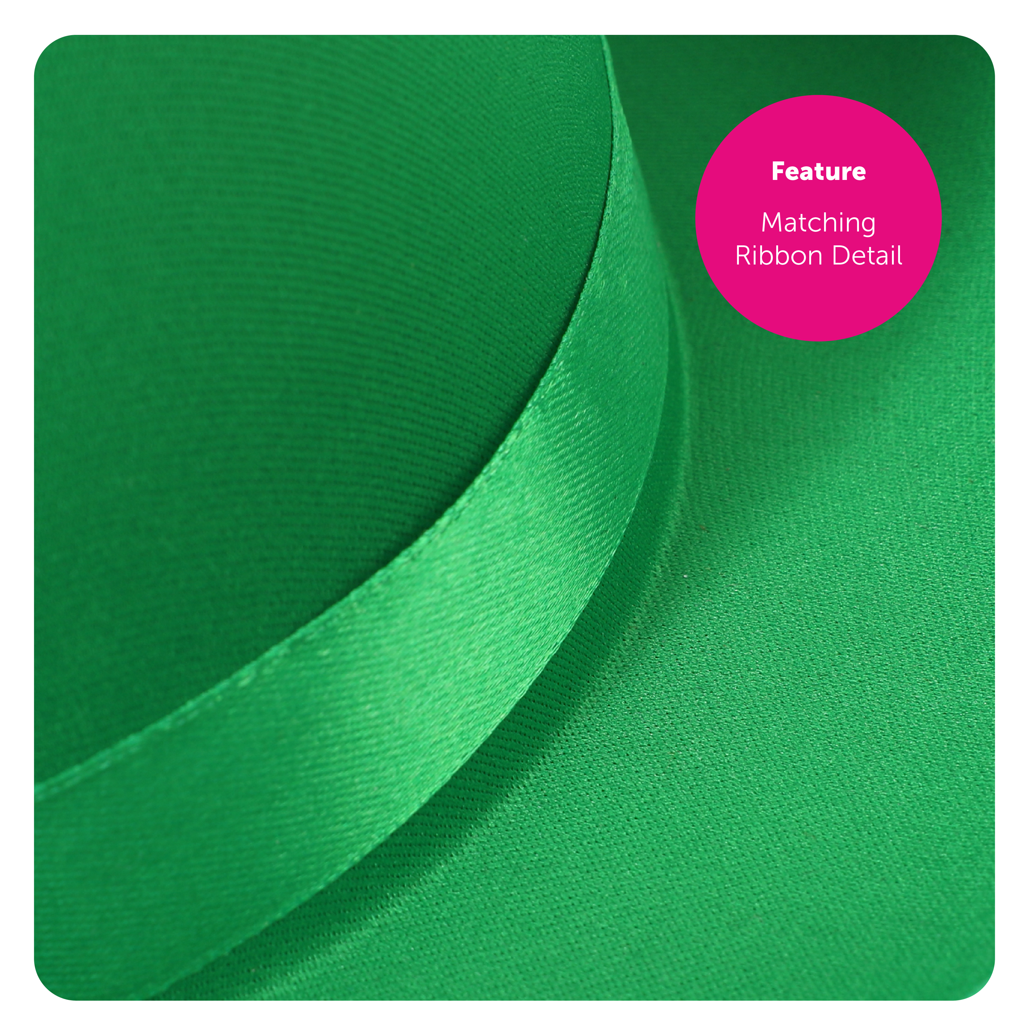 TOP HAT DETAILS: This Top Hat is a vibrant Green Hat covered in a smooth satin material, with a matching Green Ribbon band, the perfect way to finish off your fancy dress outfit!