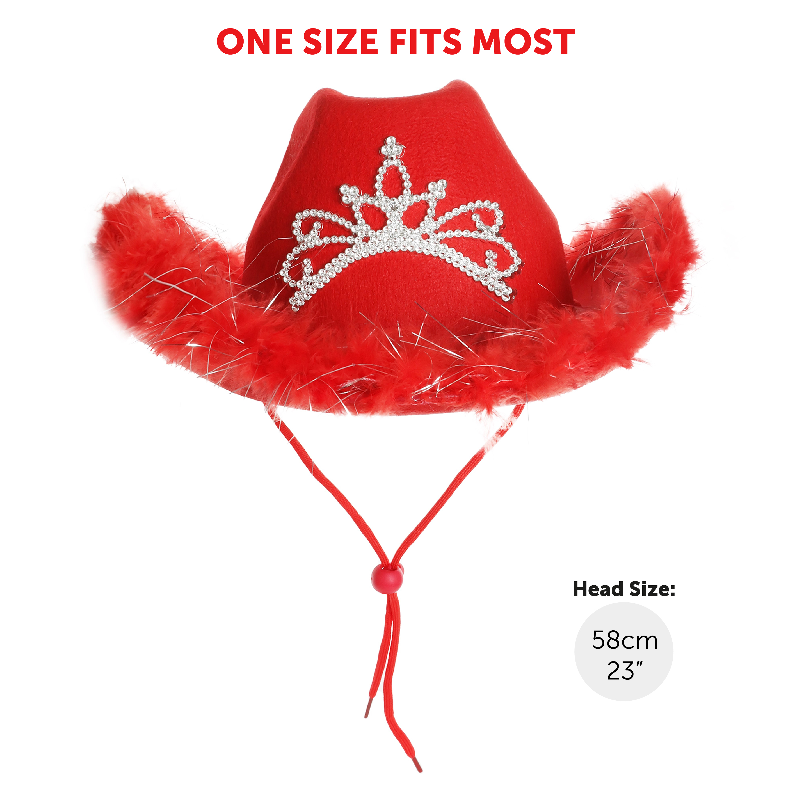ONE SIZE FITS MOST: The Red Tiara Cowgirl Hat is the perfect size for most to wear with a suitable head size of 58cm (23"), and an adjustable string to wear comfortably all night long!
