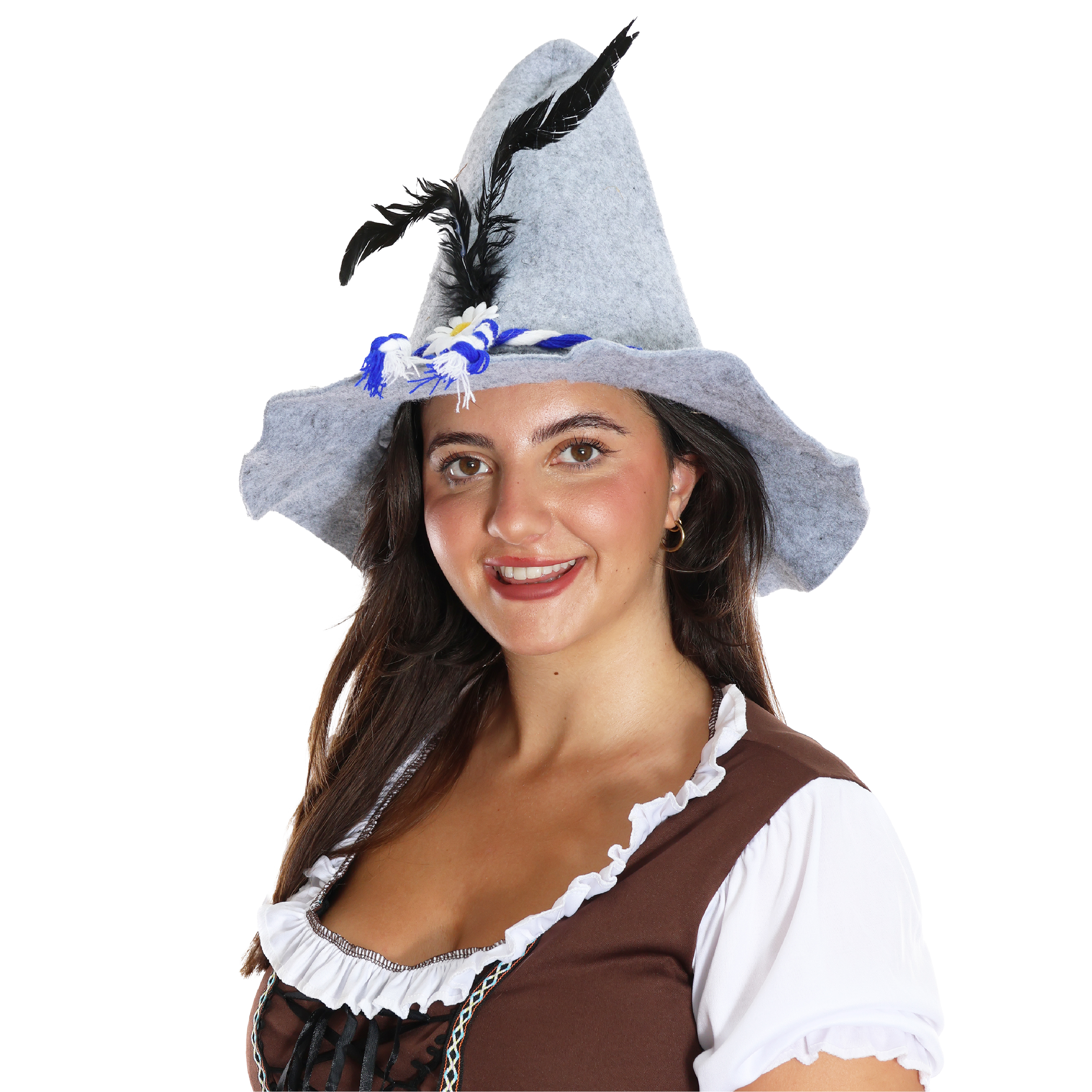 ONE SIZE FITS MOST: The Grey Bavarian Seppel Hat is one size, a comfortable head size for most Adults to wear, measuring 58cm (23")