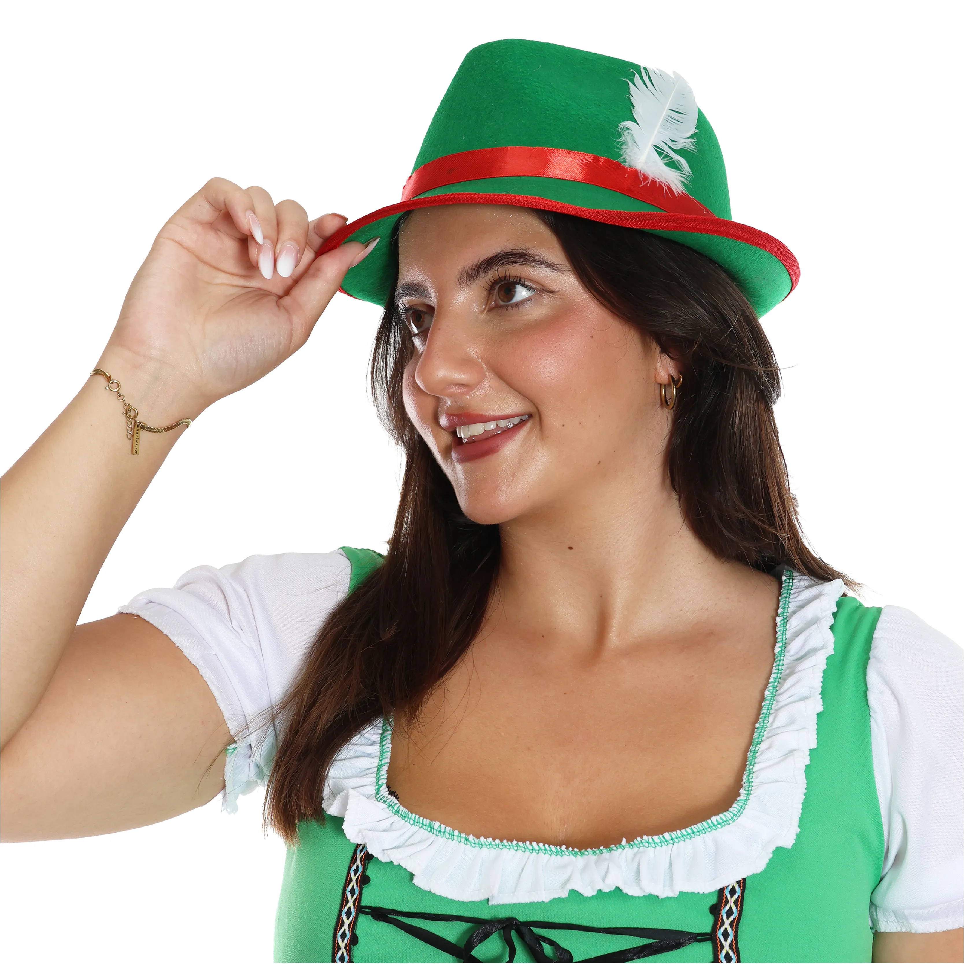 Celebrate any German-themed event or Oktoberfest with style and high spirits with our Green Bavarian Hat, and swing that beer stein around with ease and joy!