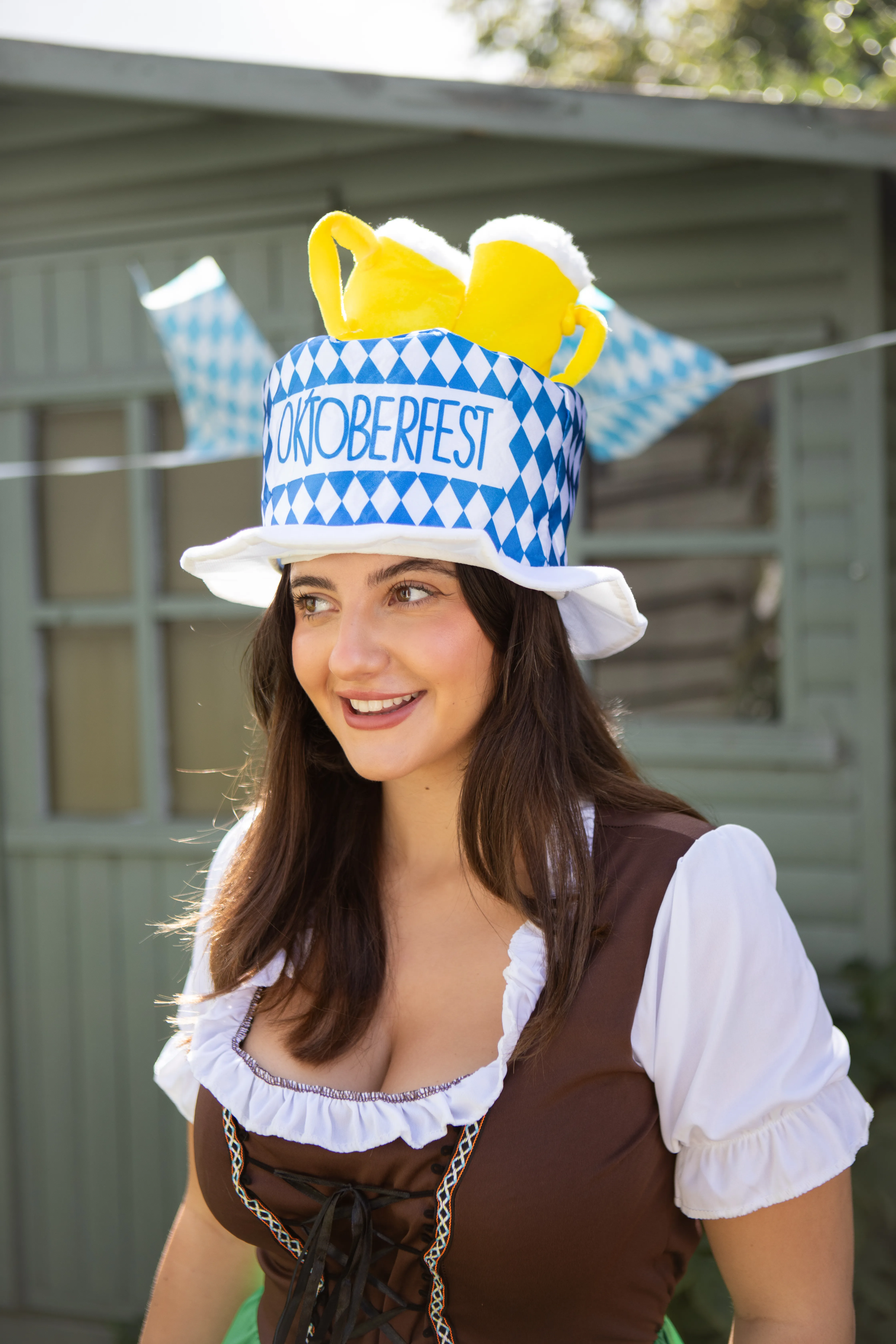 Get ready to raise your steins and dance in style with our Plush Oktoberfest Beer Stein Hat, a fun and eye-catching addition to your Bavarian party outfit!