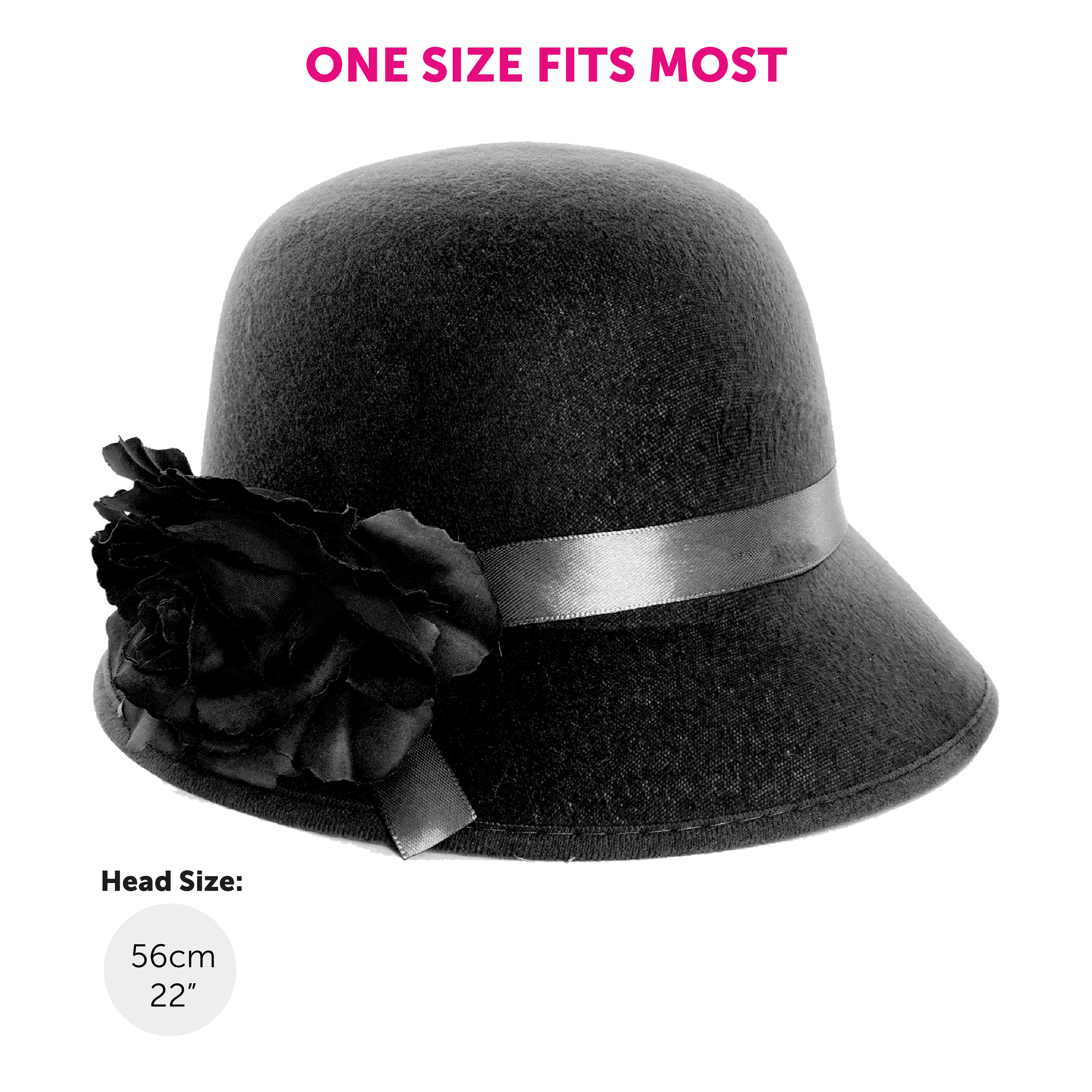 ONE SIZE FITS MOST: This Ladies Black Cloche Hat is available in just one size, with a suitable head size of 56cm (22"), you can wear it comfortably all day and night!