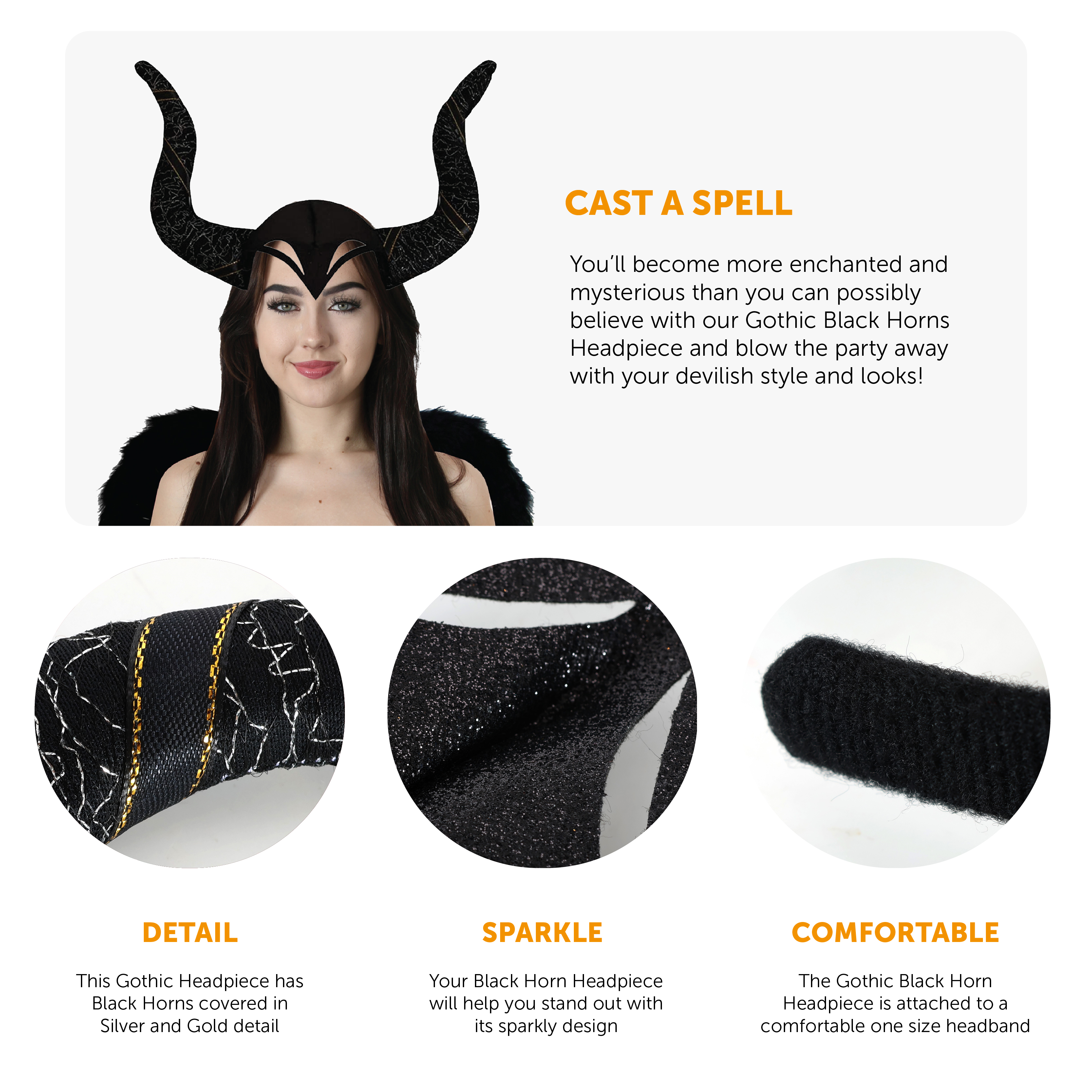 GOTHIC BLACK HORNS HEADPIECE: You’ll become more enchanted and mysterious than you can possibly believe with our Gothic Black Horns Headpiece and blow the party away with your devilish style and looks!