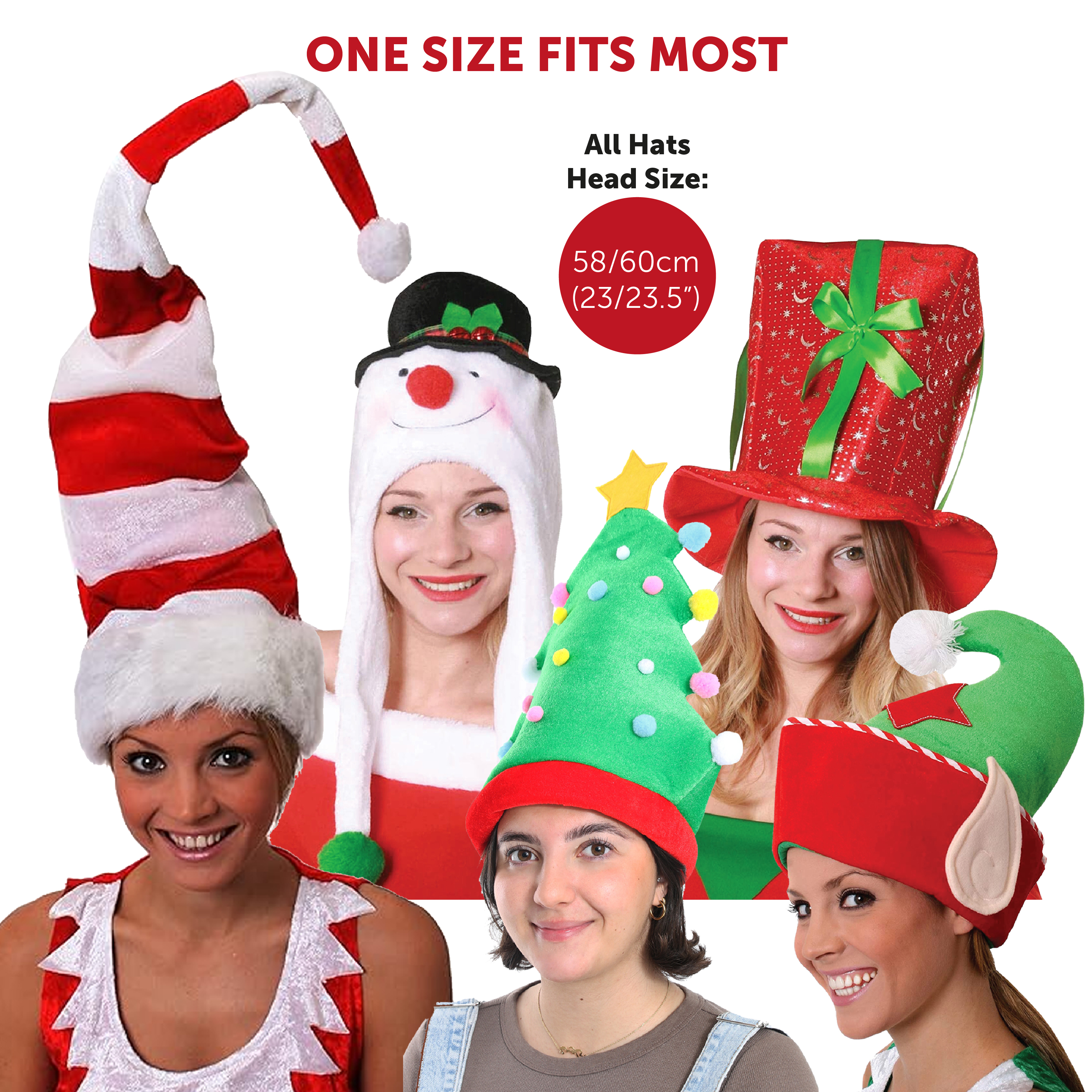 ONE SIZE FITS MOST: All of these Novelty Christmas Hats are available in one size, which is the perfect fit for most, each with a head circumference of approximately 58/60cm (23/23.5"), this should fit most Adults comfortably!