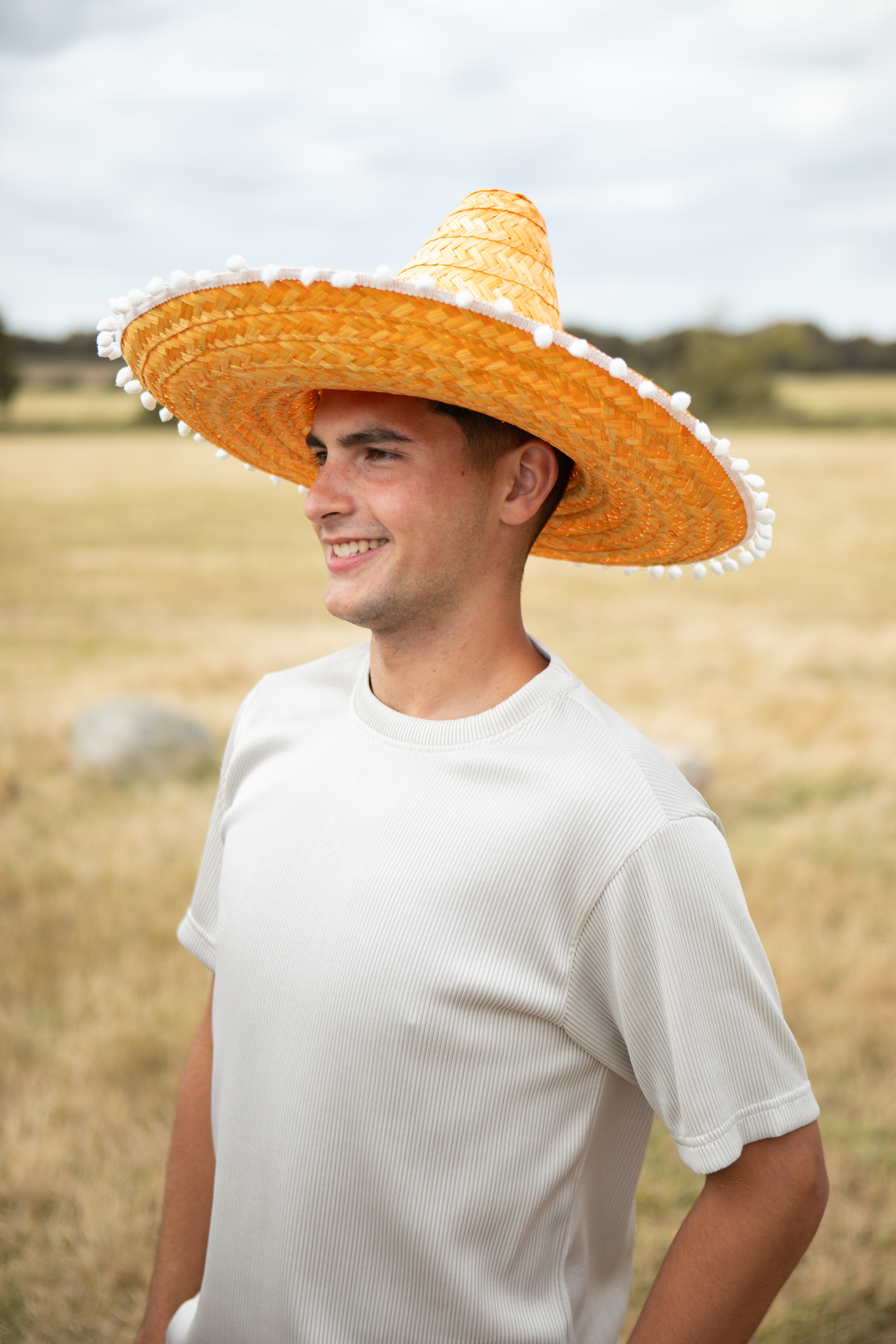 Orange Mexican Sombrero with Pom Pom Edging   £6.99
