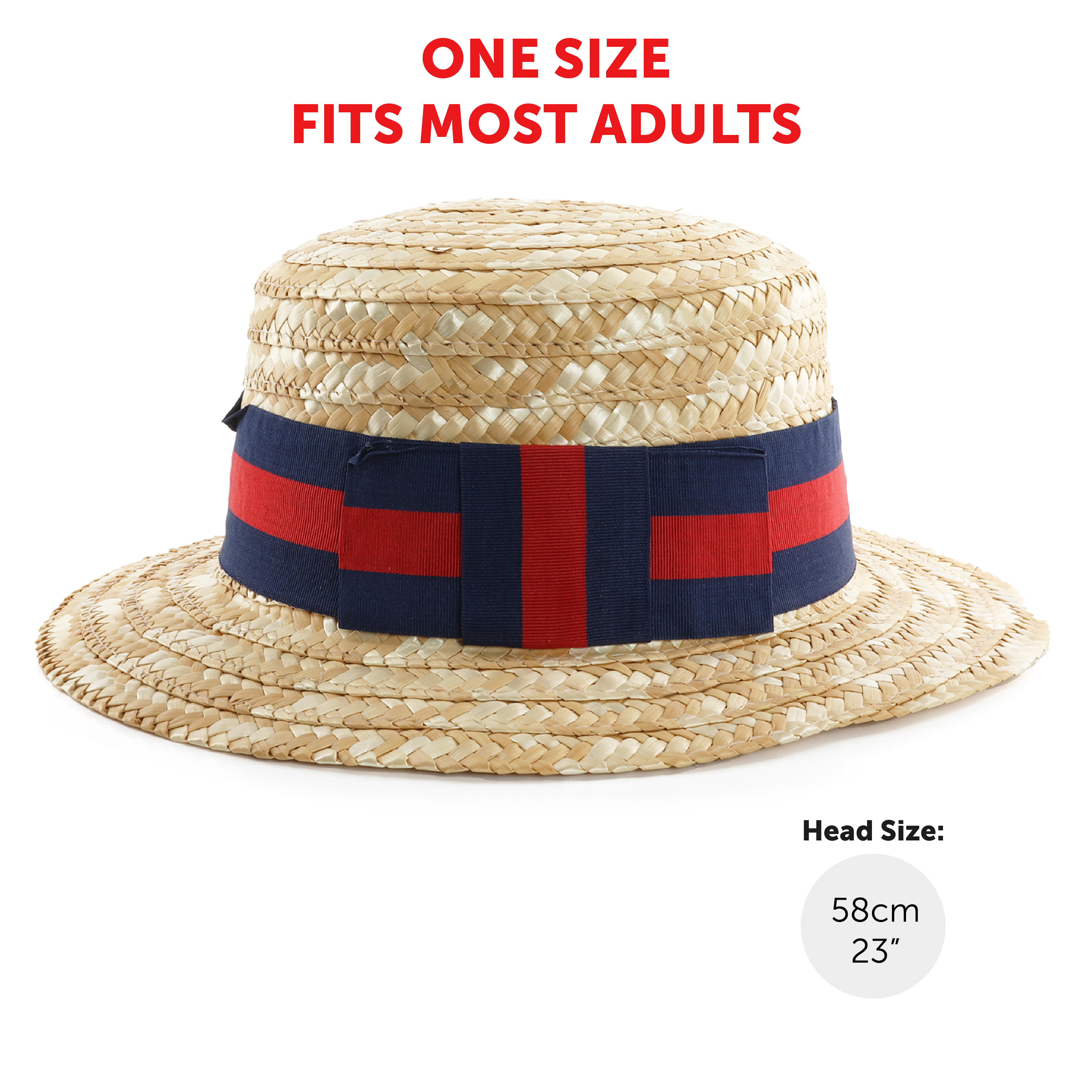 ONE SIZE FITS MOST: Your Straw Boater Hat is designed to be one size with the head size measuring up to 58cm (23"), the Hat also has an inner brim for a more secure fit!