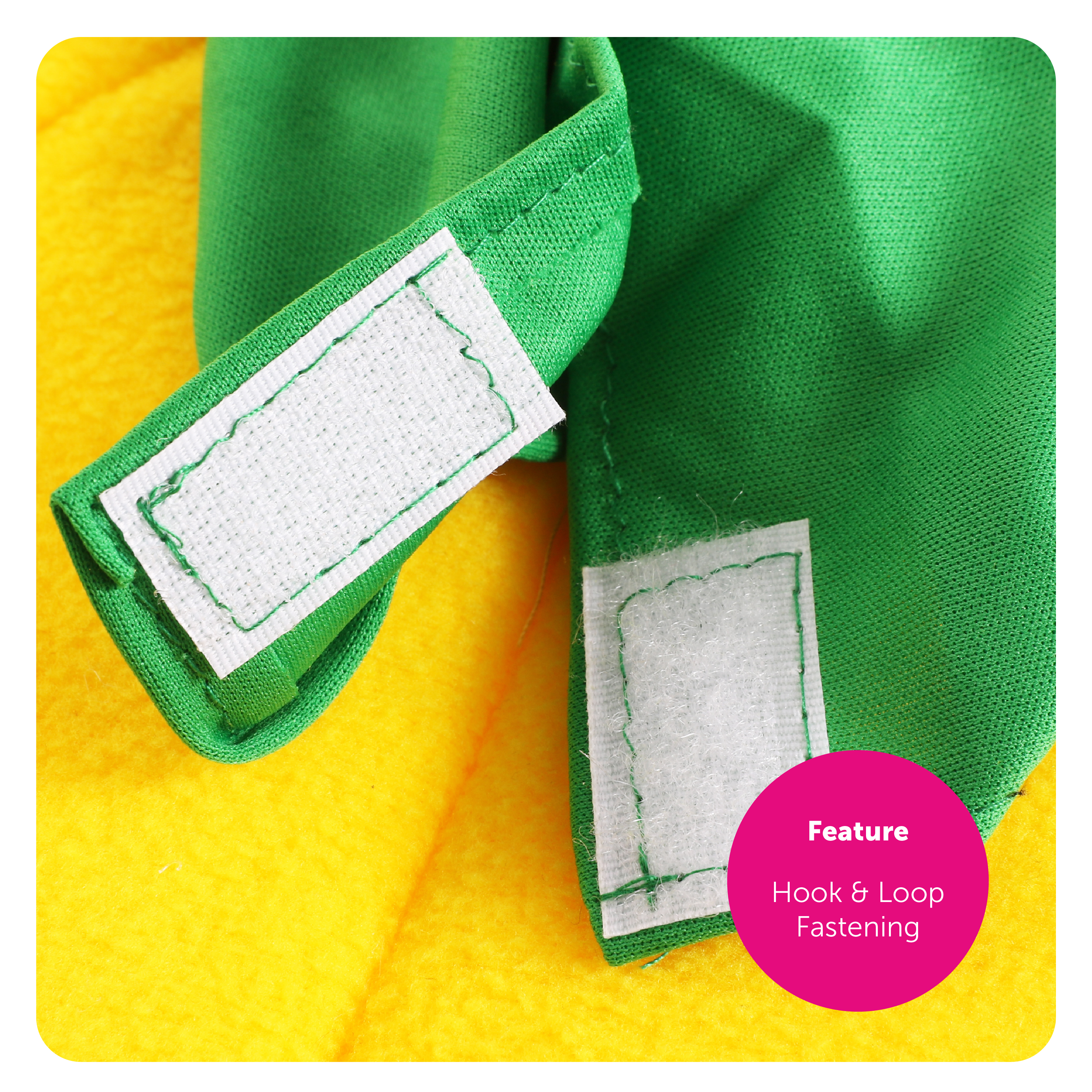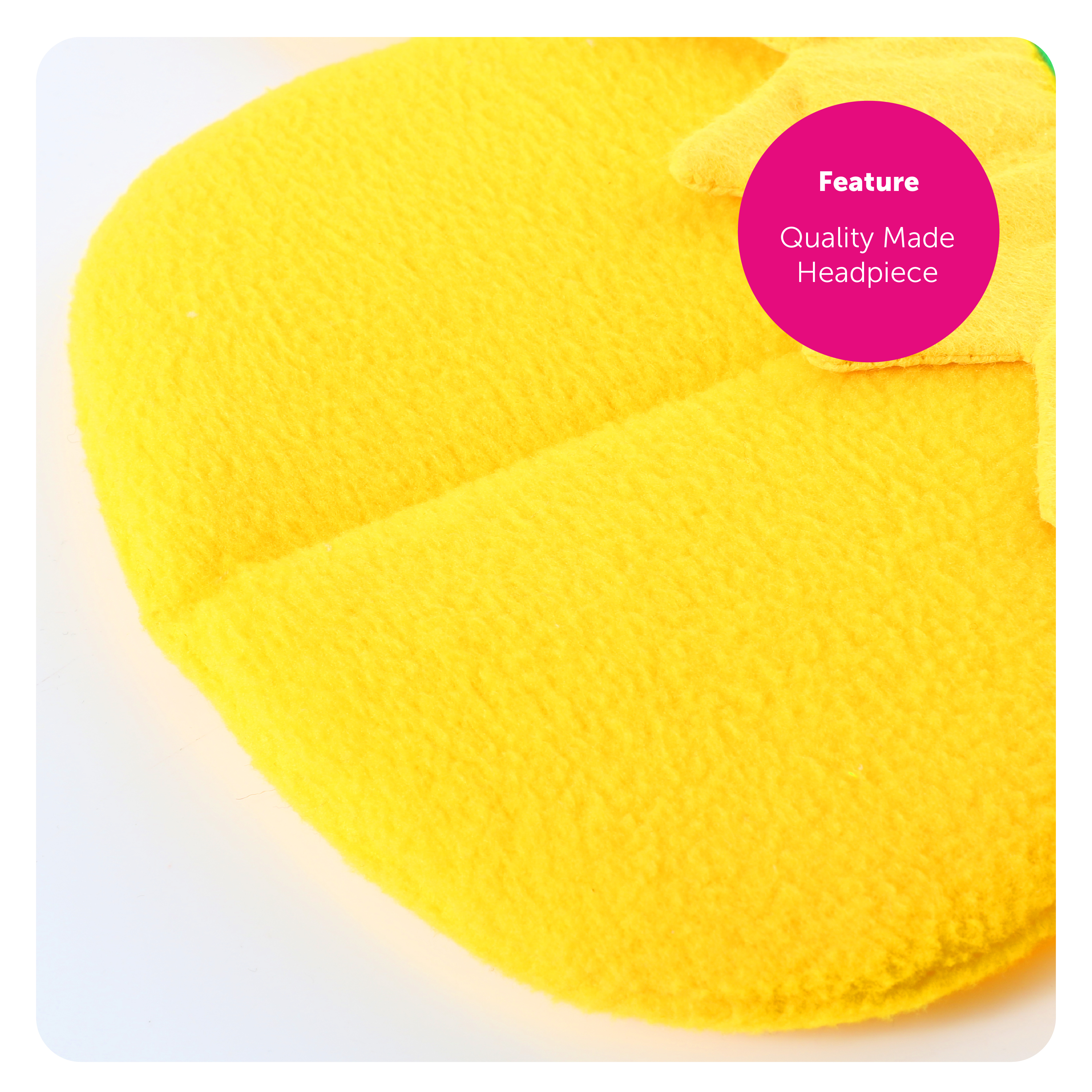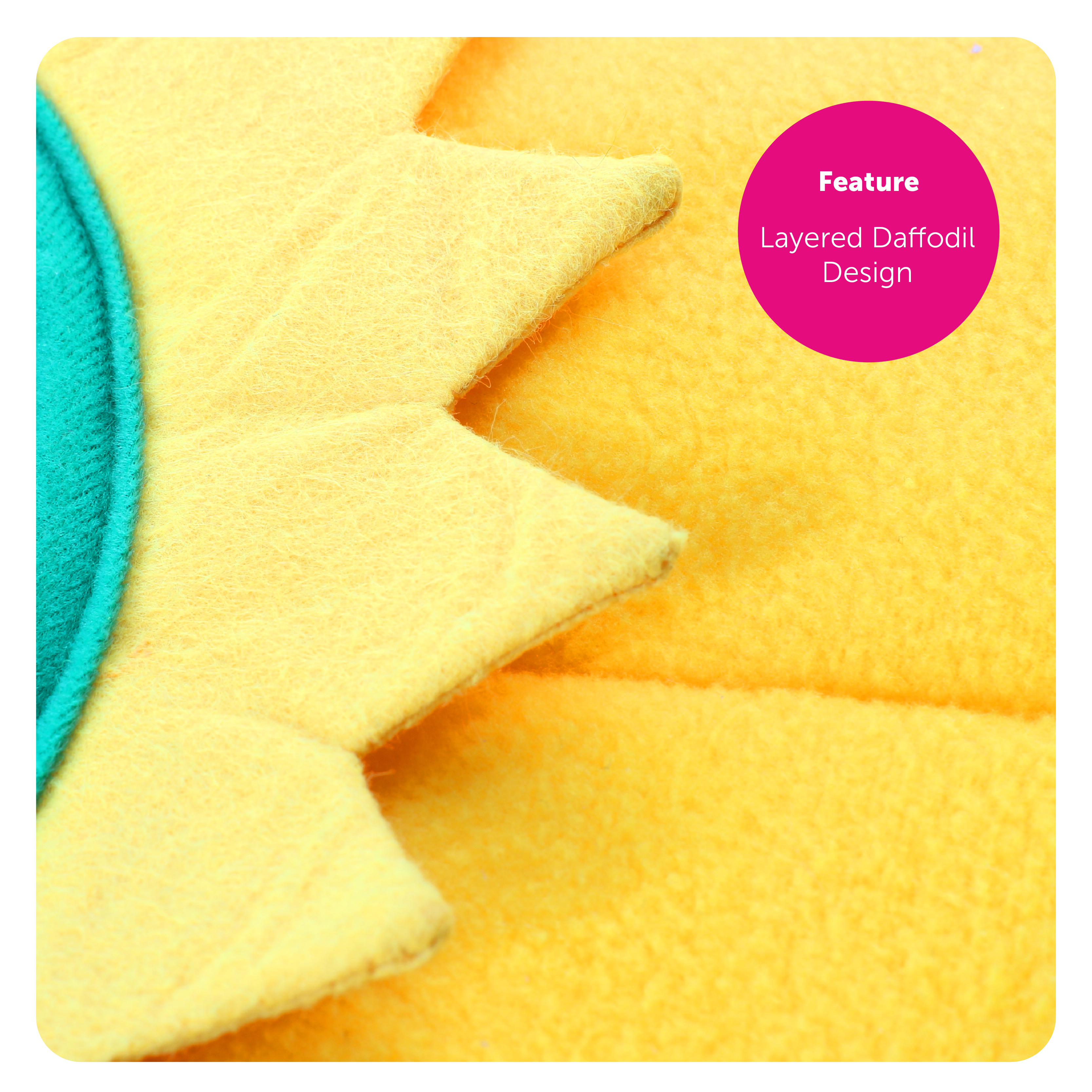 HEADPIECE DETAILS: Your Headpiece is a large Daffodil with bright yellow, layered petals and an easy fastening hook and loop green hood, the perfect way to celebrate Wales!