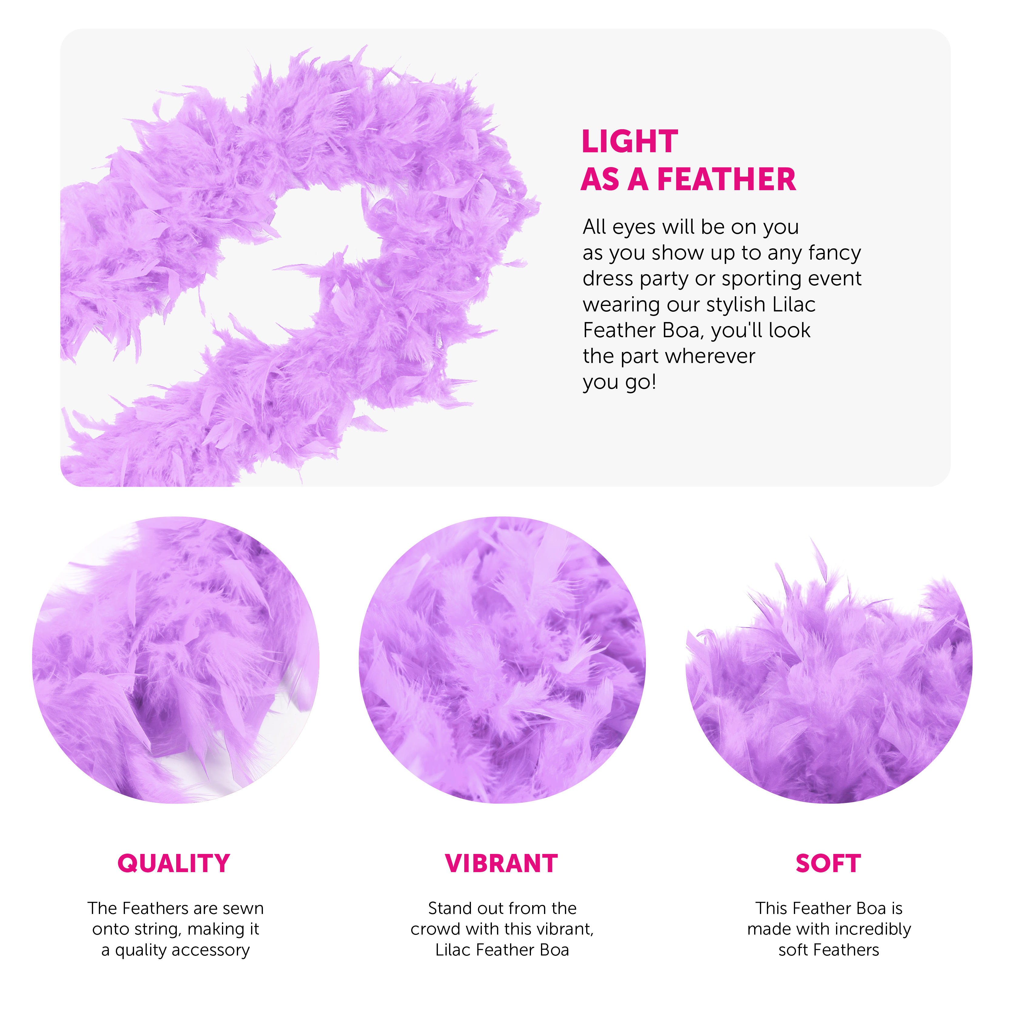 LILAC FEATHER BOA: All eyes will be on you as you show up to any fancy dress party or sporting event wearing our stylish Lilac Feather Boa, you'll look the part wherever you go!