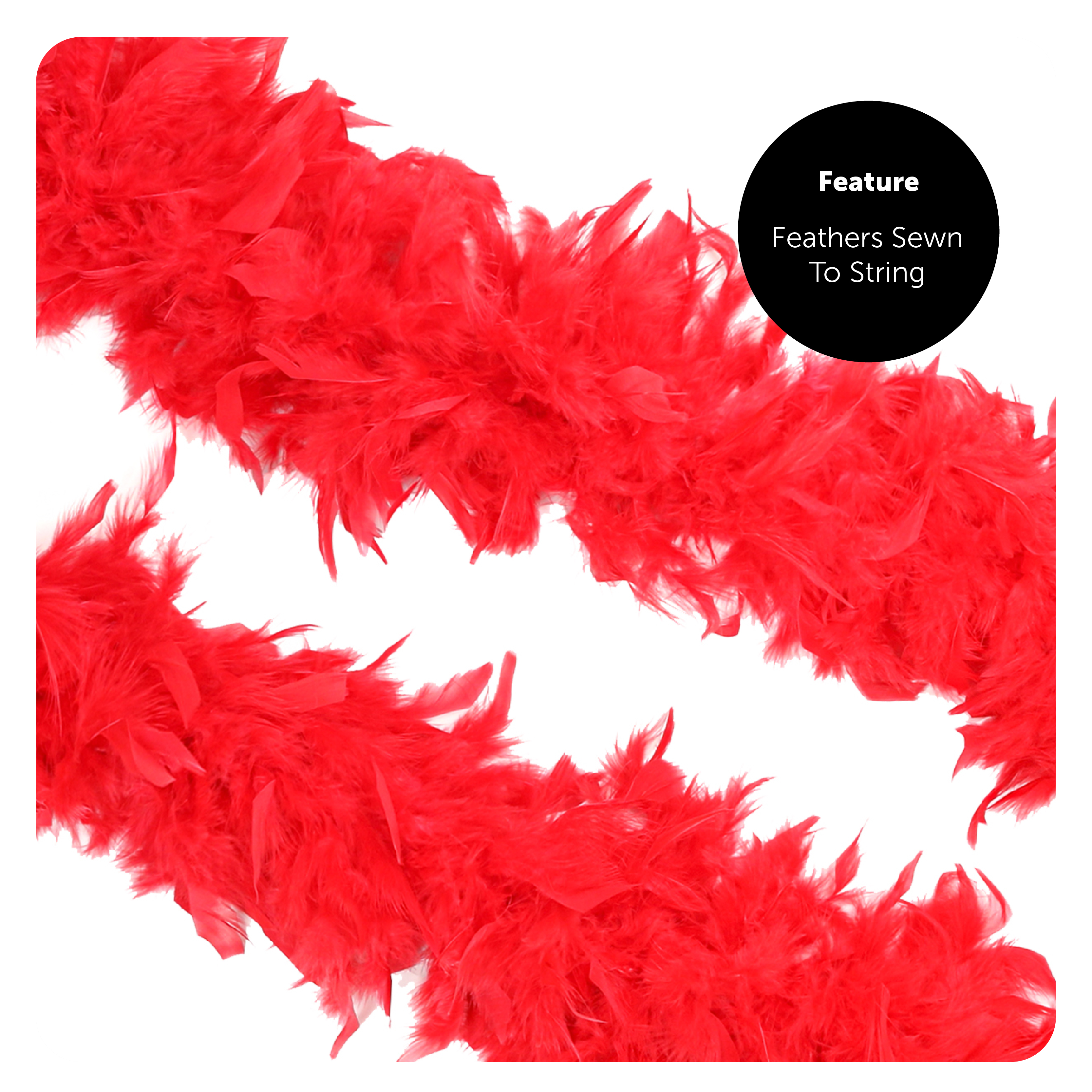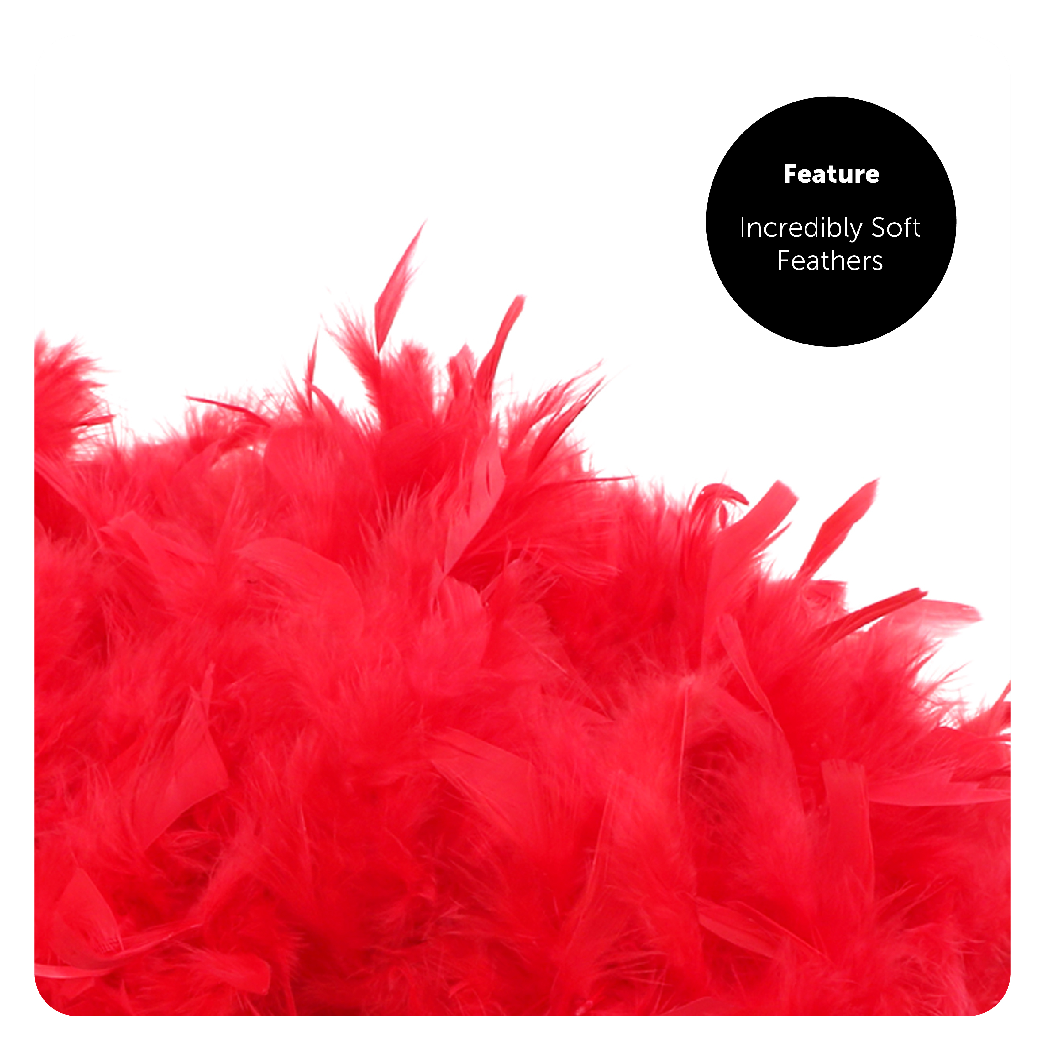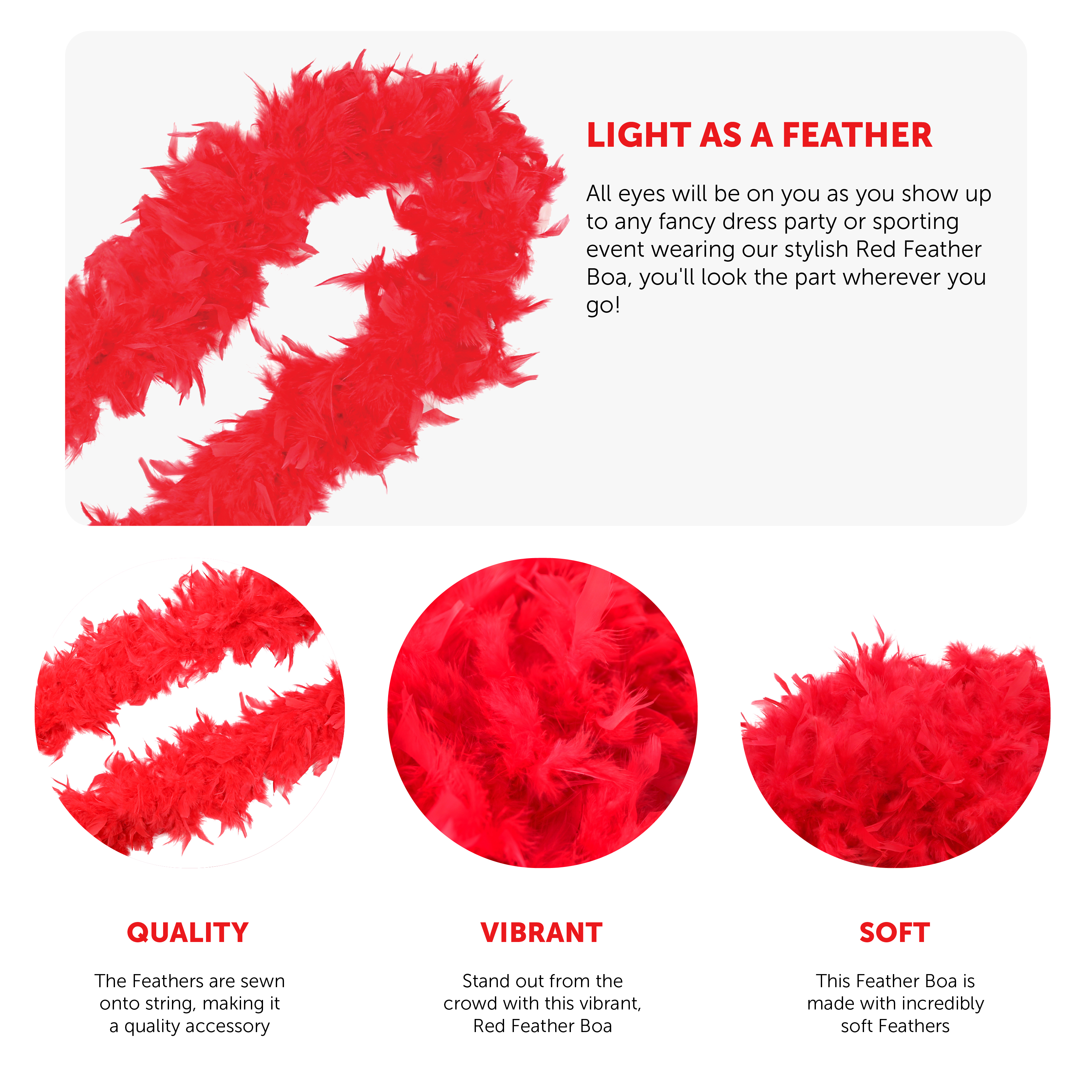 INCREDIBLY SOFT FEATHERS: Your Red Feather Boa is made with incredibly soft feathers sewn onto string - although the product is reusable, there may be some initial shedding, please shake the Feather Boa to rid of any loose feathers before wearing!