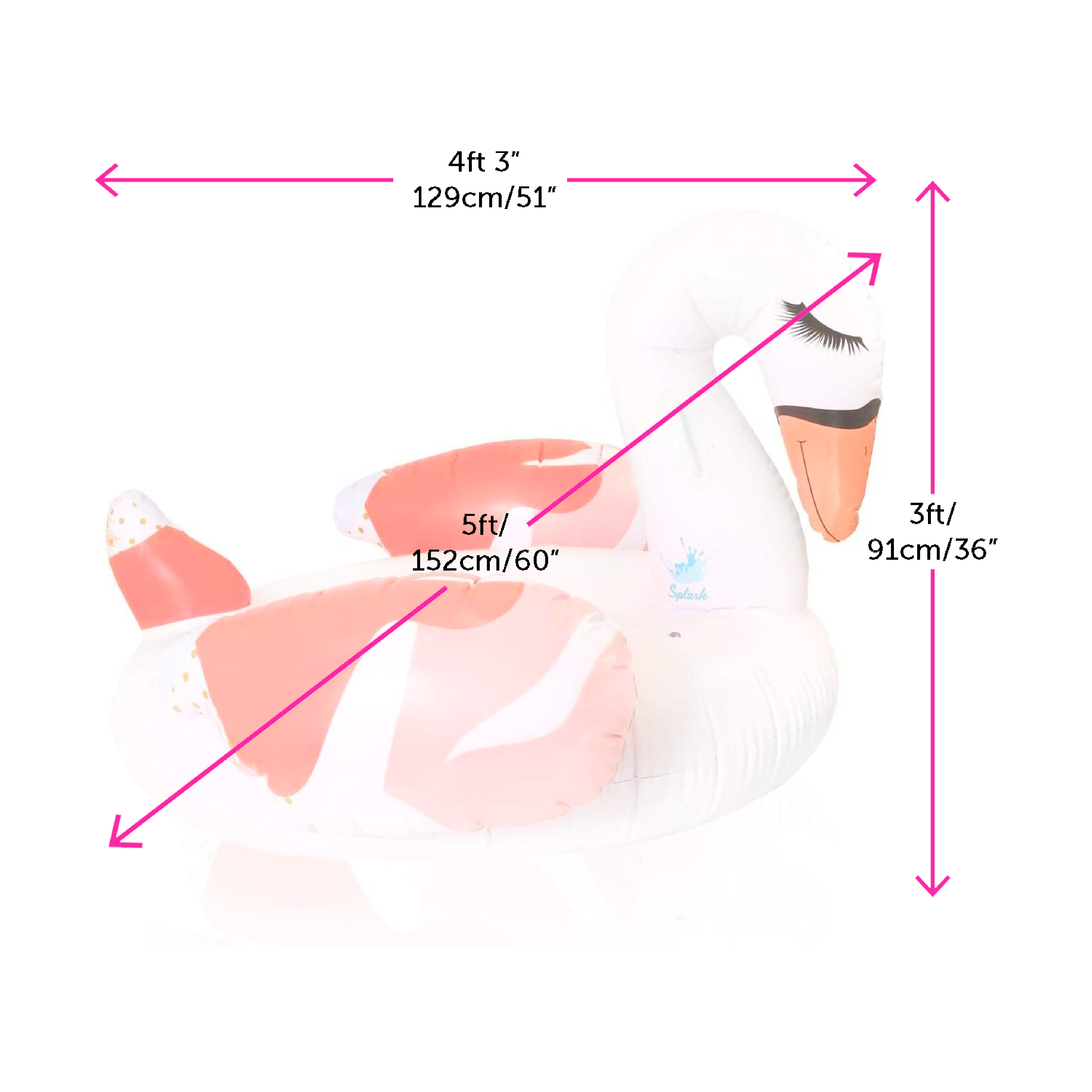 GIANT SWAN POOL FLOAT MEASUREMENTS: Your Swan Pool Floats measure 6ft x 5ft x 3ft/150 x 150 x 90cm, a massive pool float fit for anyone of any age or size to use and relax on with comfort and ease!