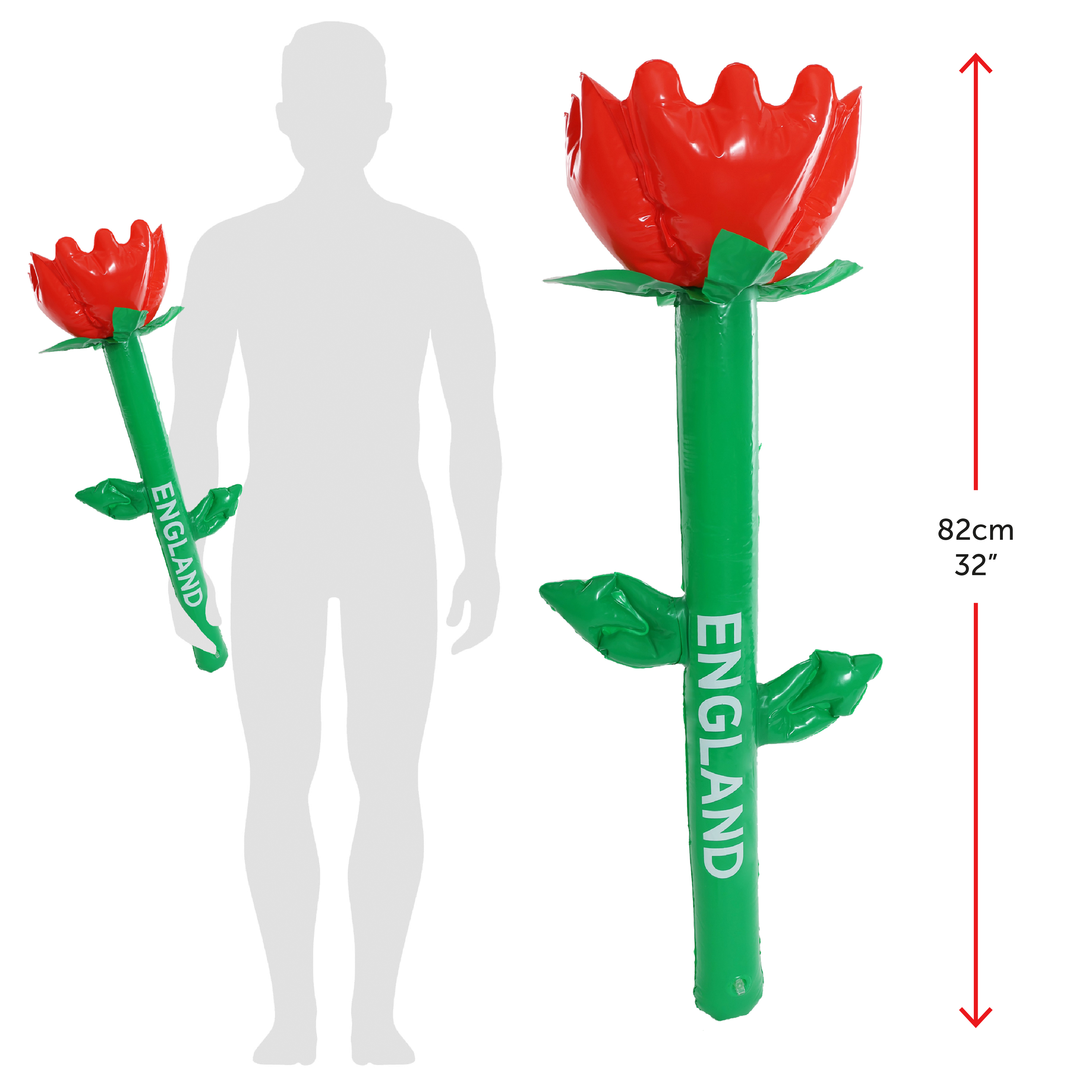 GREAT SIZE INFLATABLE: The English Rose Inflatable is a great size, measuring a full length of 82cm (32"), it is the perfect sized Inflatable prop to show support for your Country!