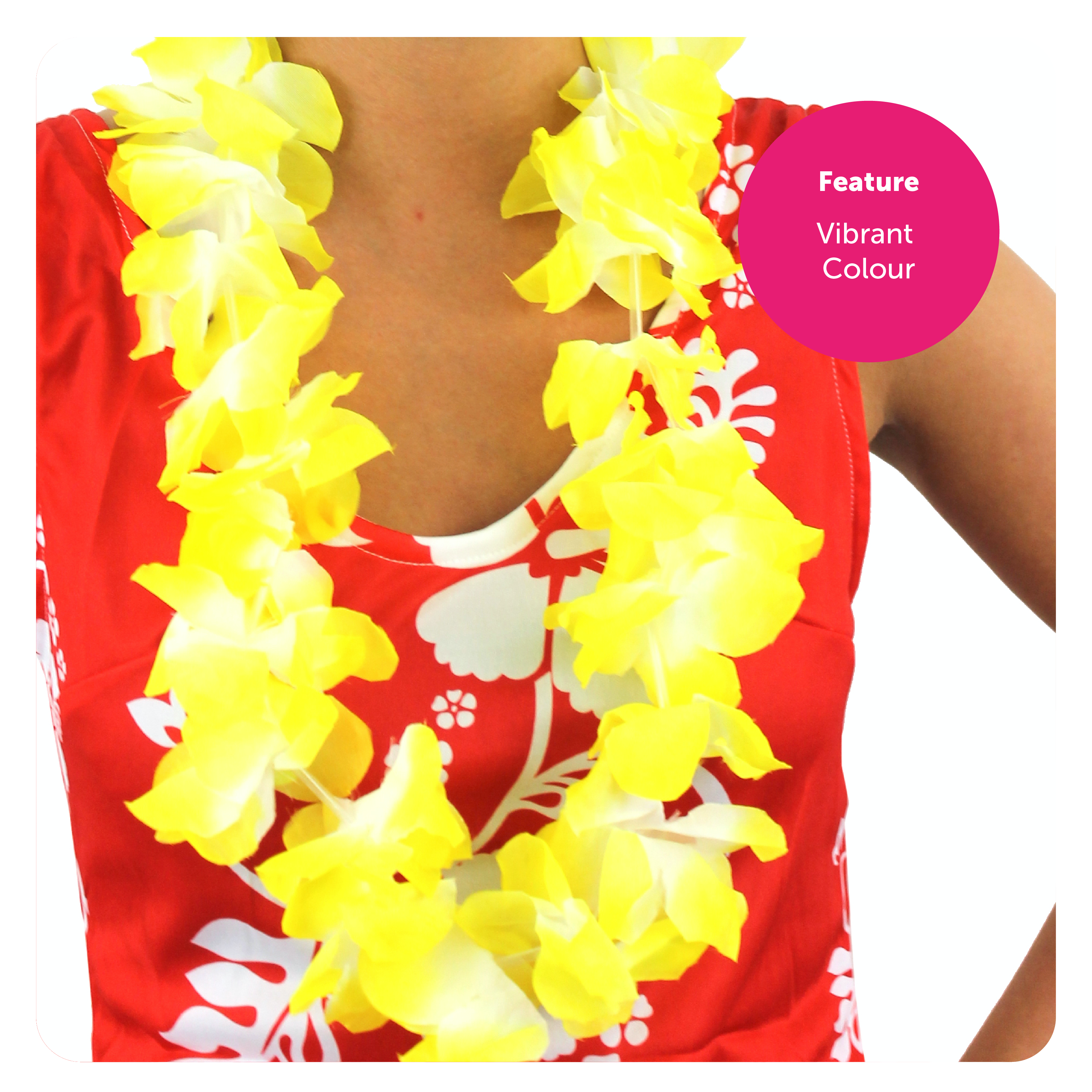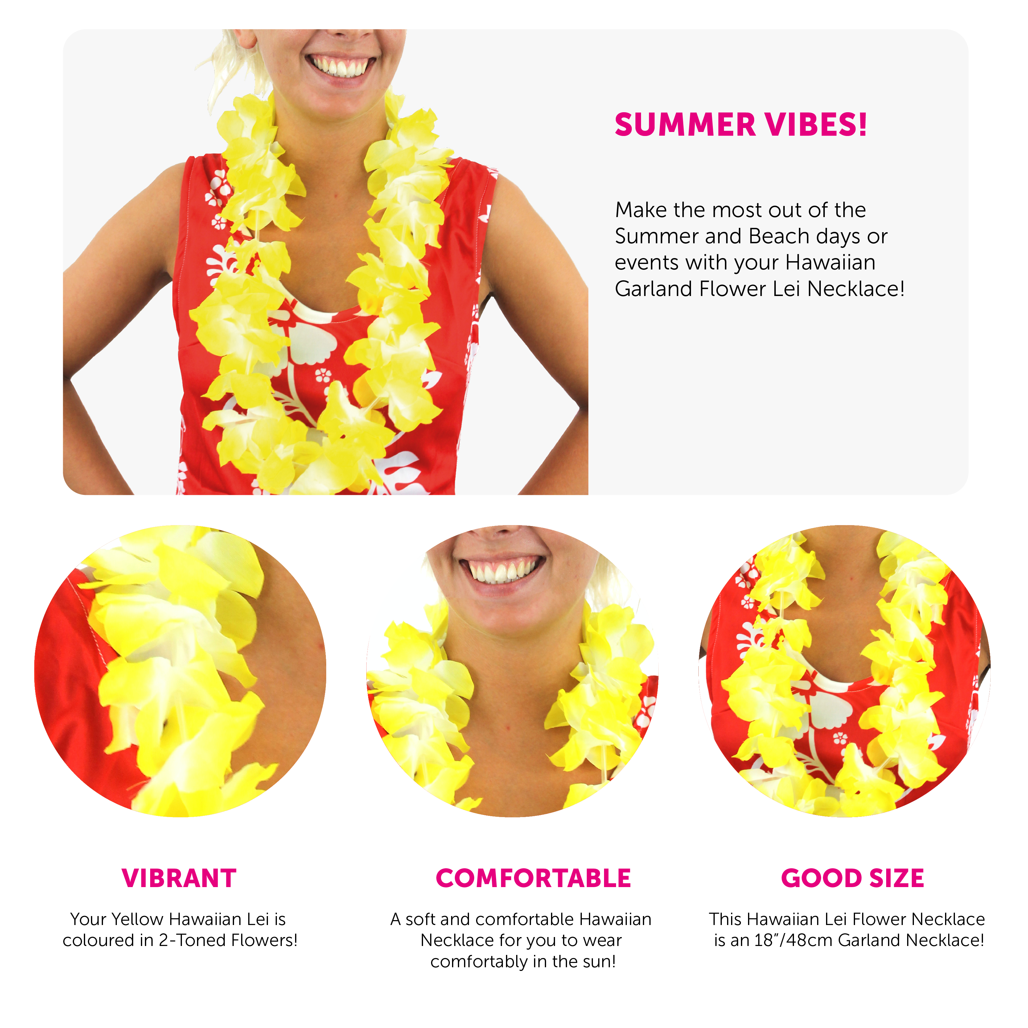 PERFECT FOR SUMMER AND HAWAIIAN FANCY DRESS: Whether you cook up a storm for a BBQ in the Summer, or attend a Hawaiian party, your Hawaiian Garland Lei Flower Necklace is sure to set the tone and raise everyone’s spirits high!