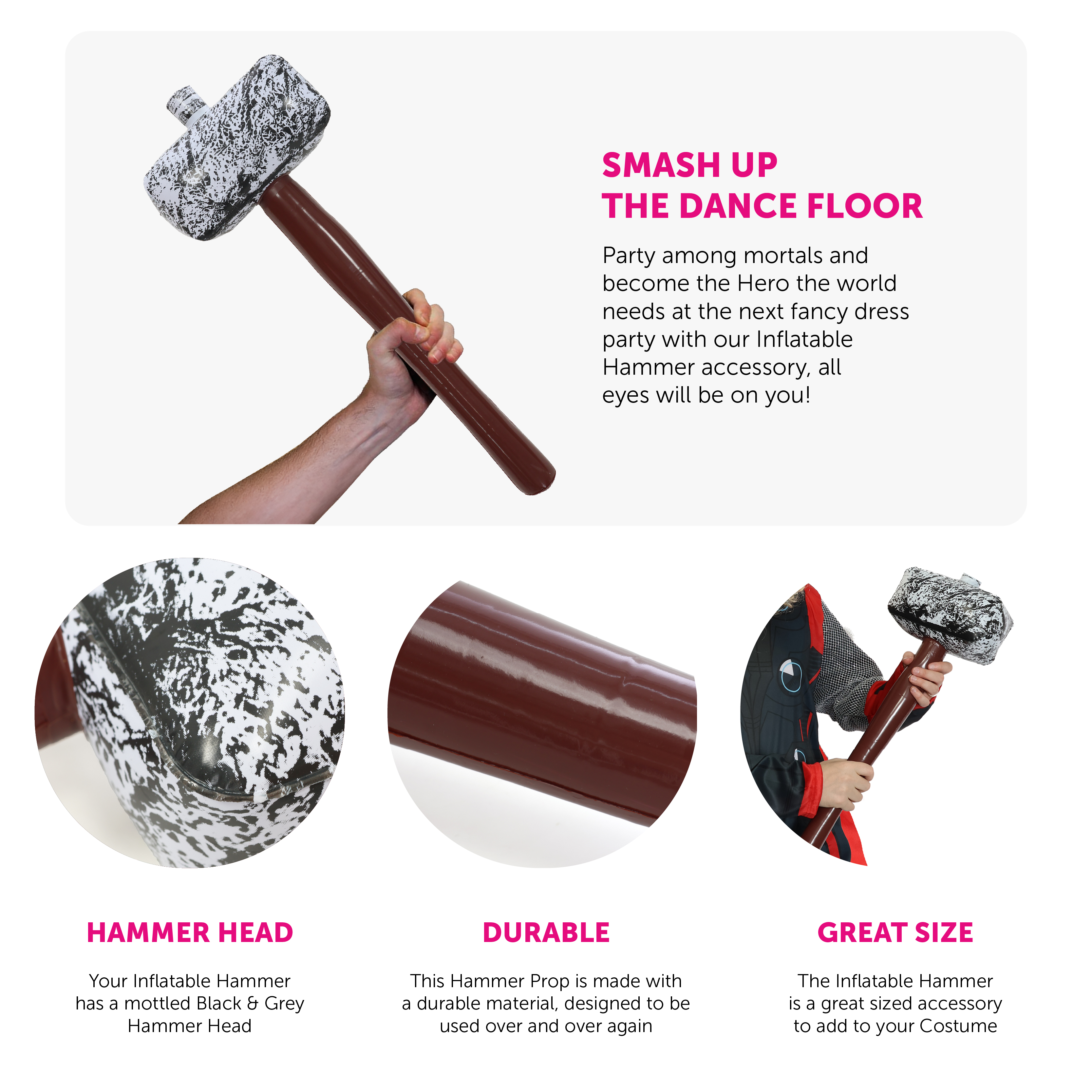 INFLATABLE HAMMER ACCESSORY: Party among mortals and become the Hero the world needs at the next fancy dress party with our Inflatable Hammer accessory!