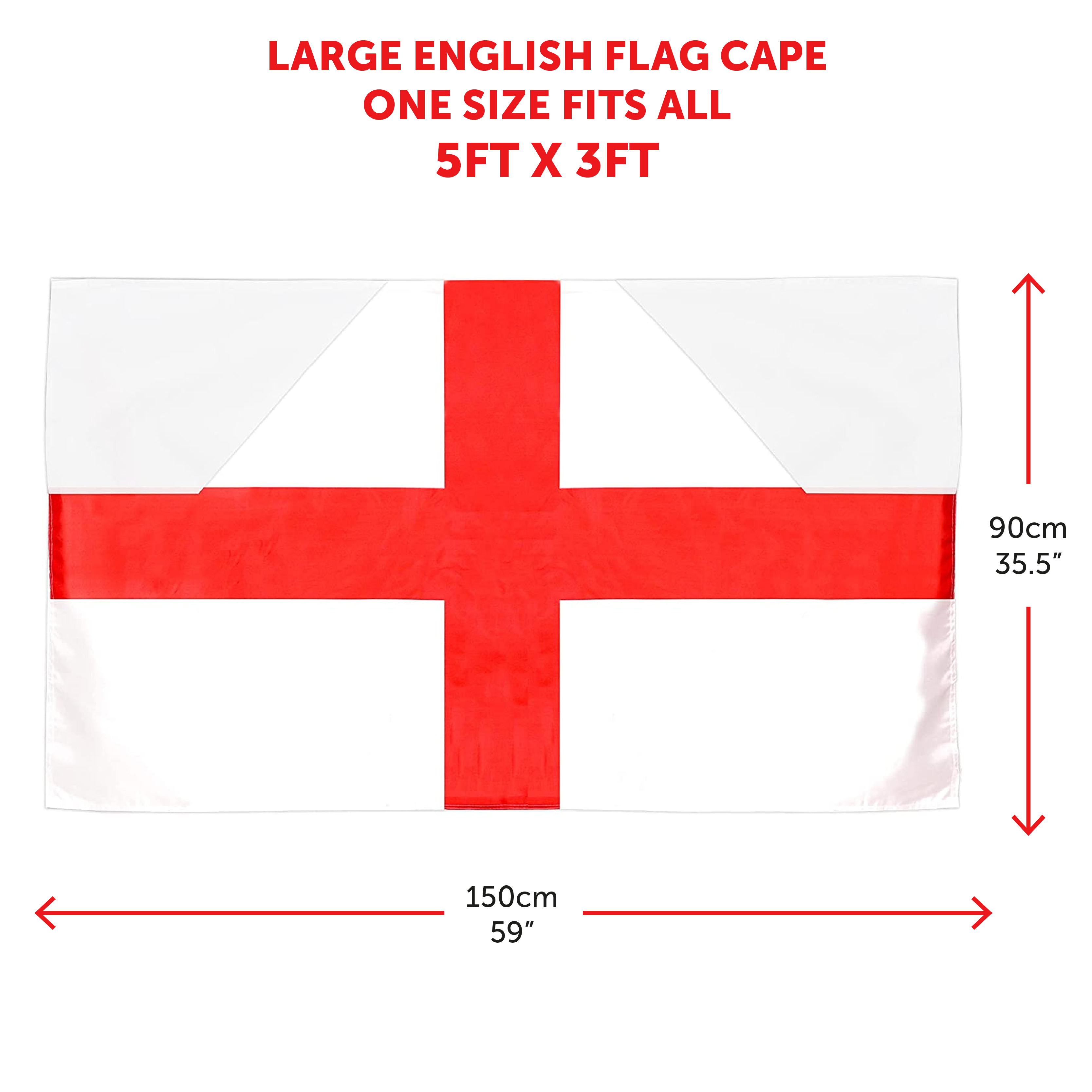 HIGH QUALITY FLAG CAPE: This English Flag Cape is perfect for any event, with its durability being perfect for most Weather, and being extremely easy to dry clean, this Large England Flag Cape is perfect to wear for in and outdoor celebrations!