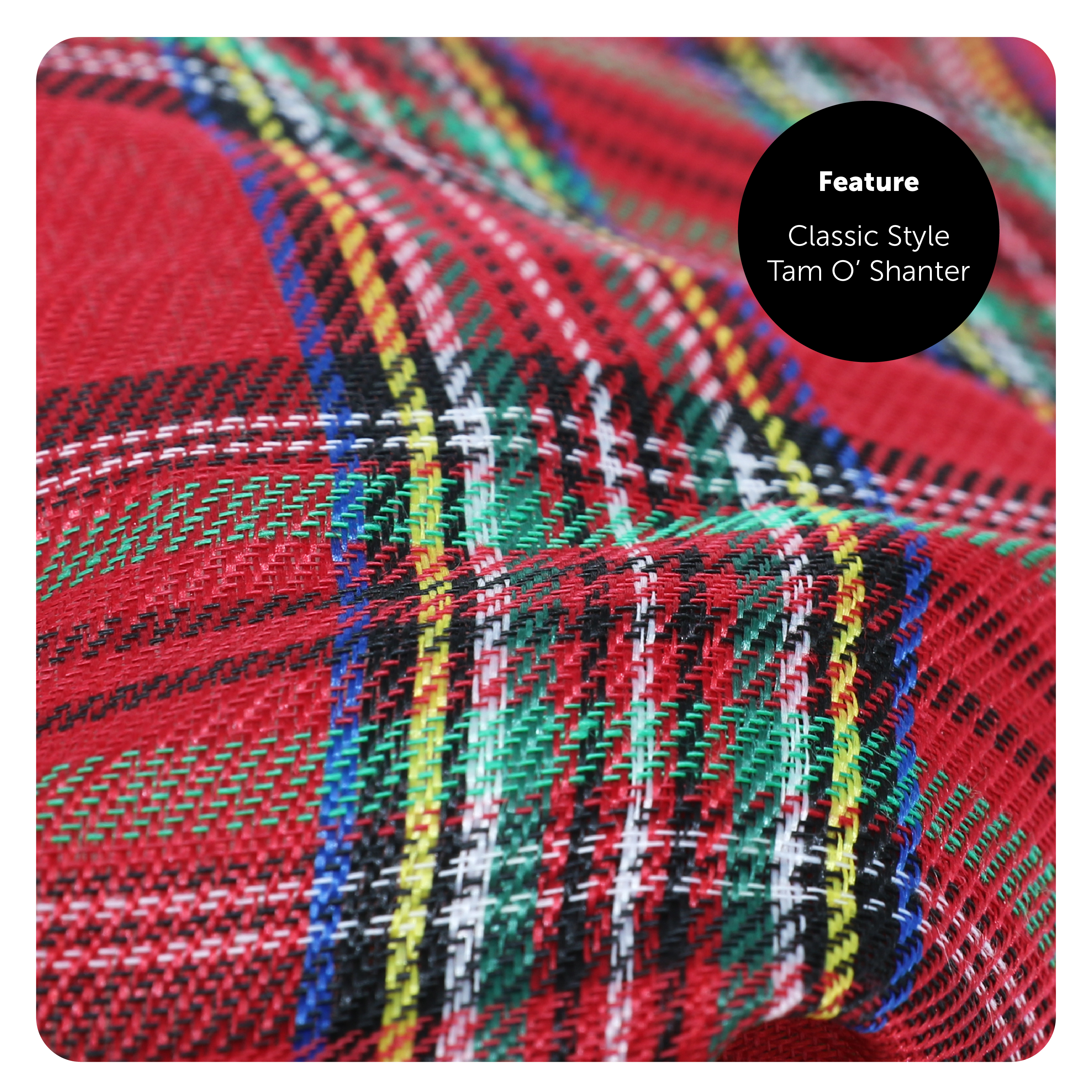 ONE SIZE FITS ALL: With its comfortable and very lenient stretch on the elasticated band within the Hat, this Tam O' Shanter will comfortably fit any head size for all ages with ease!