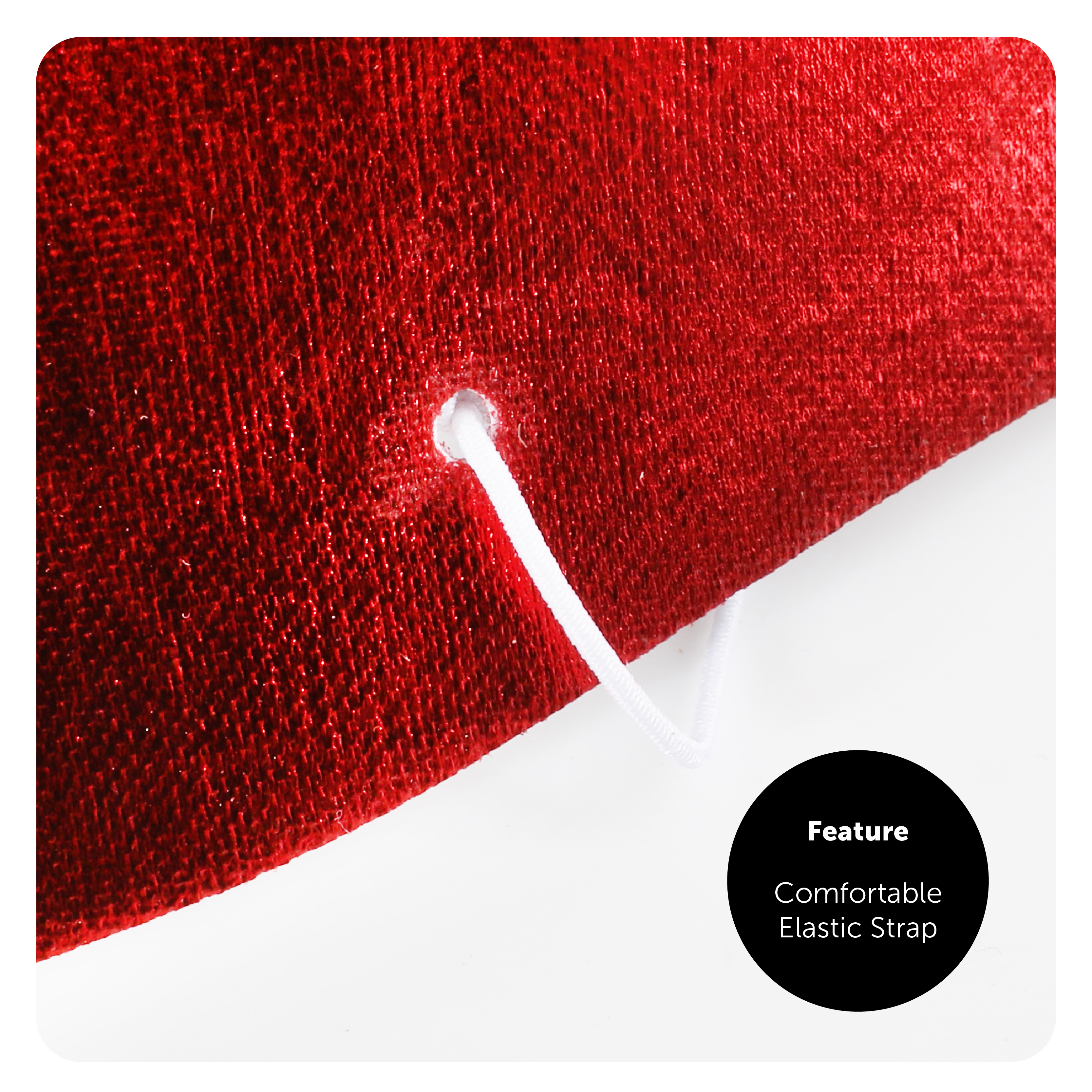 HALF FACE MASK DETAILS: The Mask is a shiny Red upper Half Face Mask attached to an elasticated strap for added comfort, a great finishing touch to your outfit!