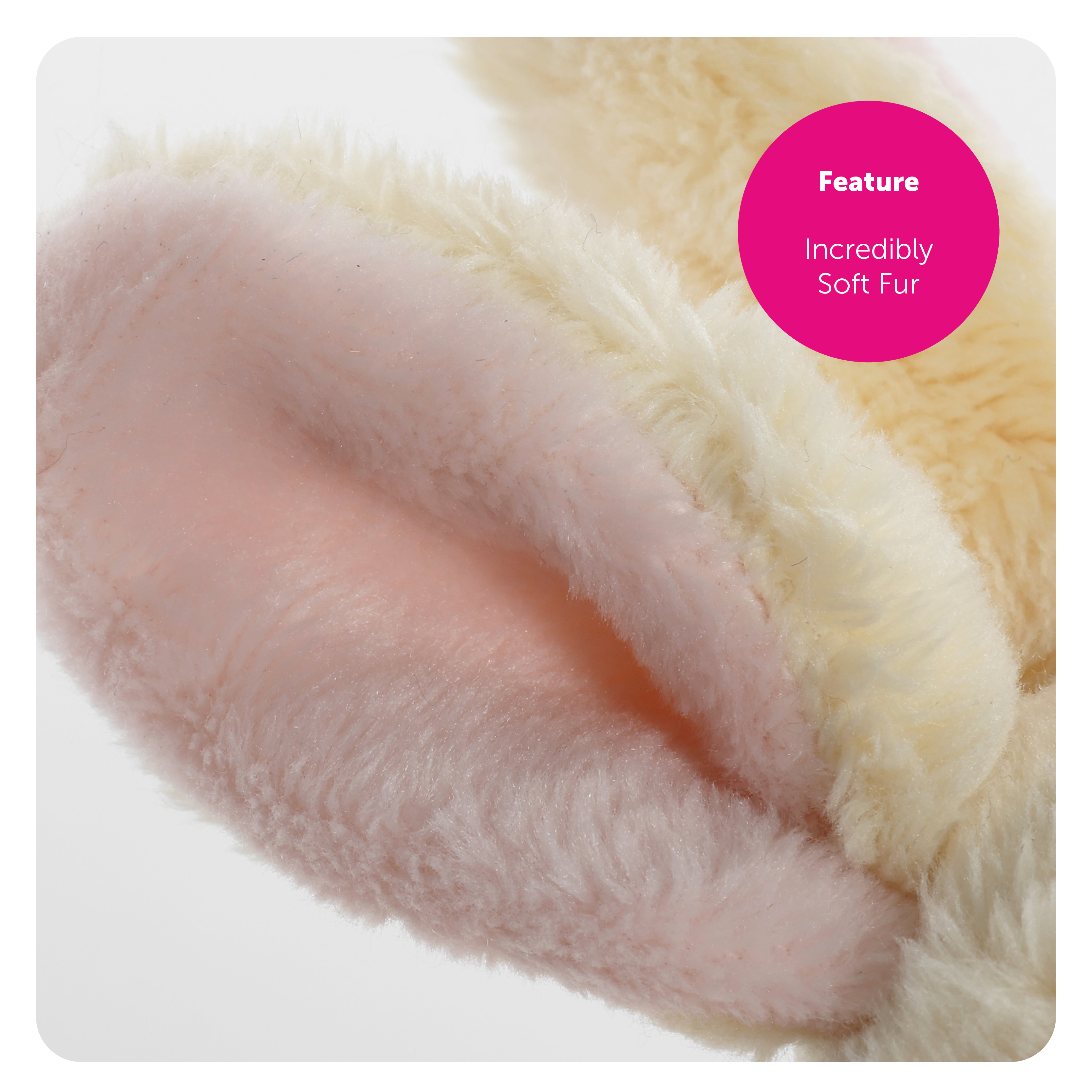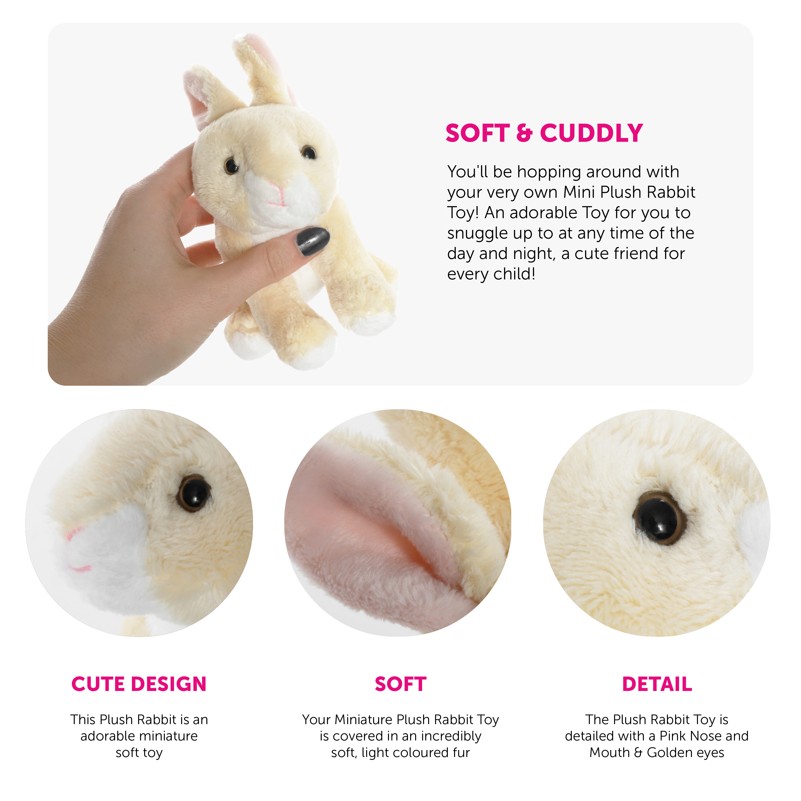 RABBIT DETAILS: An incredibly soft, miniature Rabbit Toy with light coloured fur, and pink ears! The Plush Rabbit has detailed eyes attached, the most adorable Plush Toy to gift to someone at any time of the year!