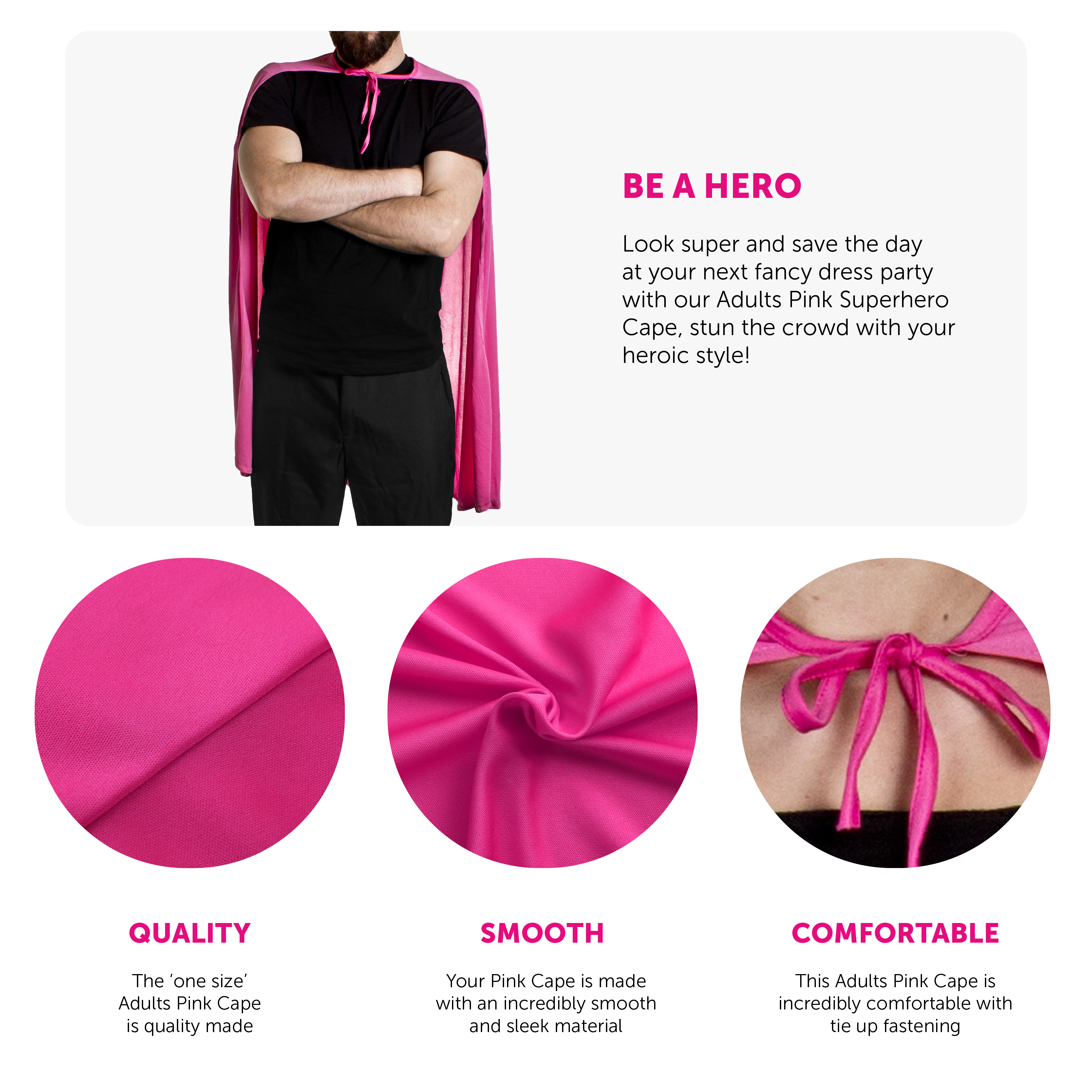 PERFECT FOR ANY FANCY DRESS: Whether you're a Superhero, a Super Villain or attending any kind of fancy dress event, you can't go wrong with this Adults Pink Cape!