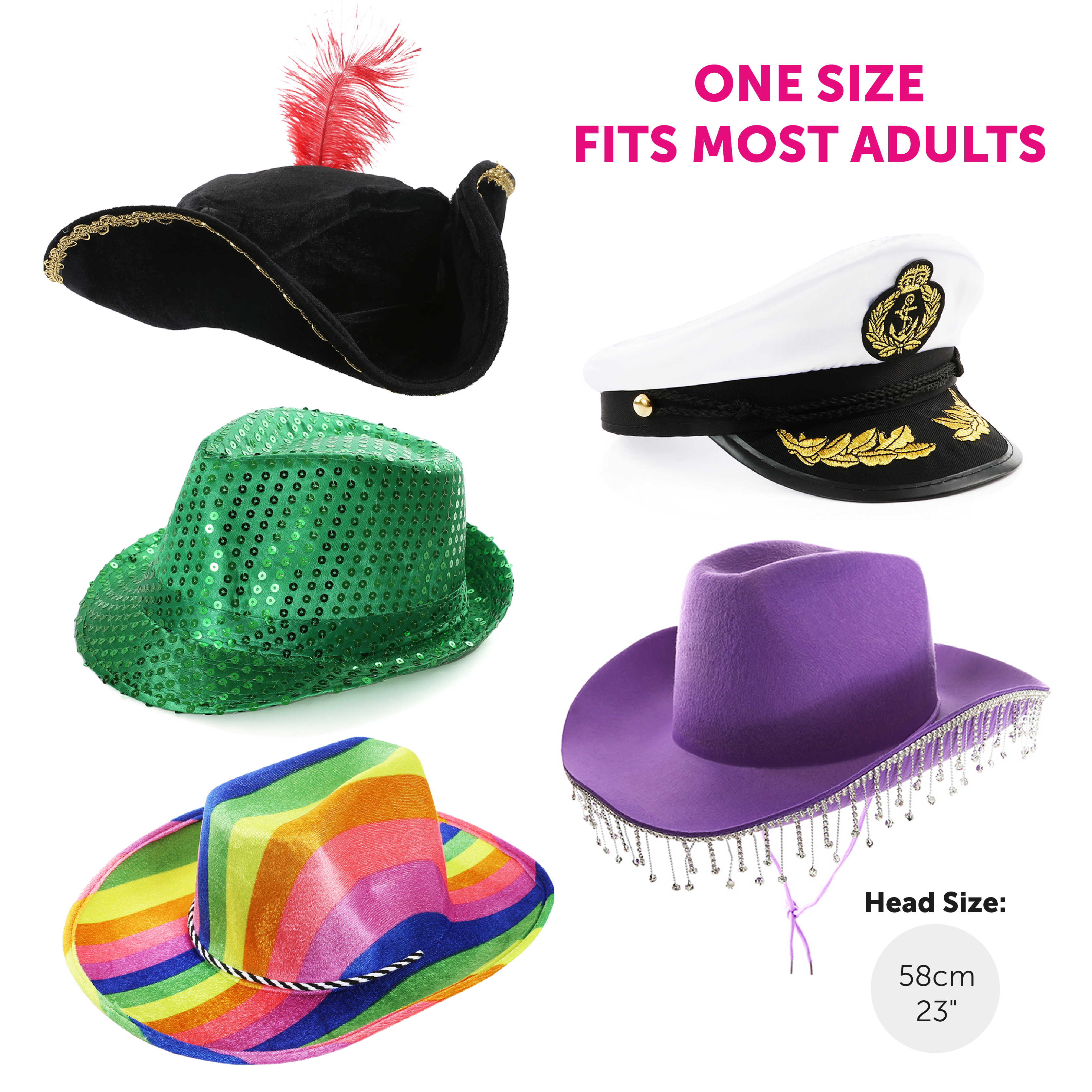 ONE SIZE FITS MOST: All of the Hats included in this Party Pack have a suitable head size measuring up to 58cm (23"), a comfortable fit for most Adults to wear at any event!