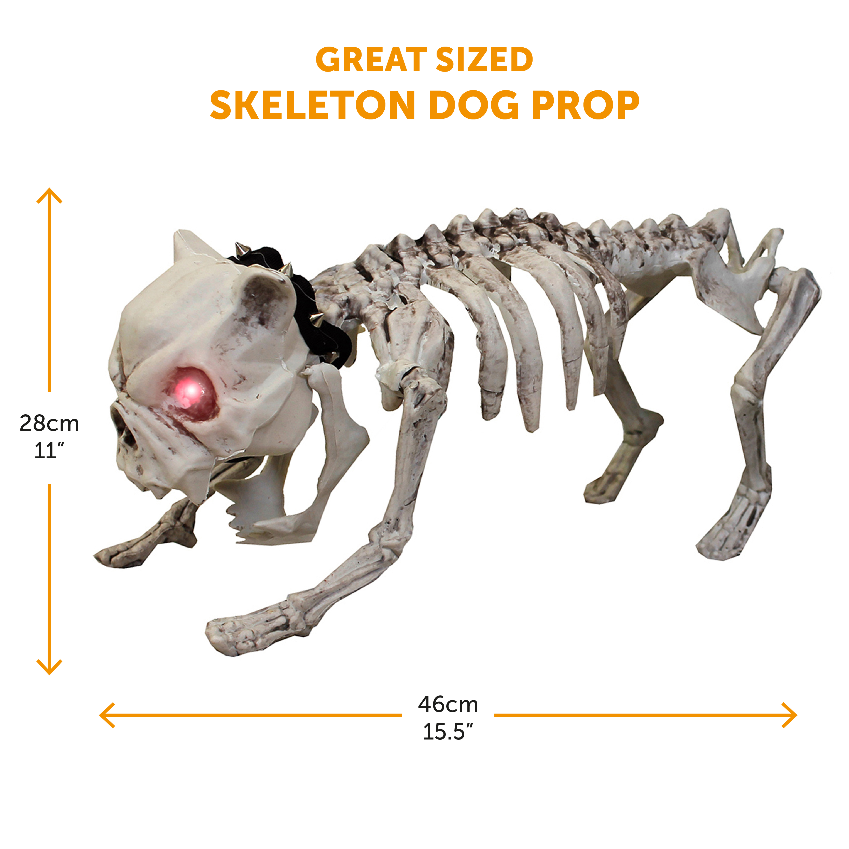 PROP MEASUREMENTS: The Skeleton Dog Prop is a great size, measuring a full height of 28cm (11") and a length of 46cm (18"), it'll be sure to stand out among the rest of your decorations!
