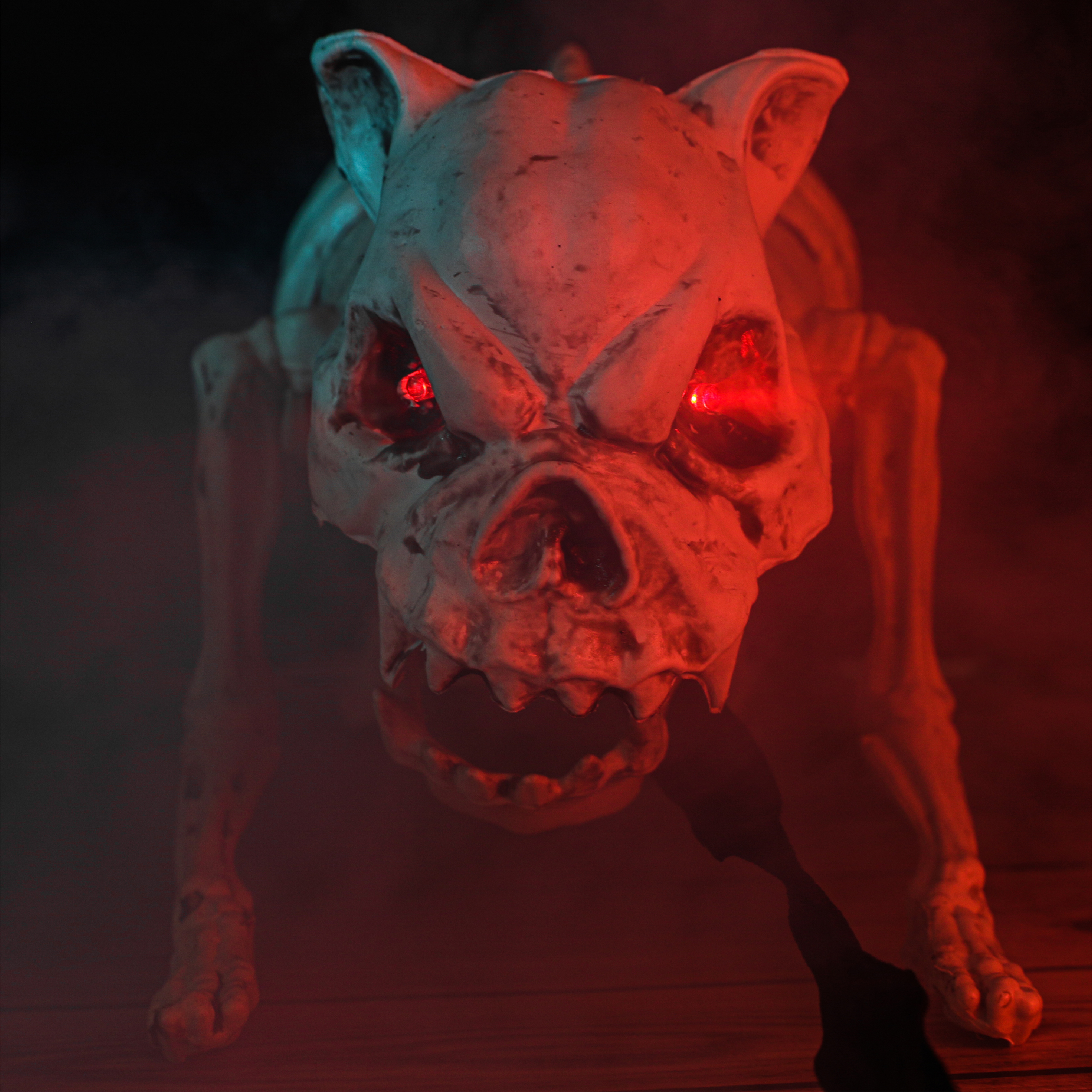 SKELETON DOG PROP DECORATION: You'll be sure to put the fright into approaching trick or treaters and partygoers every Halloween with this scary sound and motion activated Skeleton Dog Prop Decoration!