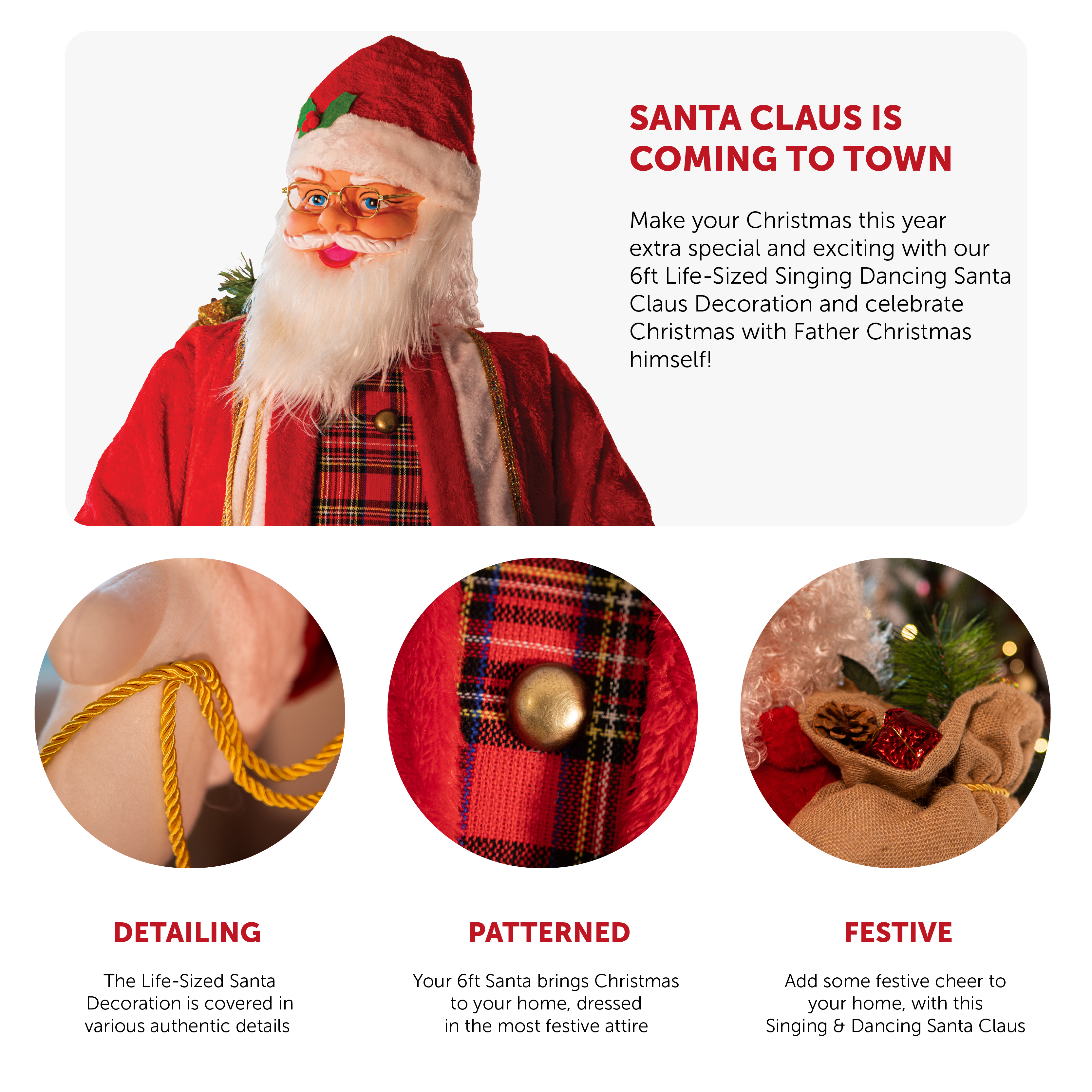 6FT LIFE-SIZED SINGING DANCING SANTA CLAUS DECORATION: Make your Christmas this year extra special and exciting with our 6ft Life-Sized Singing Dancing Santa Claus Decoration and celebrate Christmas with Father Christmas himself!
