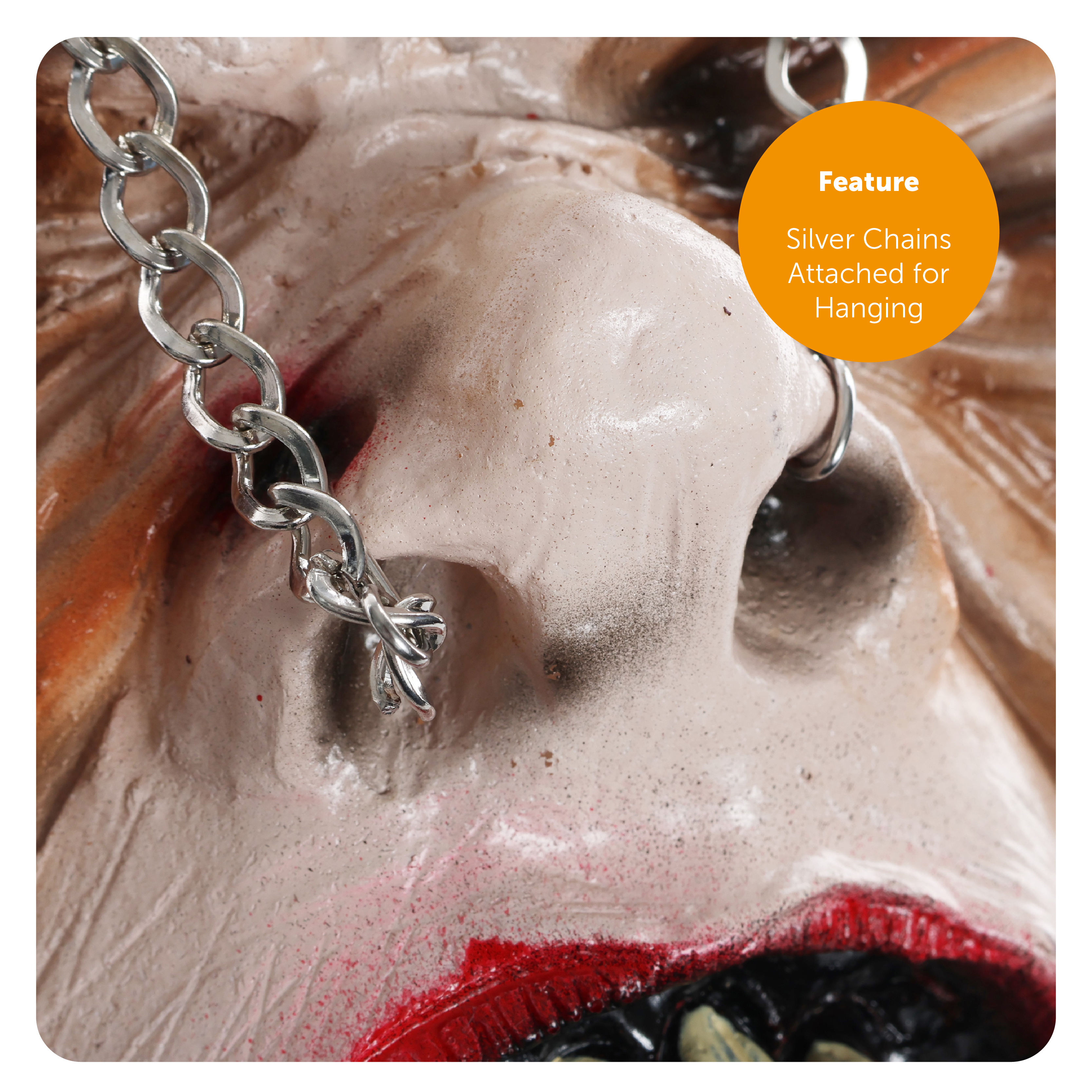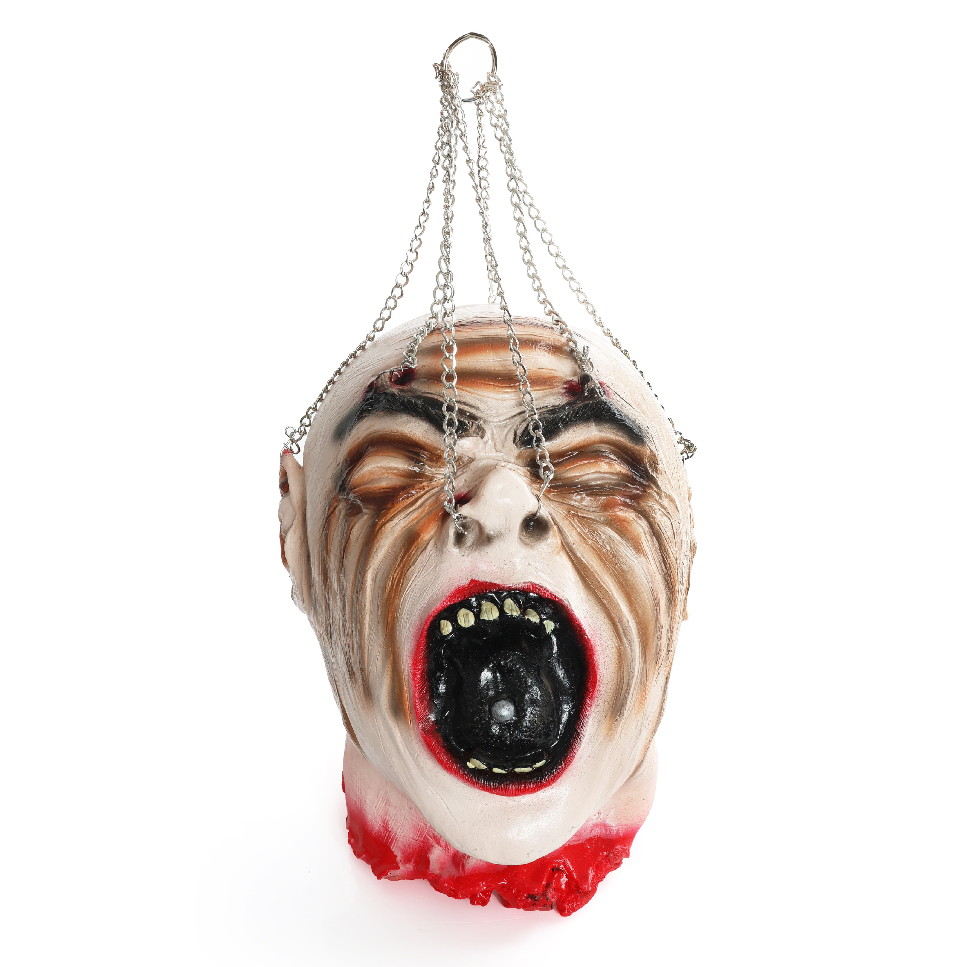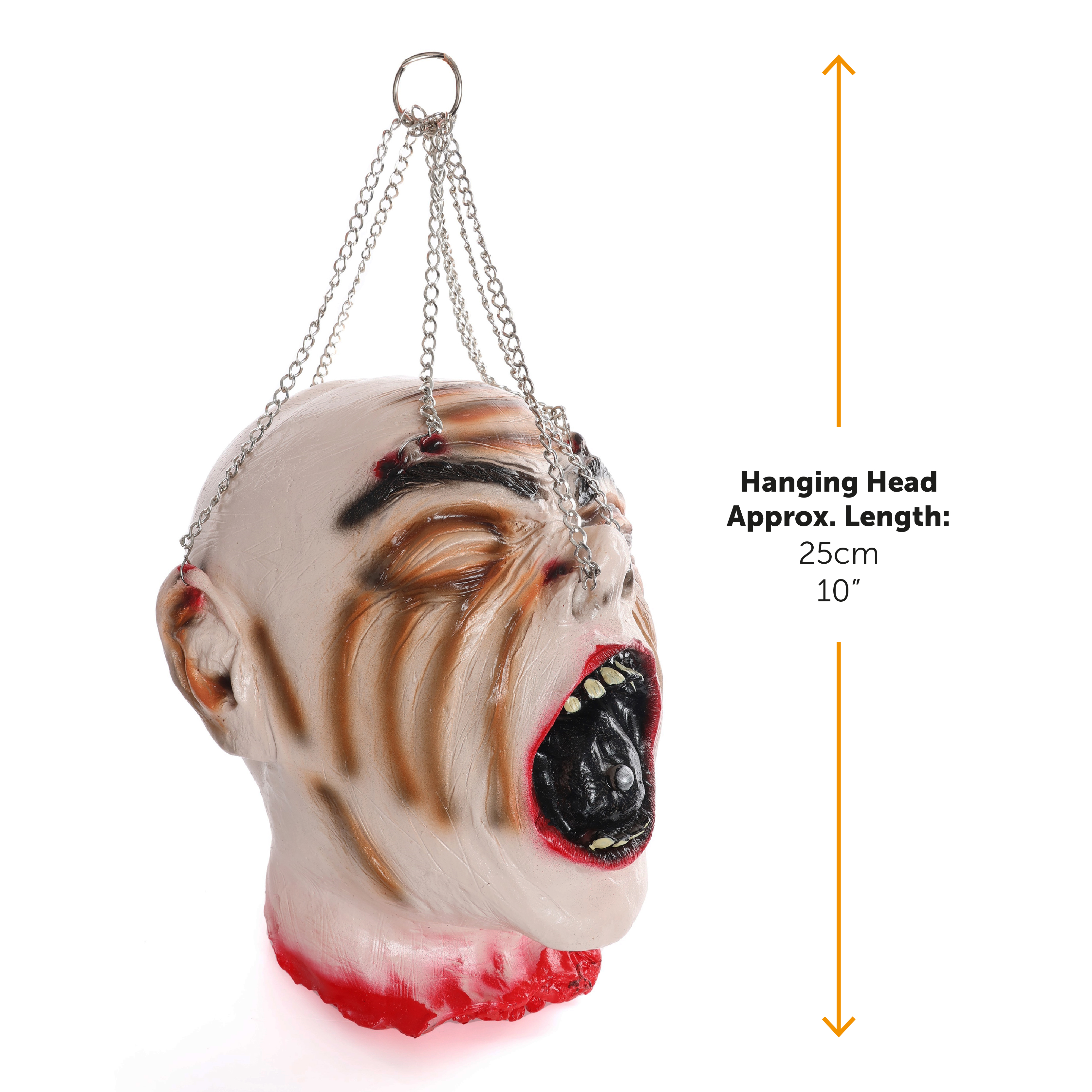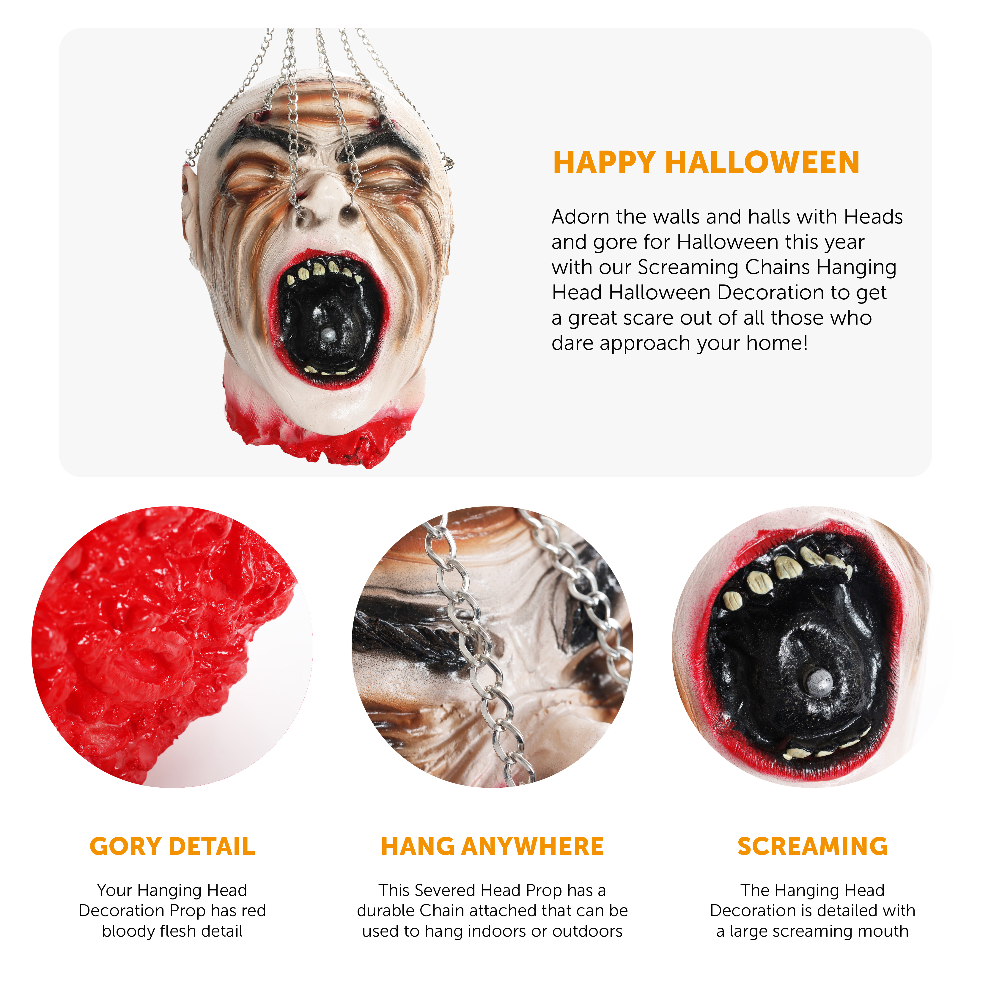 SCREAMING CHAINS HANGING HEAD HALLOWEEN DECORATION: Adorn the walls and halls with Heads and gore for Halloween this year with our Screaming Chains Hanging Head Halloween Decoration to get a great scare out of all those who dare approach your home!