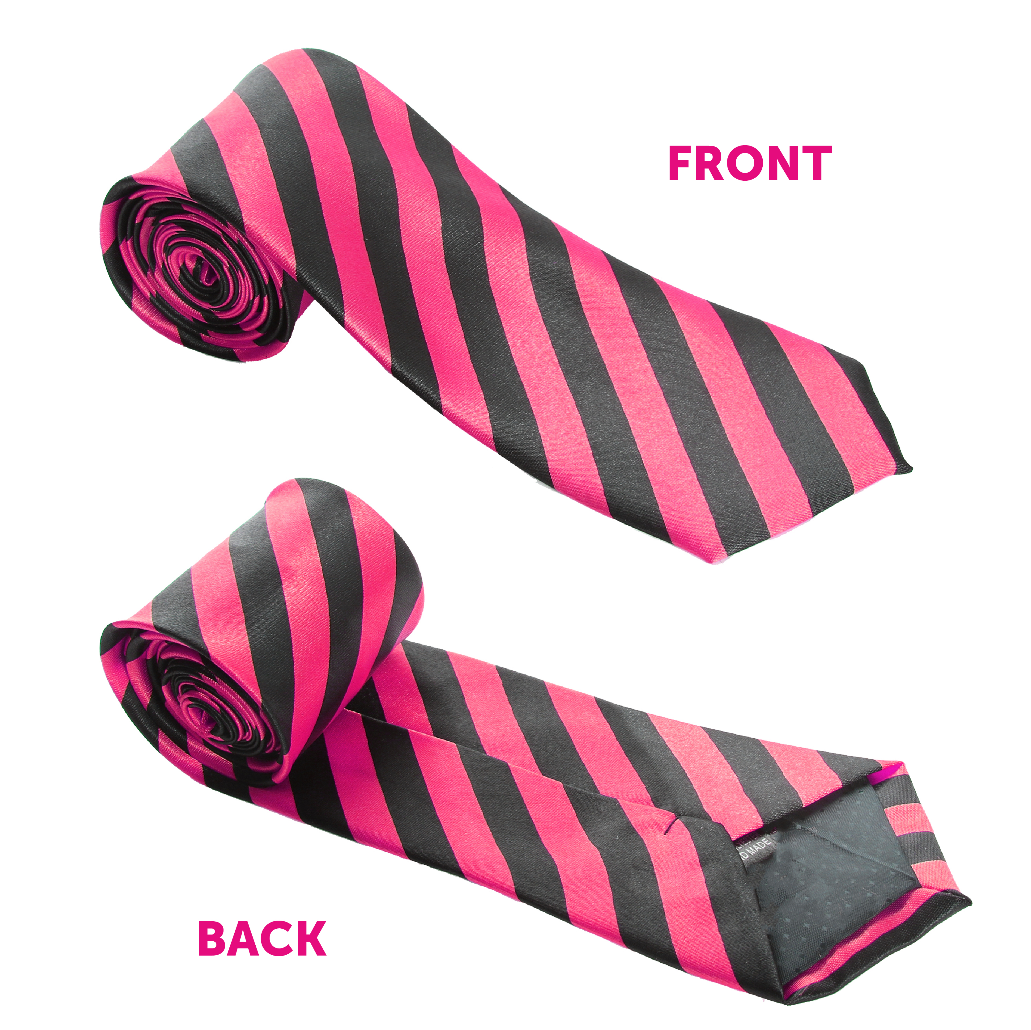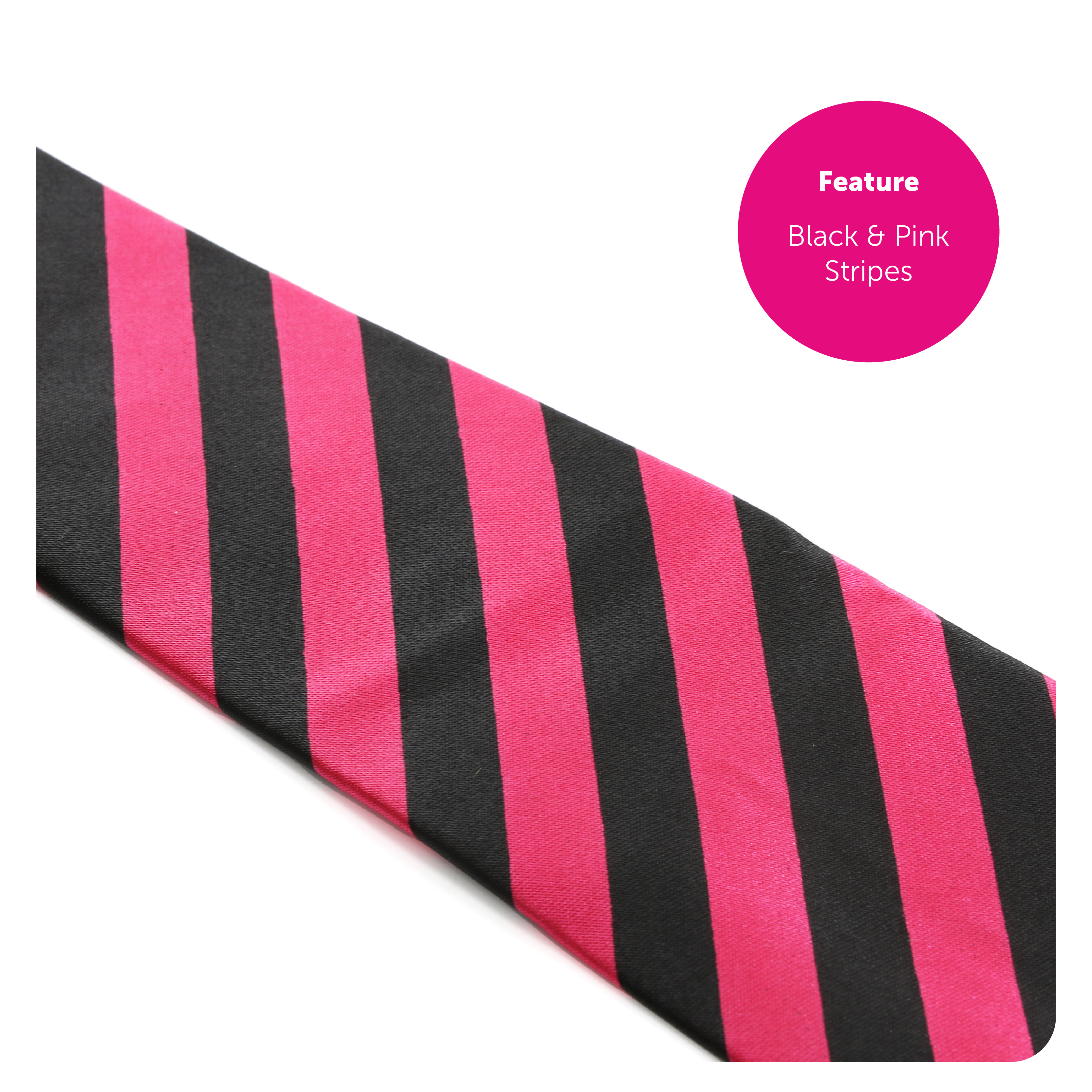 NECKTIE DETAILS: This Necktie is a satin-feel Tie covered in alternating Black and Pink Stripes all over, it can be the perfect addition to School or Wizard fancy dress events!