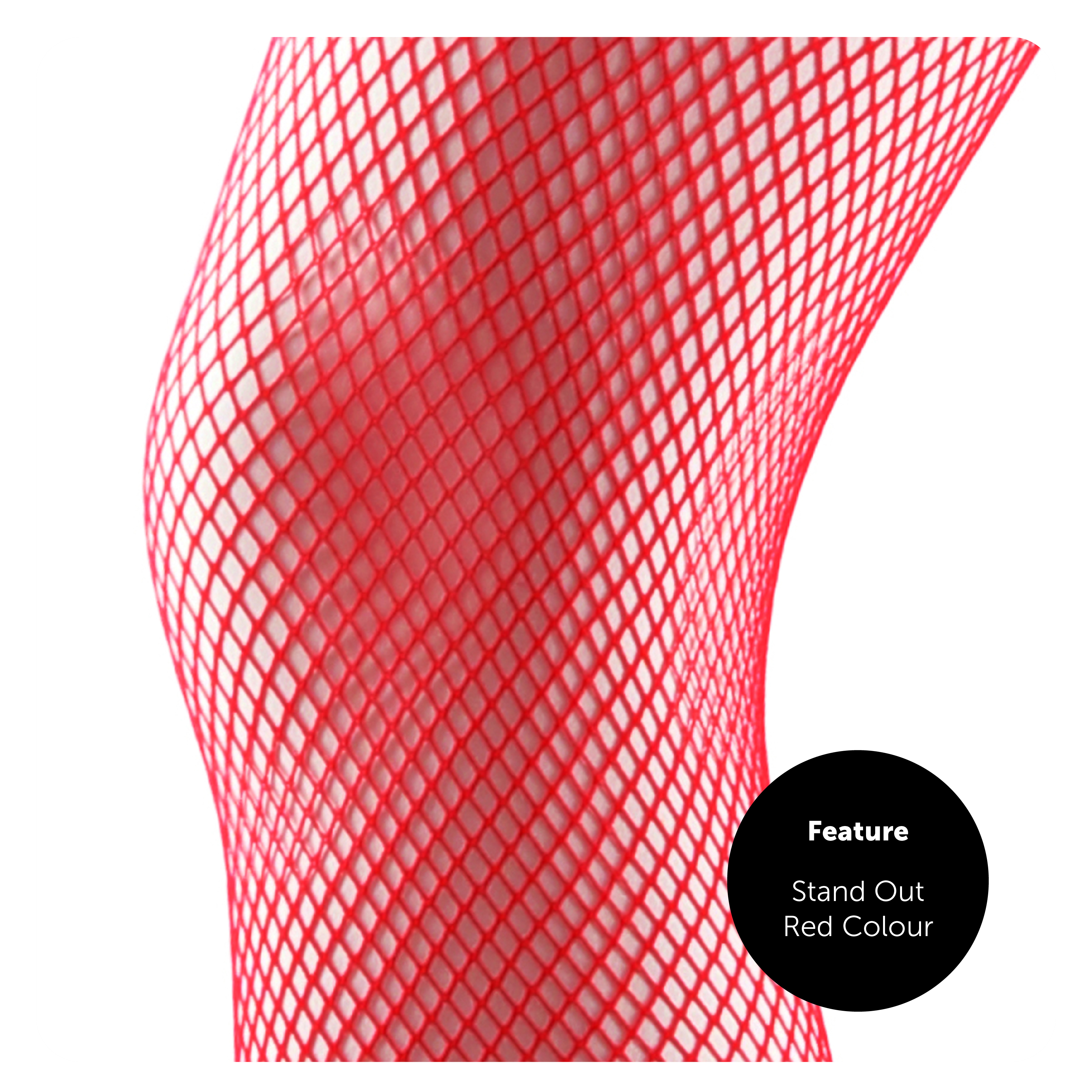 TIGHTS DETAILS: Your Ladies Tights have a vibrant Red Fishnet design and are super stretchy, the perfect look for any 80's themed parties, Festivals, or Performances!