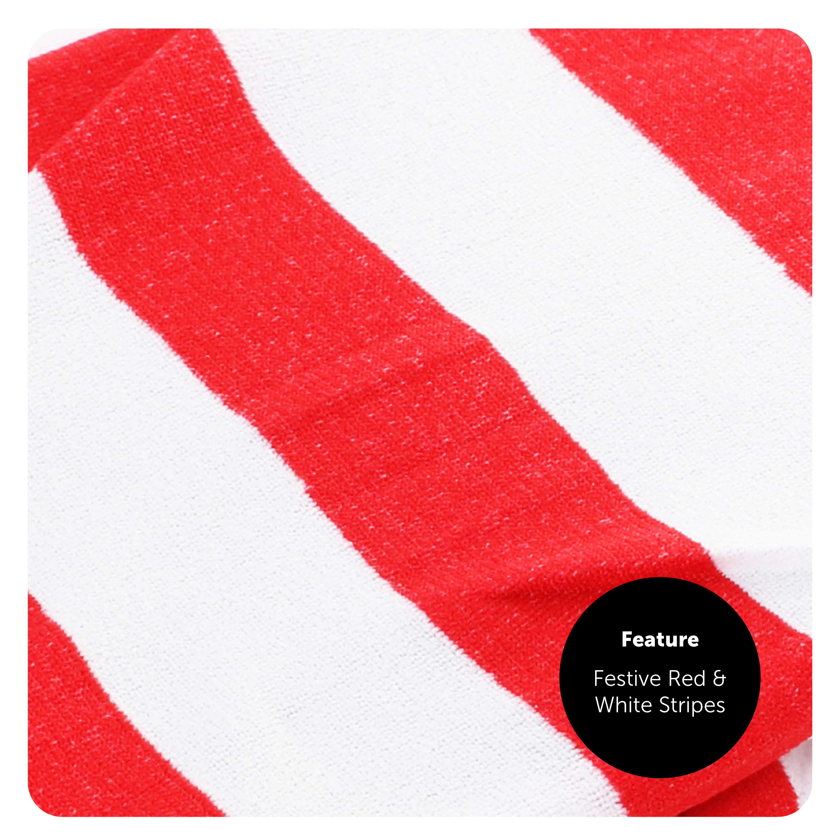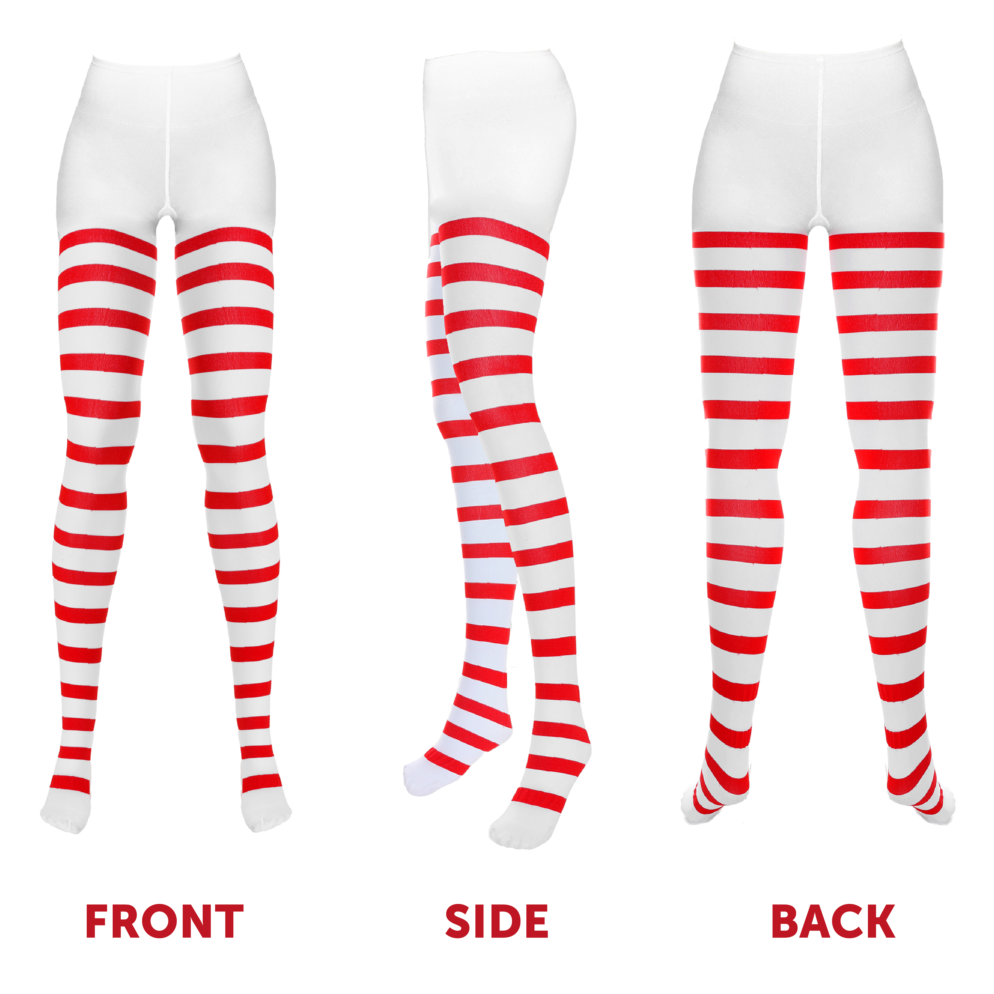 COMPLETE YOUR SANTA COSTUME: If you already have a Santa Costume prepped and ready to go, then complete your Adults Santa Costume with our Striped White and Red Santa Tights!