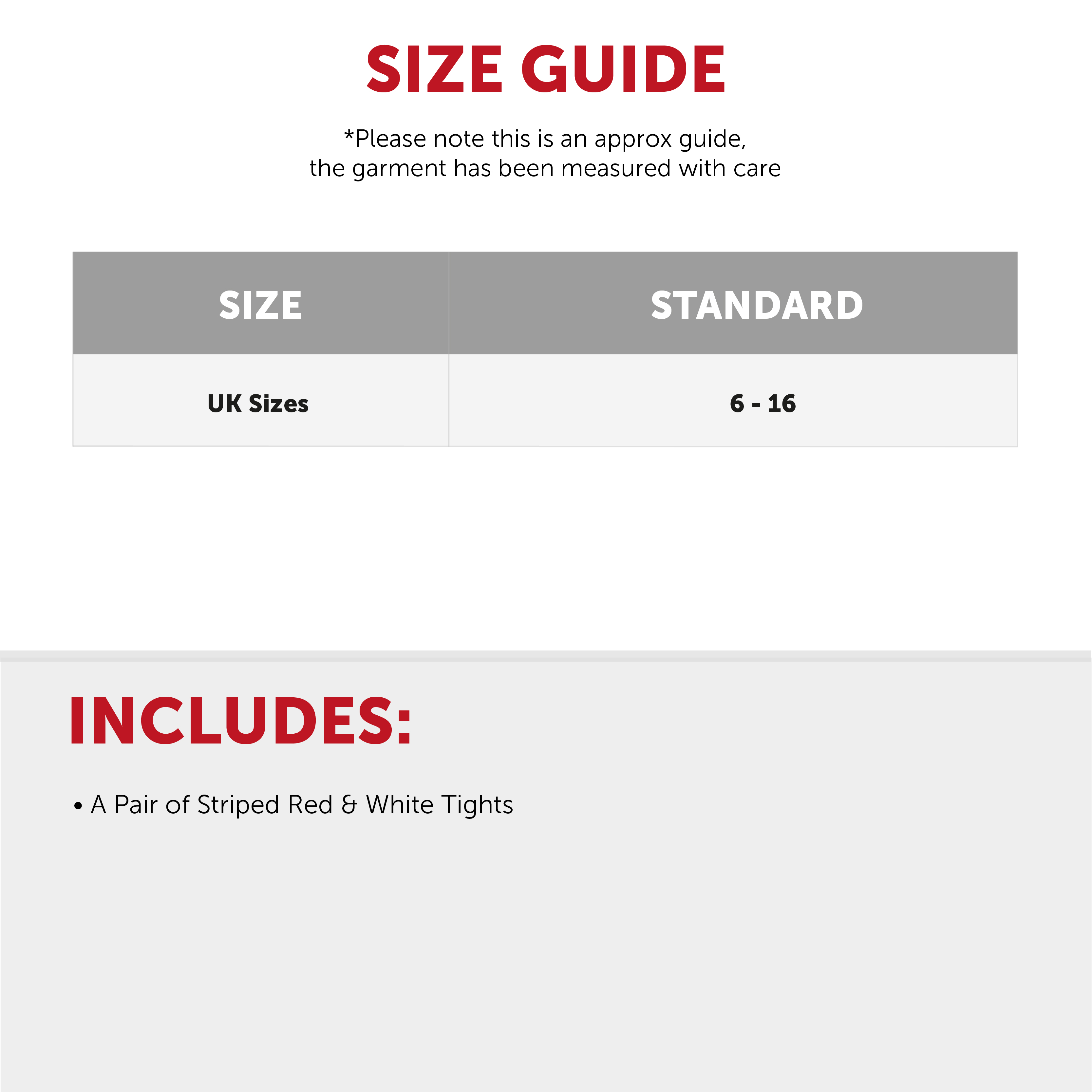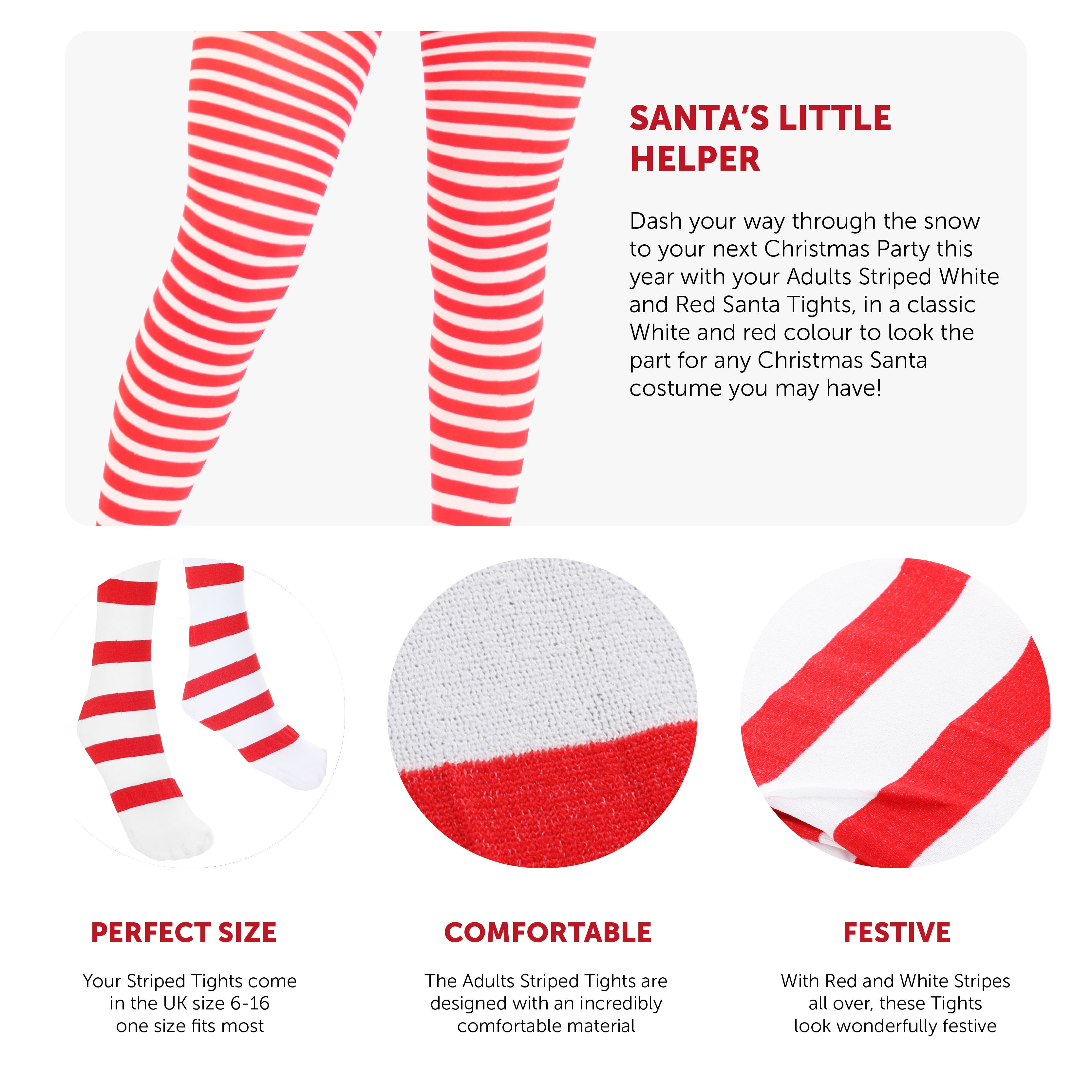 ADULTS STRIPED SANTA TIGHTS DETAILS: Your Adults Santa Tights are a red and White pair of striped tights and are perfectly themed for the Christmas season, being the perfect addition to completing your Santa look!