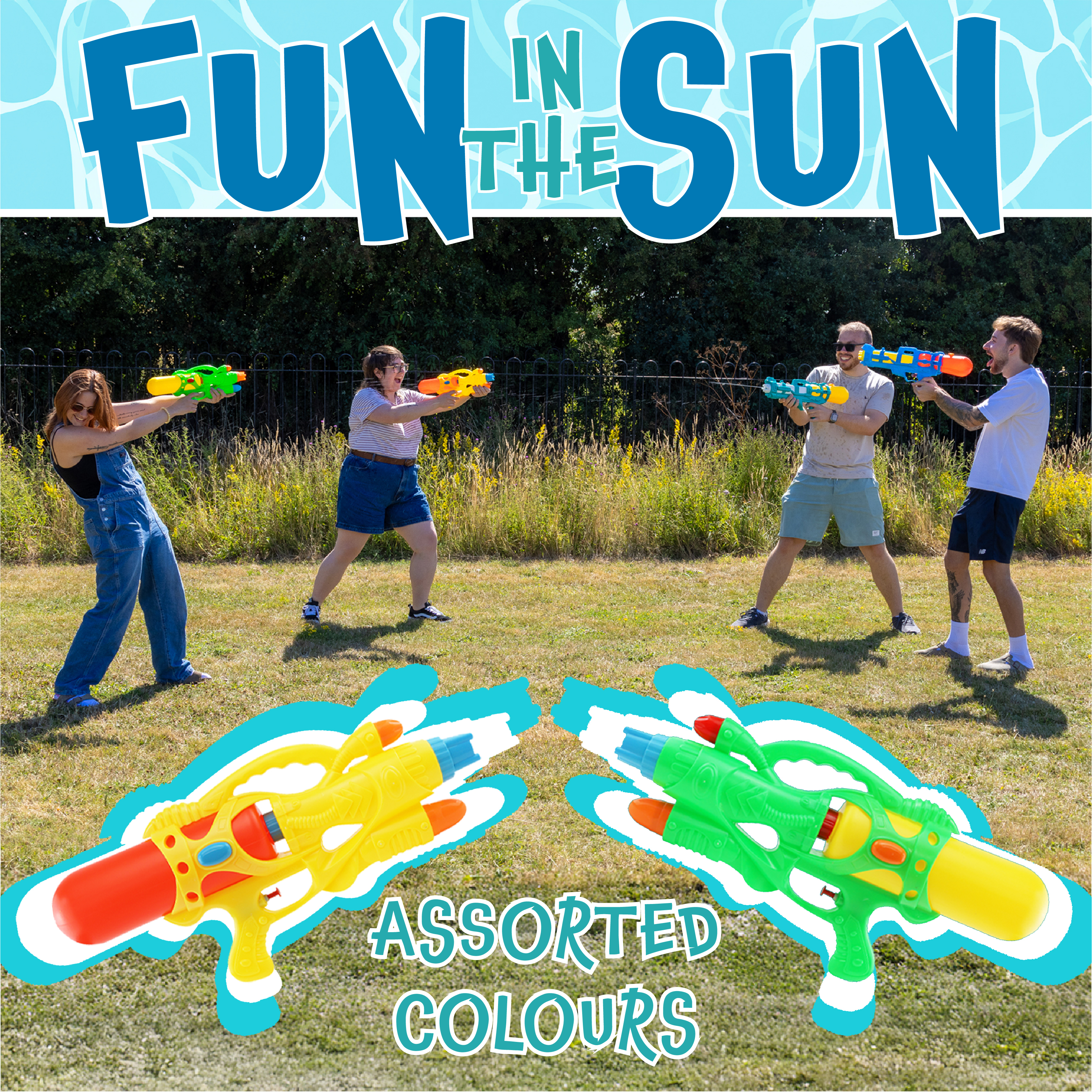 ASSORTED COLOURS – RANDOM SELECTION: Each water gun features vibrant colours and is supplied at random in one of the following combinations: