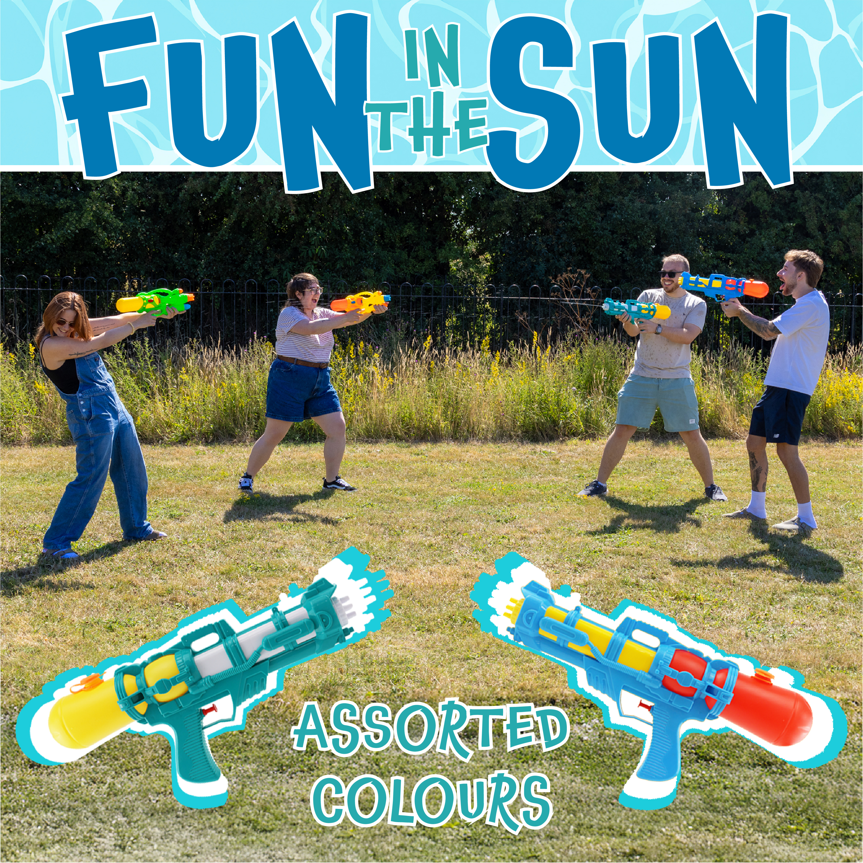 SUPER FUN SUMMER ACTIVITY: Perfect for the pool, garden, or beach – these colourful Water Guns are a must-have for summer. Ideal for kids, teens, and adults alike, it’s time to beat the heat with a splash of excitement!