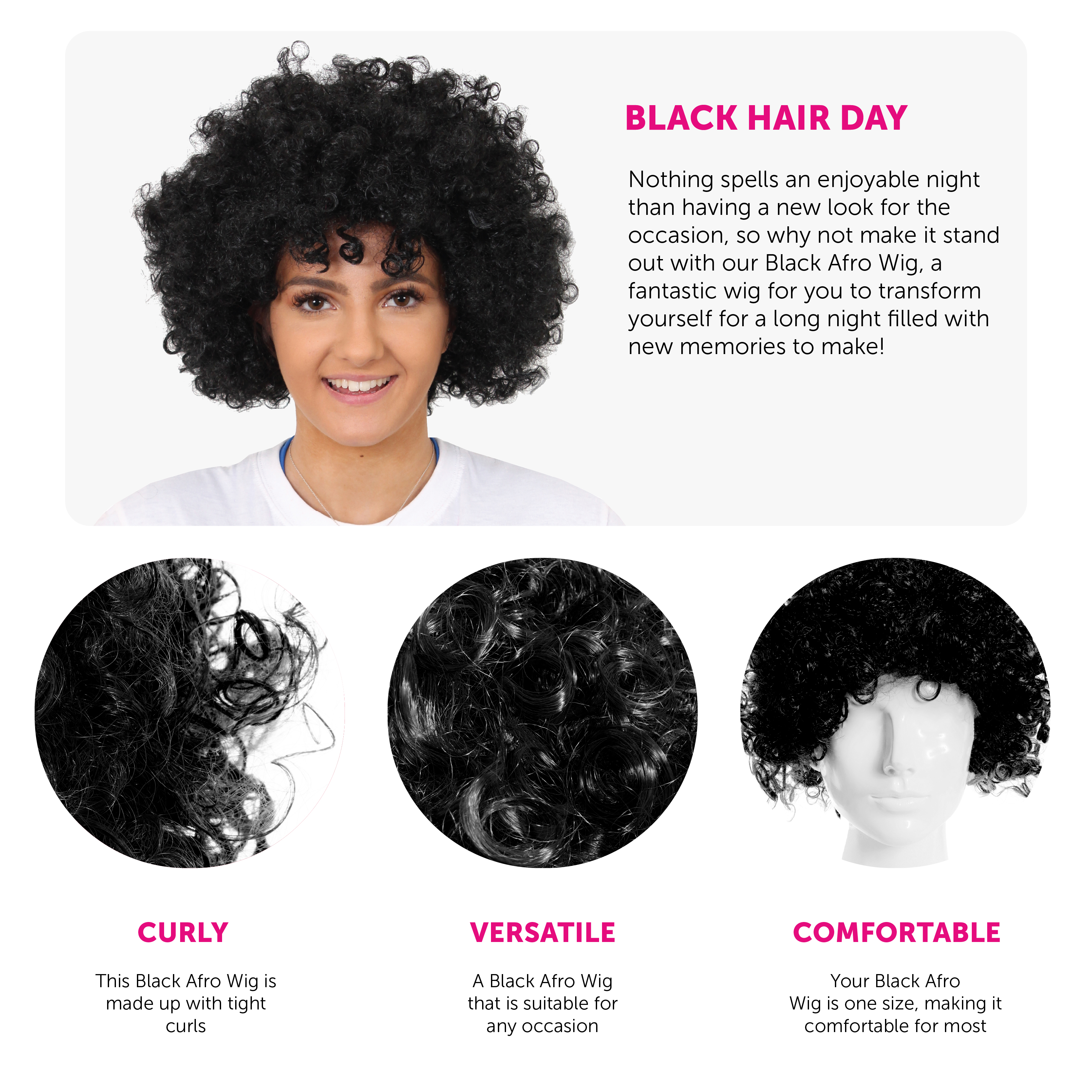 BLACK AFRO WIG: Nothing spells an enjoyable night than having a new look for the occasion, so why not make it stand out with our Black Afro Wig, a fantastic wig for you to transform yourself for a long night filled with new memories to make!