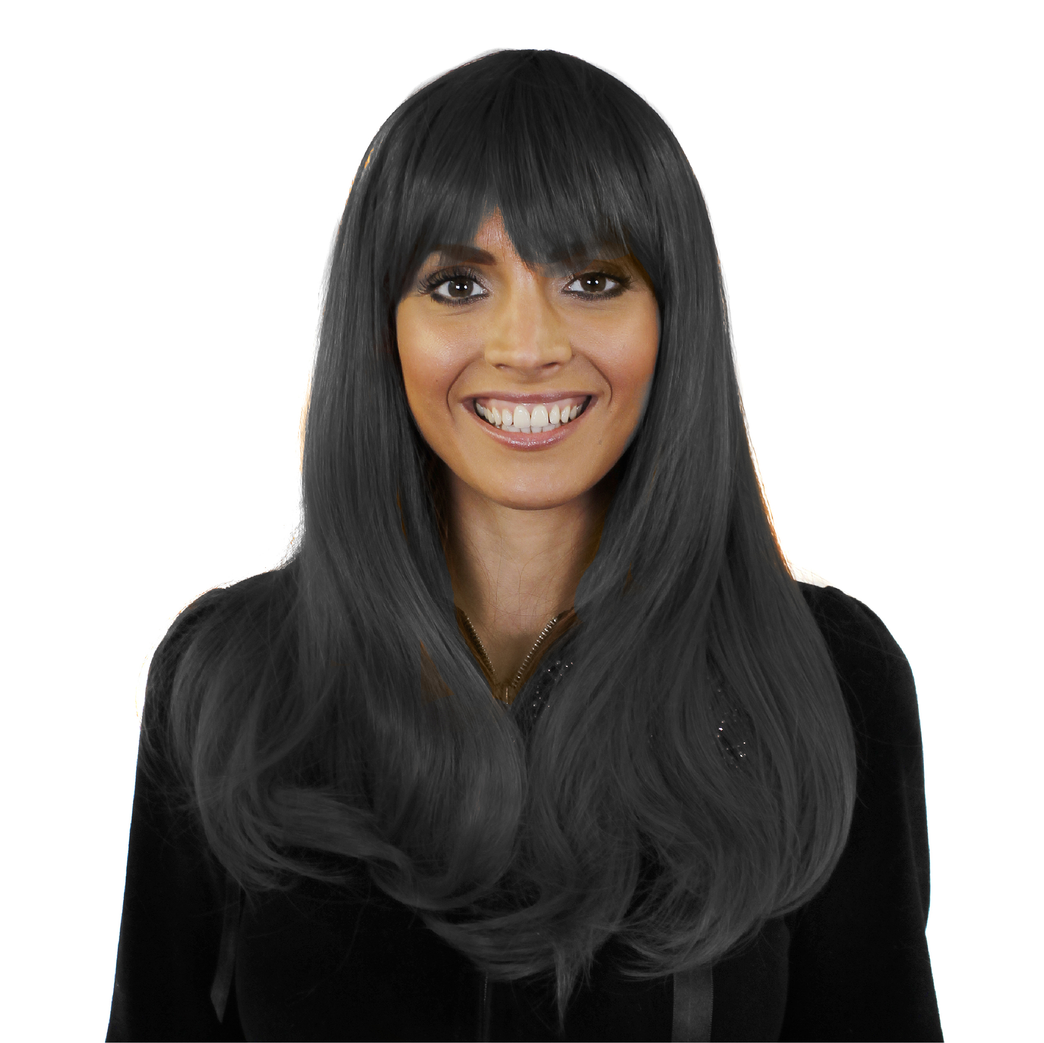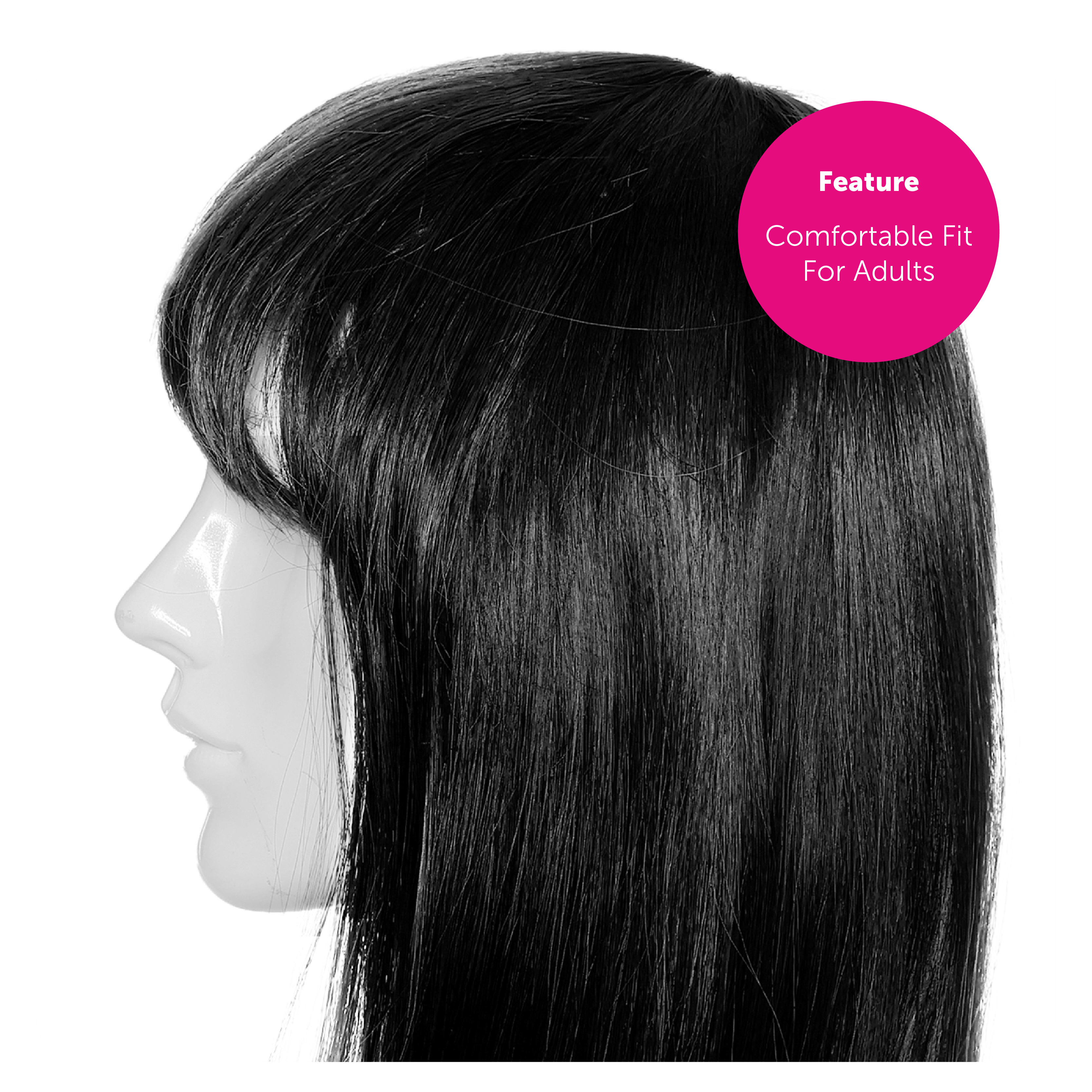 BLACK WIG DETAILS: This long Black Wig is a luscious, dark Black Wig with a fringe, it is suitable for heat styling in any way you want, making it the perfect addition to your outfit!