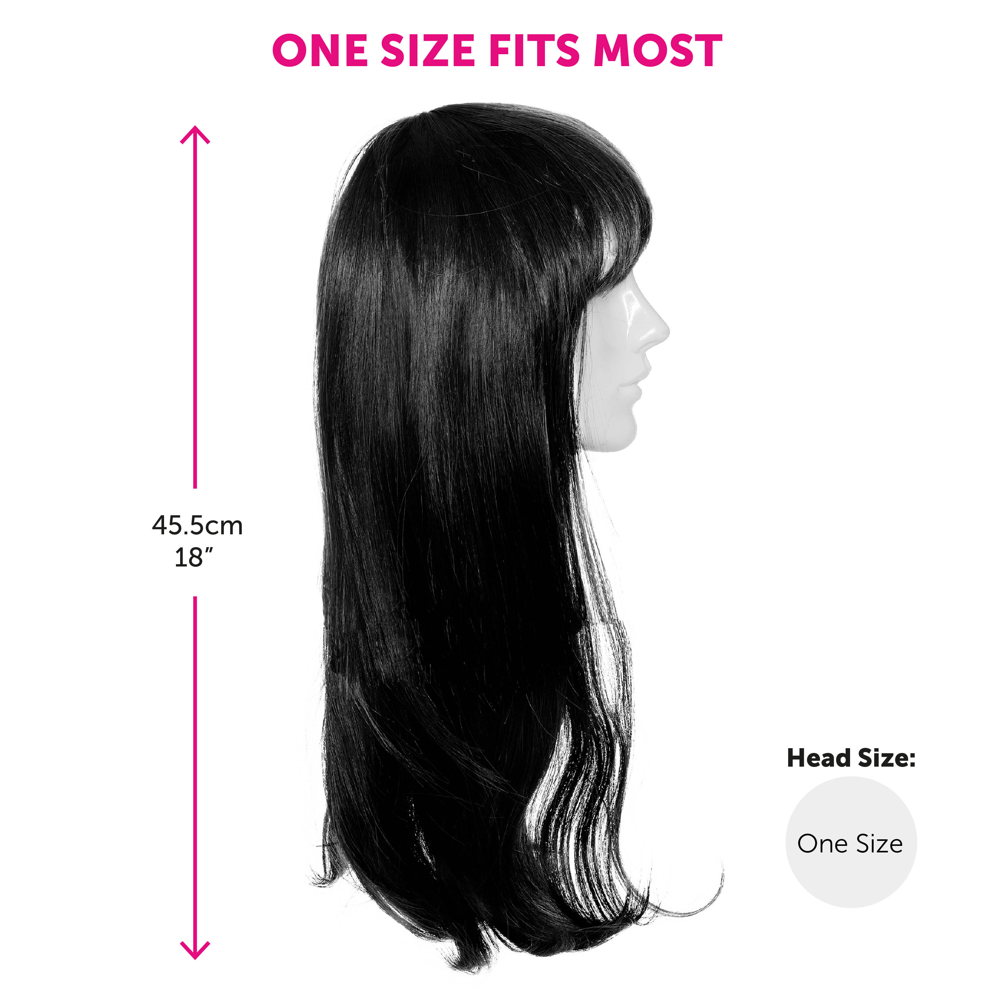 ONE SIZE FITS MOST: The Black Wig is one size making it suitable for most Adults to wear comfortably and measures a length of 45.5cm (18"), it can be styled to suit your needs!