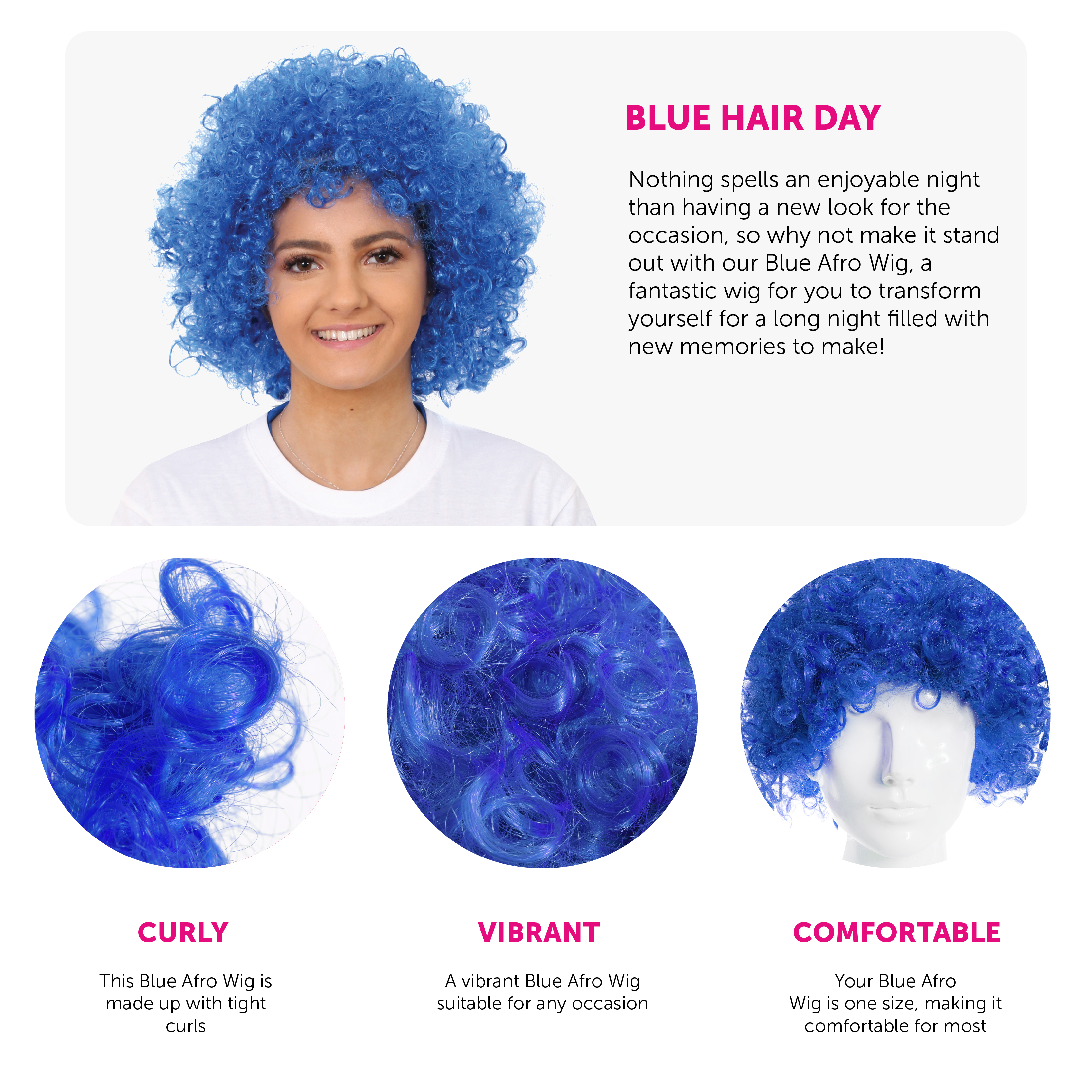PERFECT FOR FANCY DRESS EVENTS AND OCCASIONS: Whether it be a regular Fancy Dress outing, a big Hen-do night party or event, you can be sure to count on our Blue Afro Wig for making some great memories!
