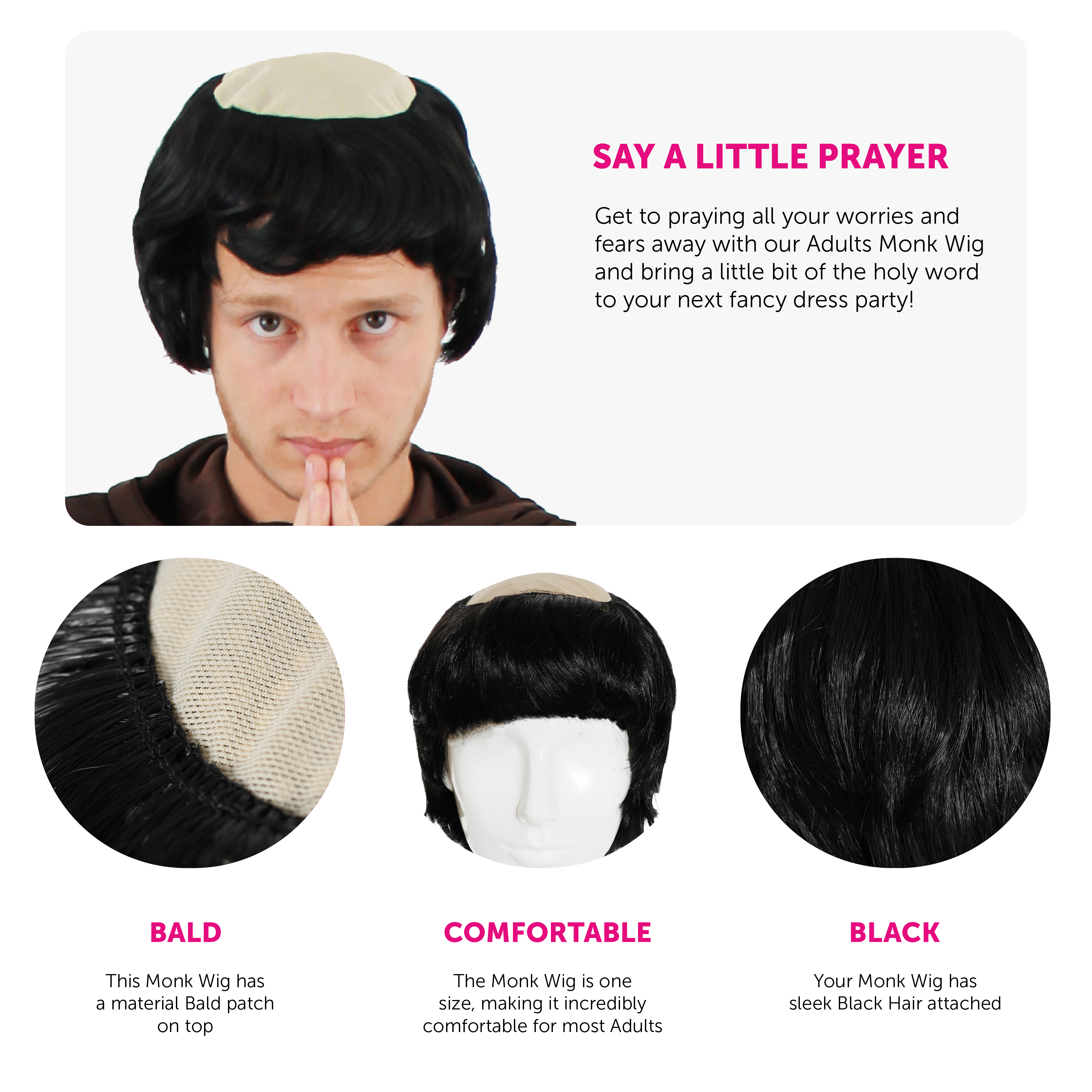 - ADULTS MONK WIG: Get to praying all your worries and fears away with our Adults Monk Wig and bring a little bit of the holy word to your next fancy dress party!