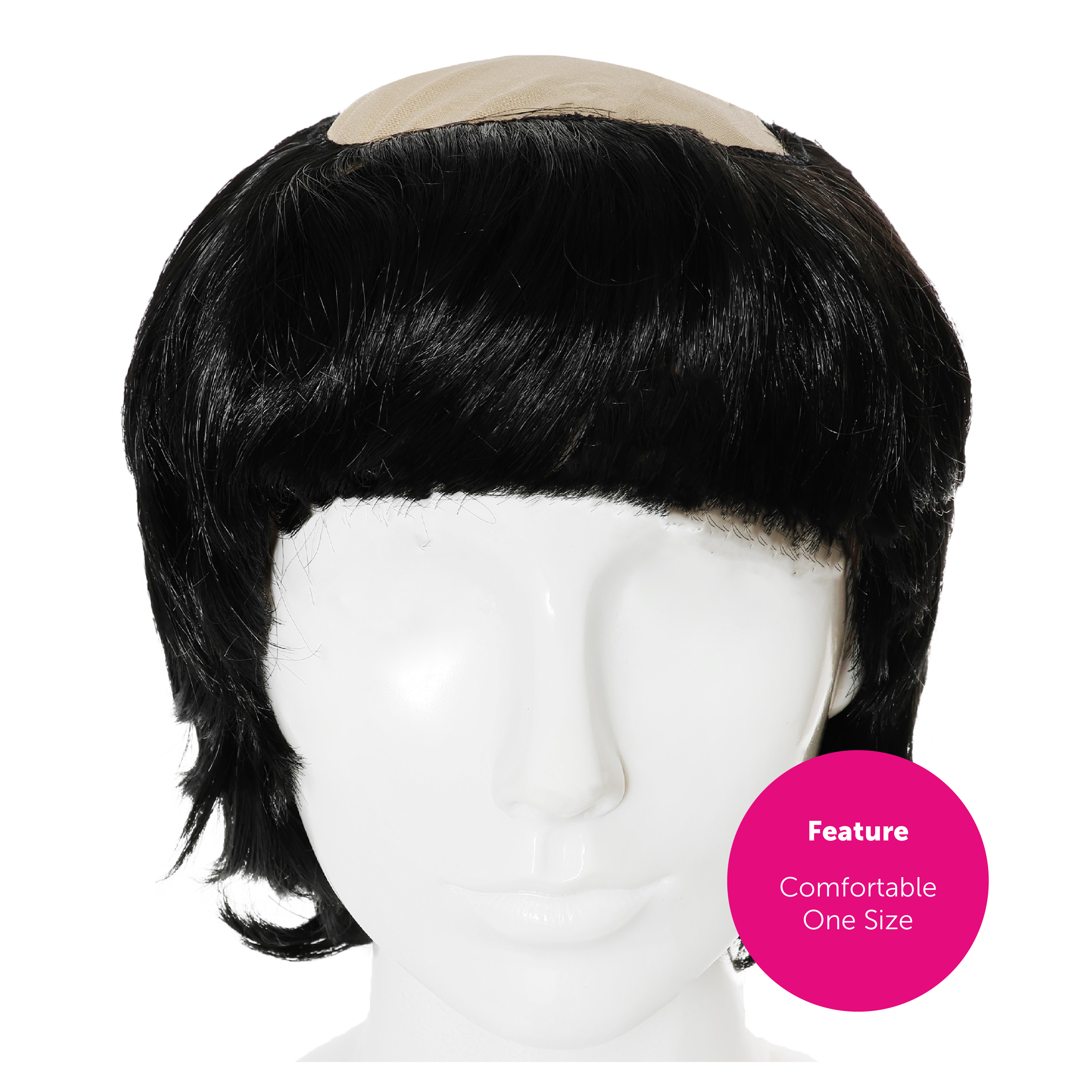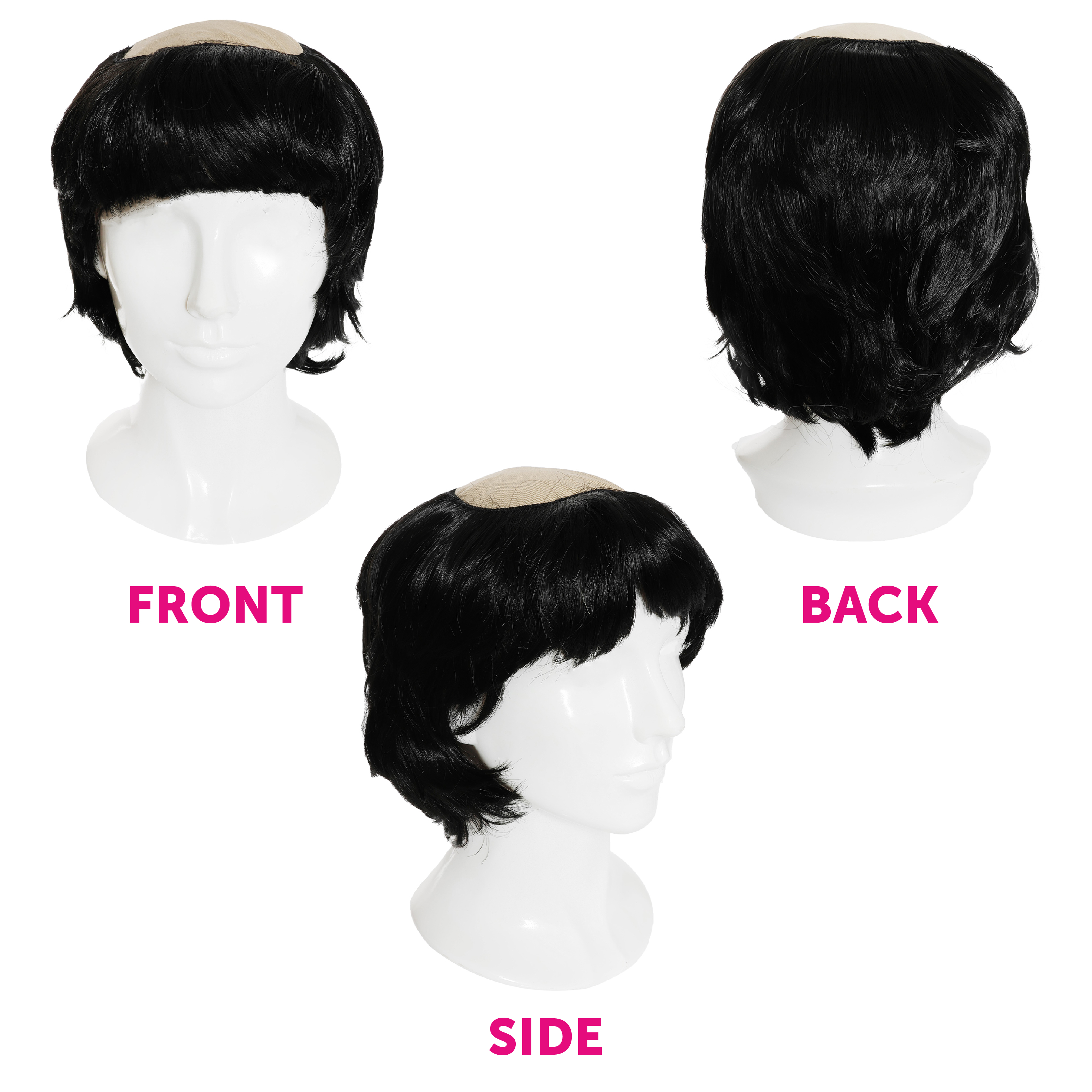 - MONK WIG DETAILS: Your Adults Monk Wig is a comfortable wig that will suitably fit around head size around 58cm, with a bald spot on the top and black hair surrounding the front, back and sides for an authentic look!