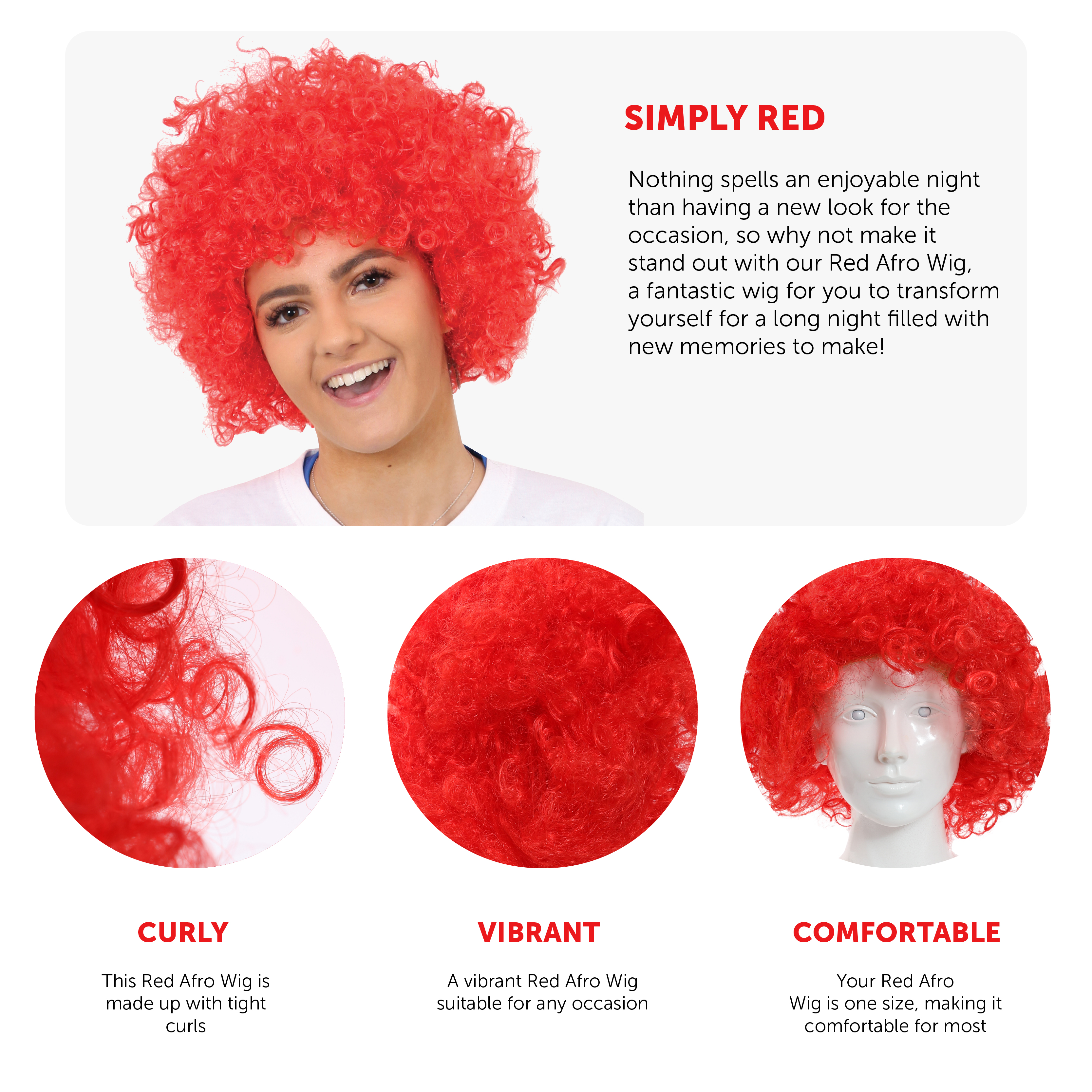 PERFECT FOR FANCY DRESS EVENTS AND OCCASIONS: Whether it be a regular Fancy Dress outing, a big Hen-do party or event, you can be sure to count on our Red Afro Wig for making some great memories!