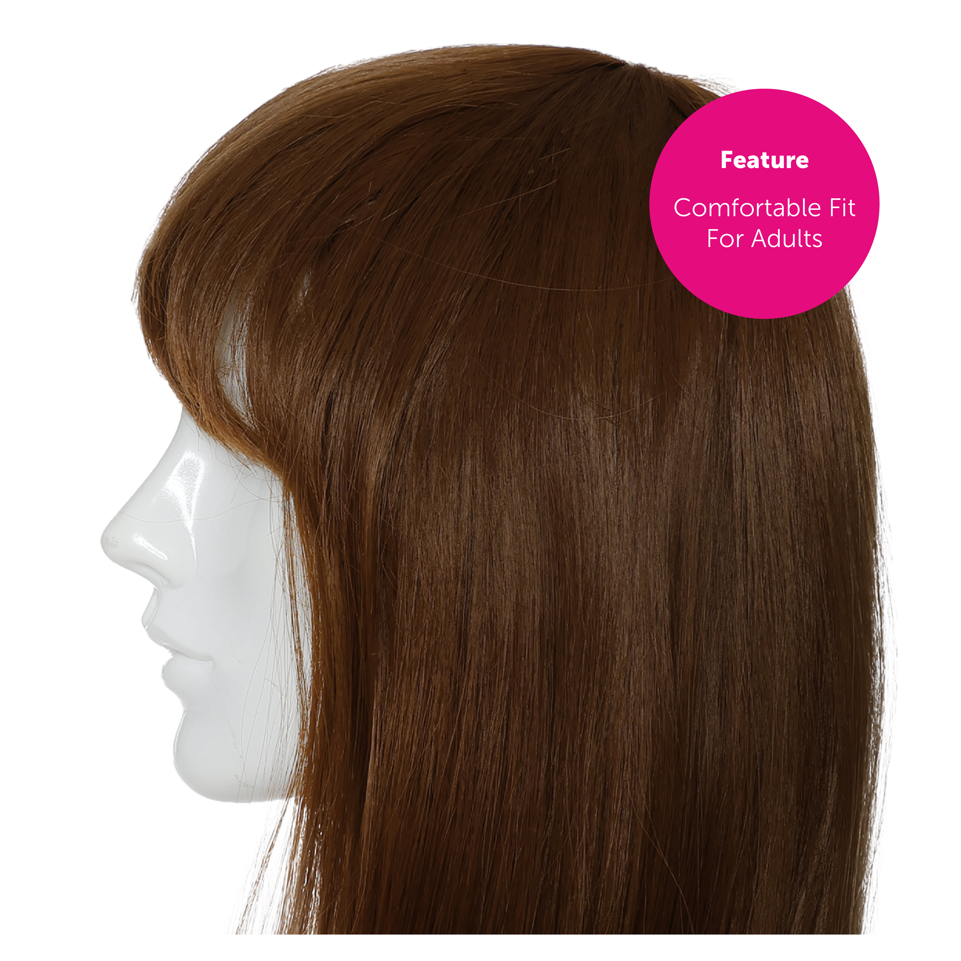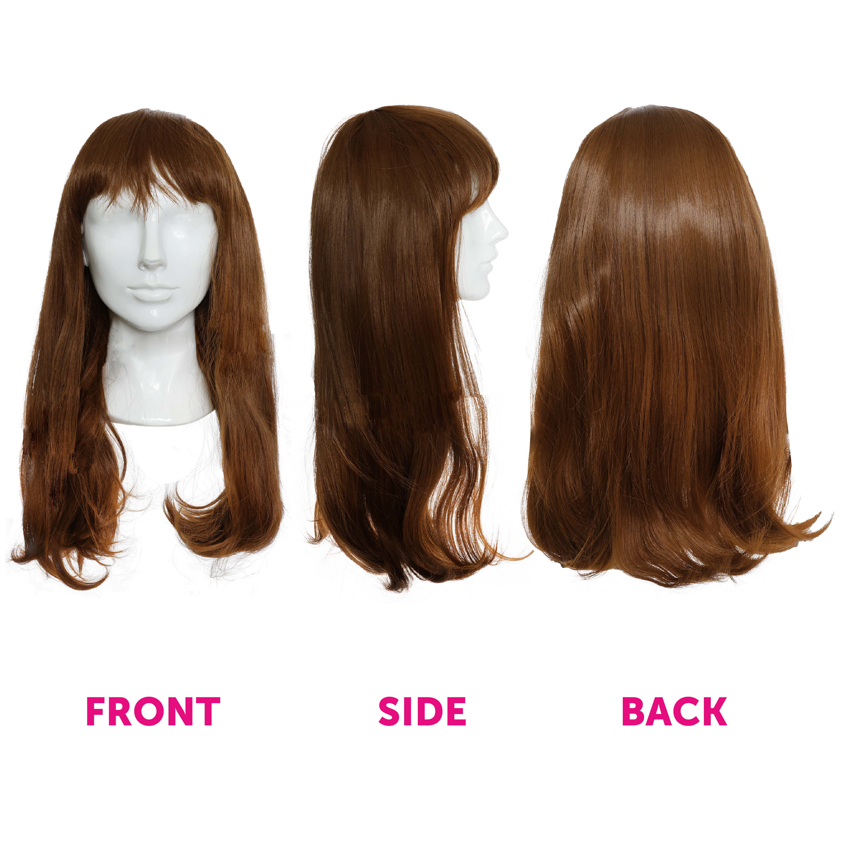BROWN WIG DETAILS: This long Brown Wig is a luscious, light Brown Wig with a fringe, it is suitable for heat styling in any way you want, making it the perfect addition to your outfit!