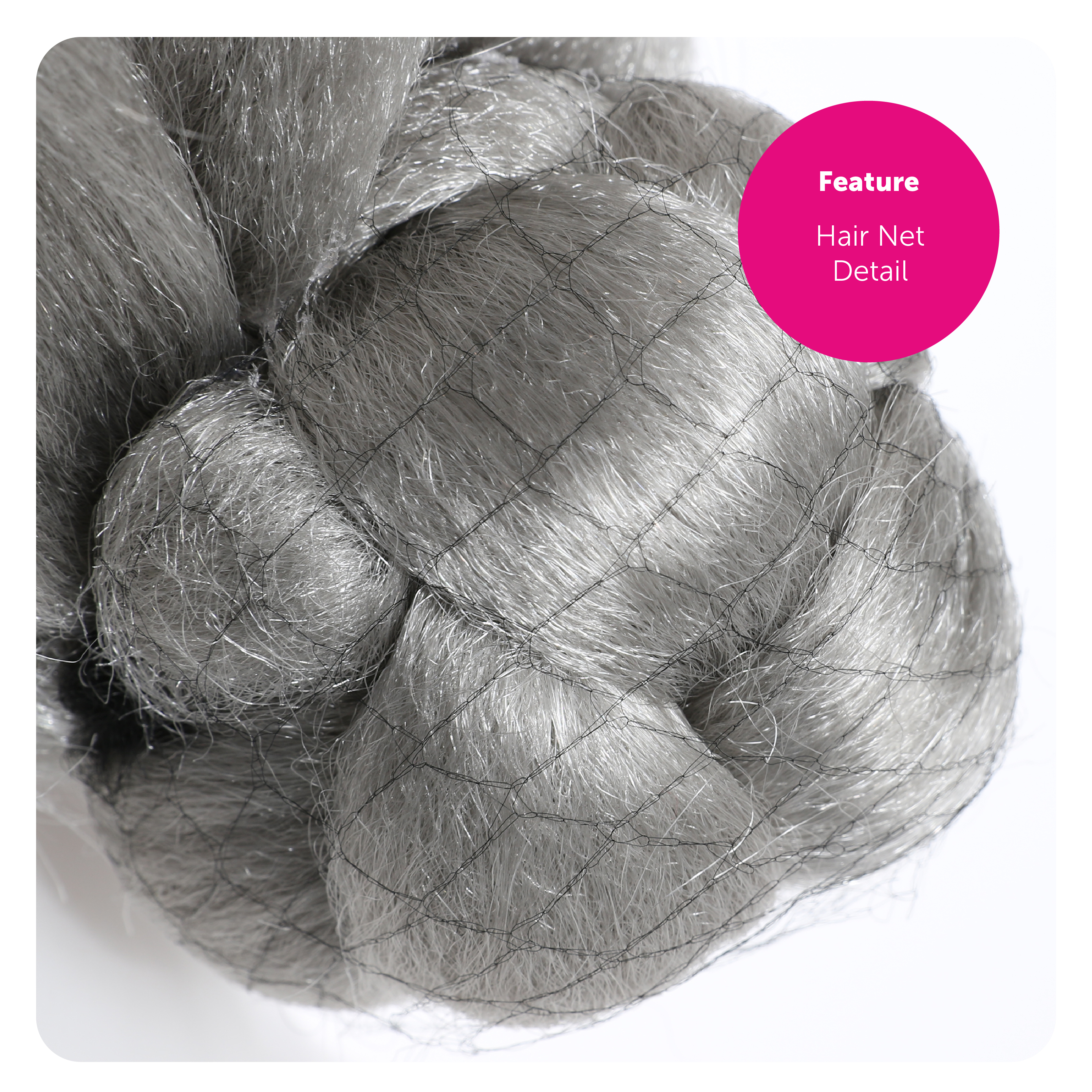 GREY BUN WIG DETAILS: Your Women’s Grey Bun Wig is a comfortable fit, perfectly suited to those around 58cm head circumference, and a non-irritable material to wear with ease throughout the day!