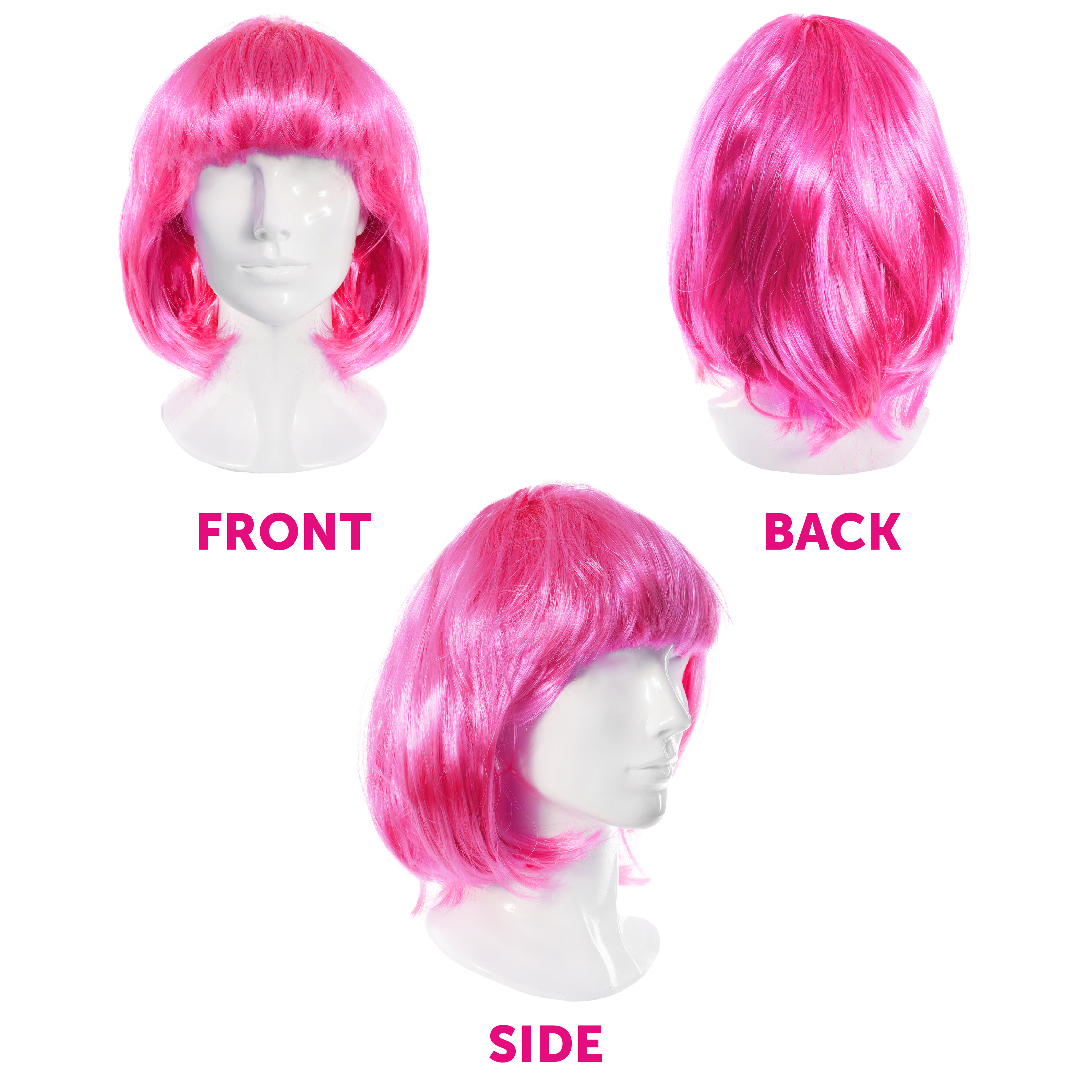 AVAILABLE IN MULTIPLE PACKS: Not only do you get an already amazing wig for yourself, if you’re looking to turn heads with your friends, then check out our Hot Pink Bob Wigs available in Singles, Packs of 3, Packs of 6, Packs of 12, and a Pack of 24!