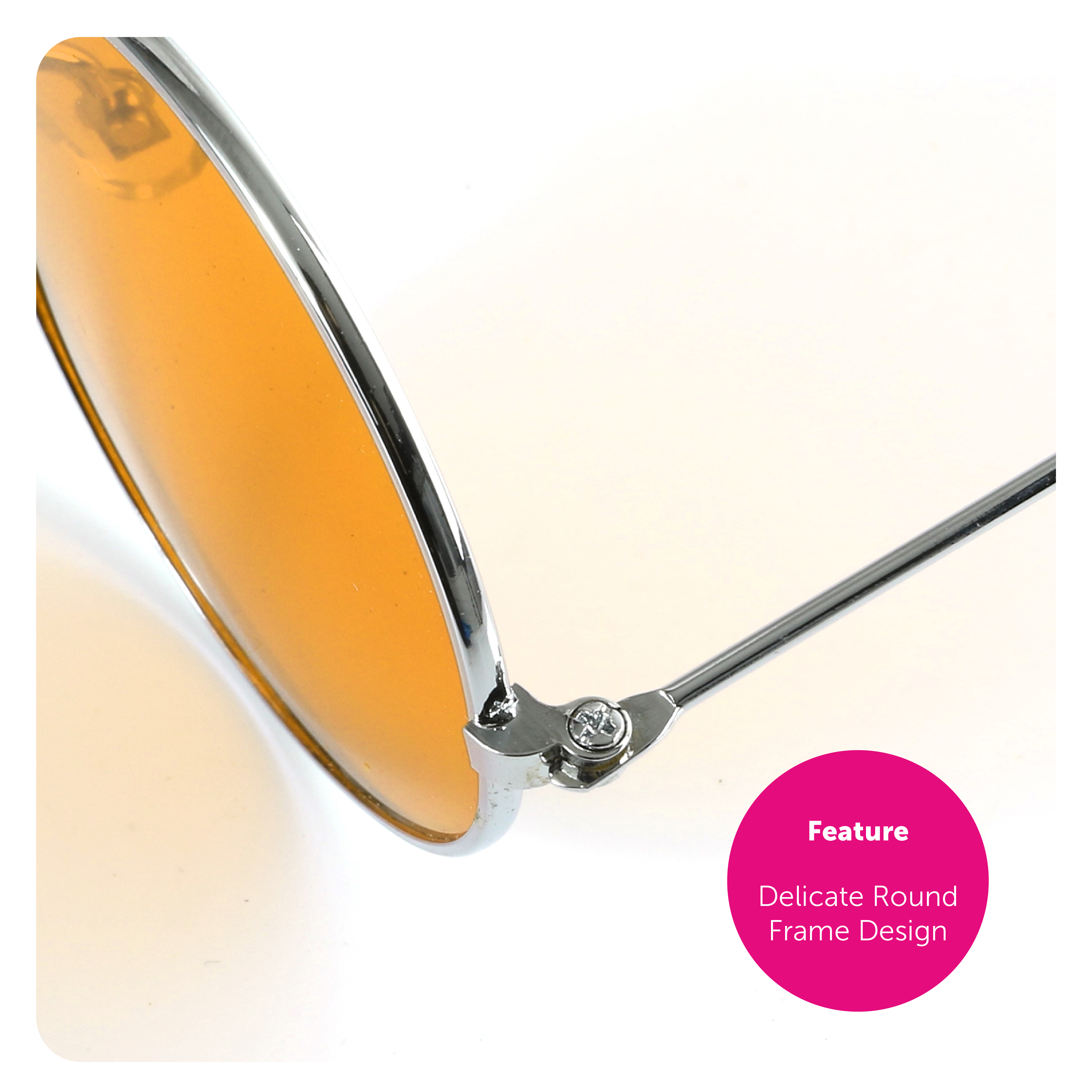 ONE SIZE FITS MOST: The Orange Lens Round Glasses and Black Afro Wig are a suitable size to fit most Adults comfortably and the Hippy Necklace has an adjustable clip fastener for the right fit!