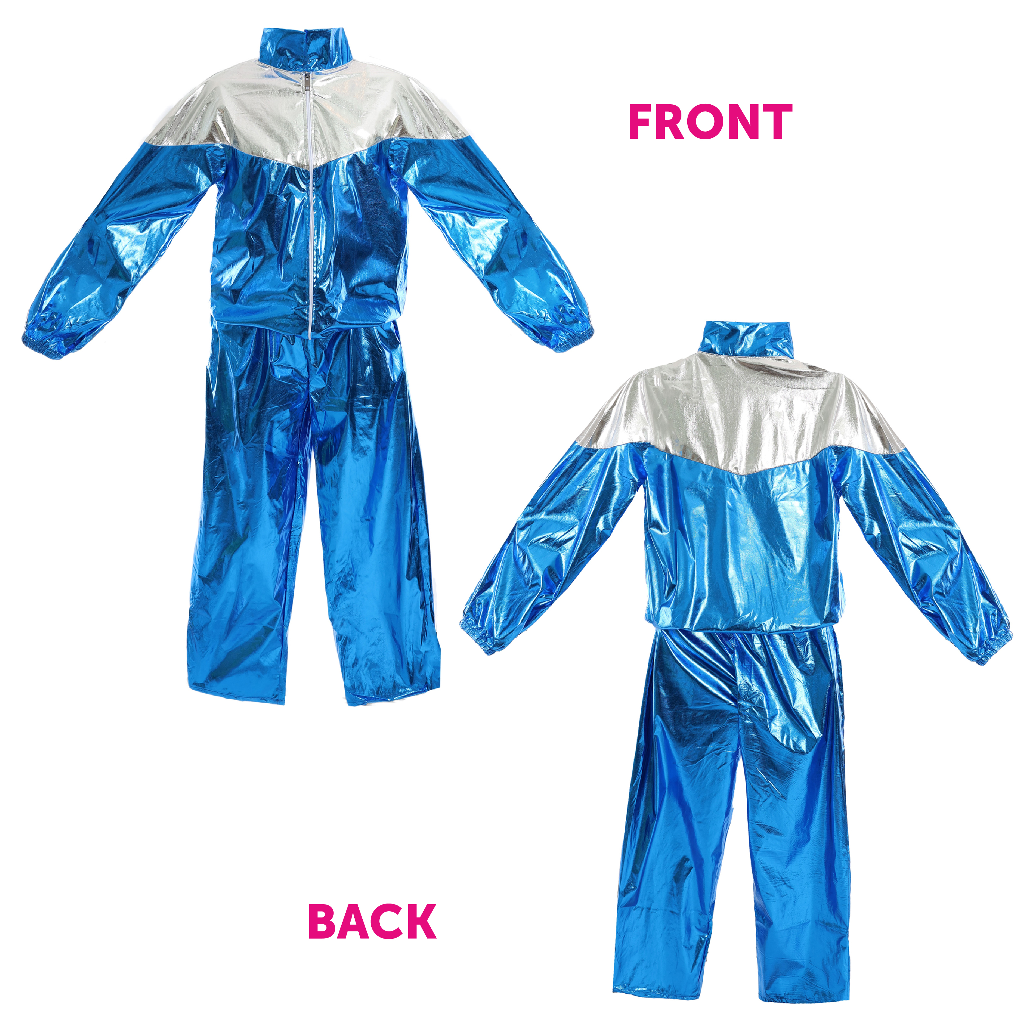 PERFECT FOR 80'S THEMED FANCY DRESS: Are you looking for that retro British style to flaunt at the next 80's themed Fancy Dress party? Look no further, this Adults Blue and Silver Shell Suit Costume with Accessories, is perfect for you!