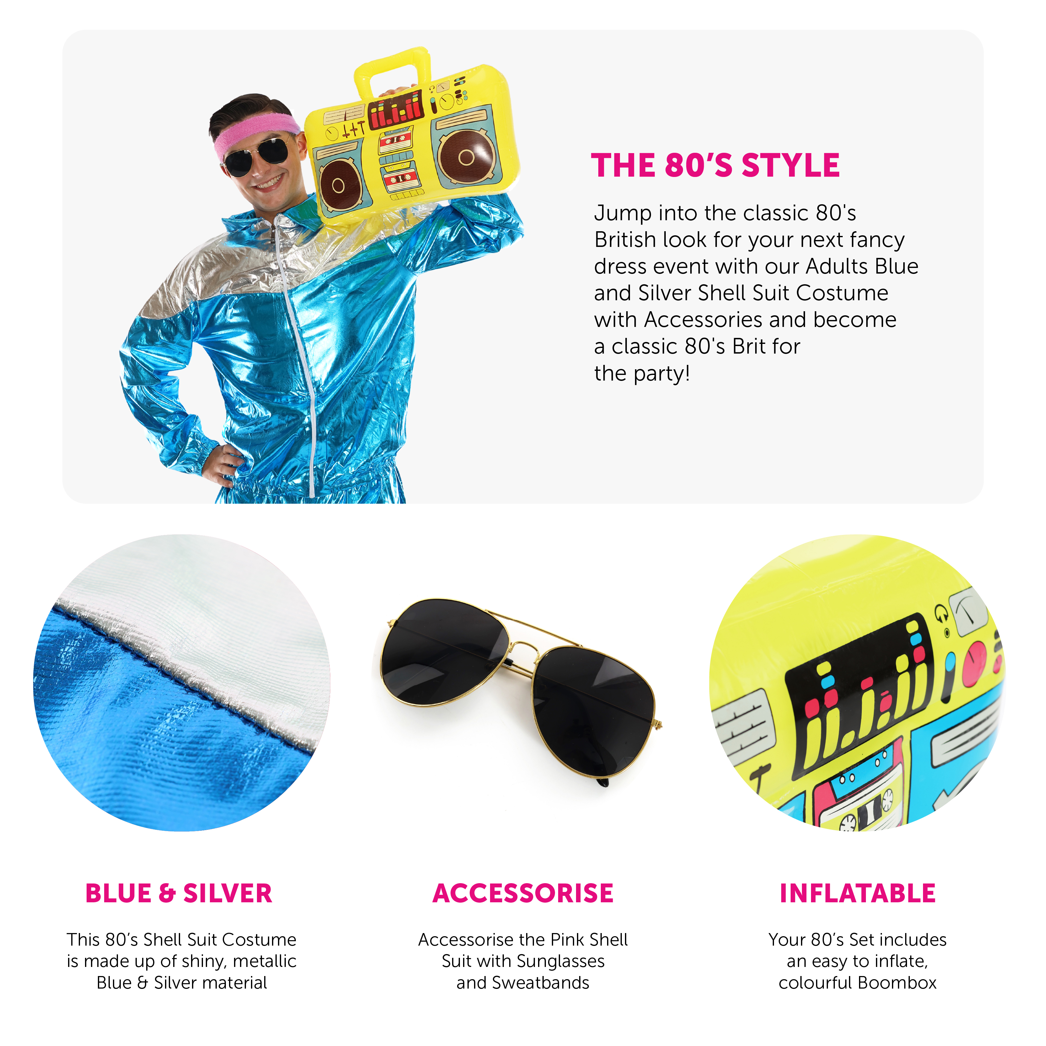 Mens Blue & Silver Shell Suit Costume with Boombox & Accessories   £26.99
