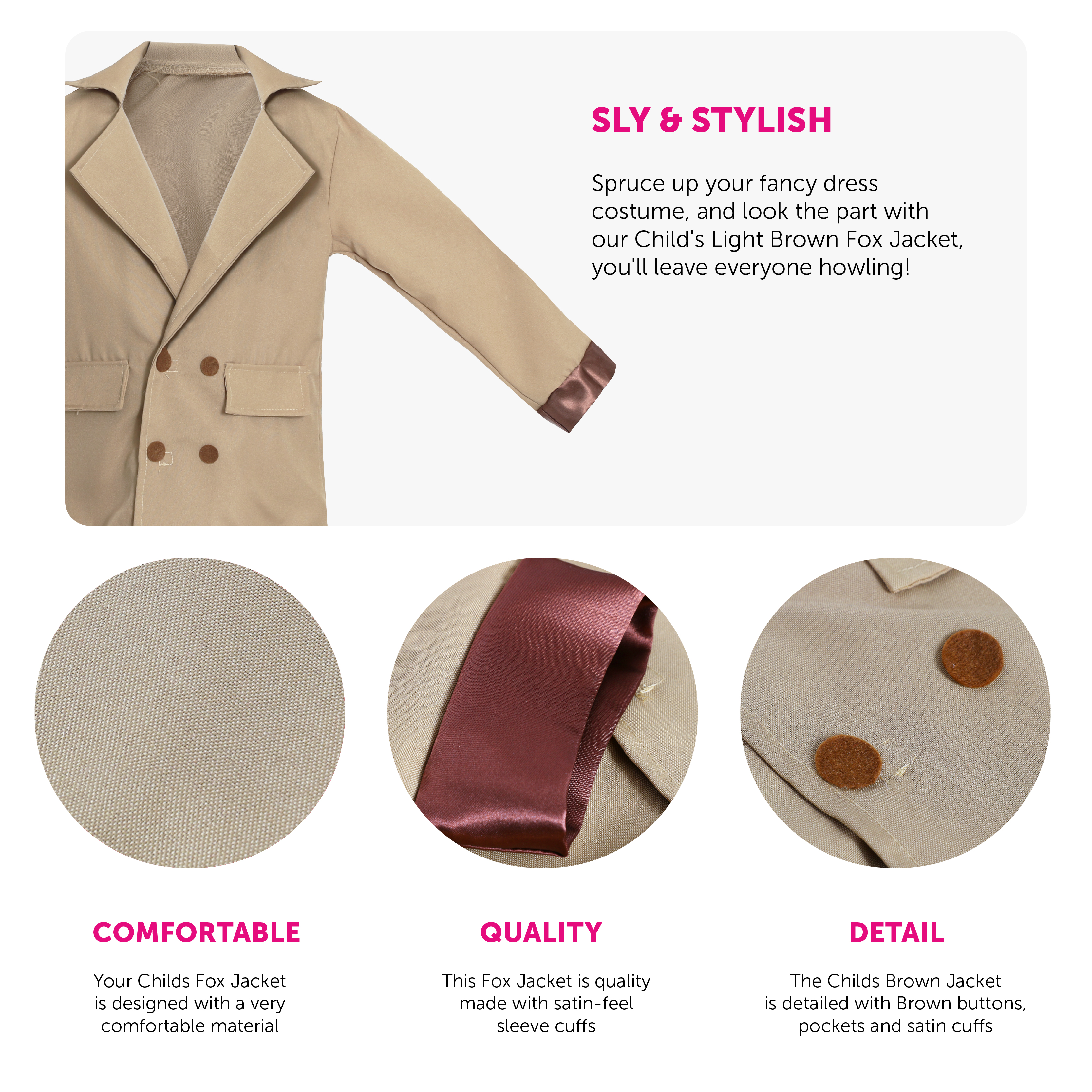 PERFECT FOR ANY FANCY DRESS: Add a Fox Tail and Ears, or a Wig and Hat and become any character you could imagine for your upcoming fancy dress event, with our Child's Light Brown Fox Jacket!