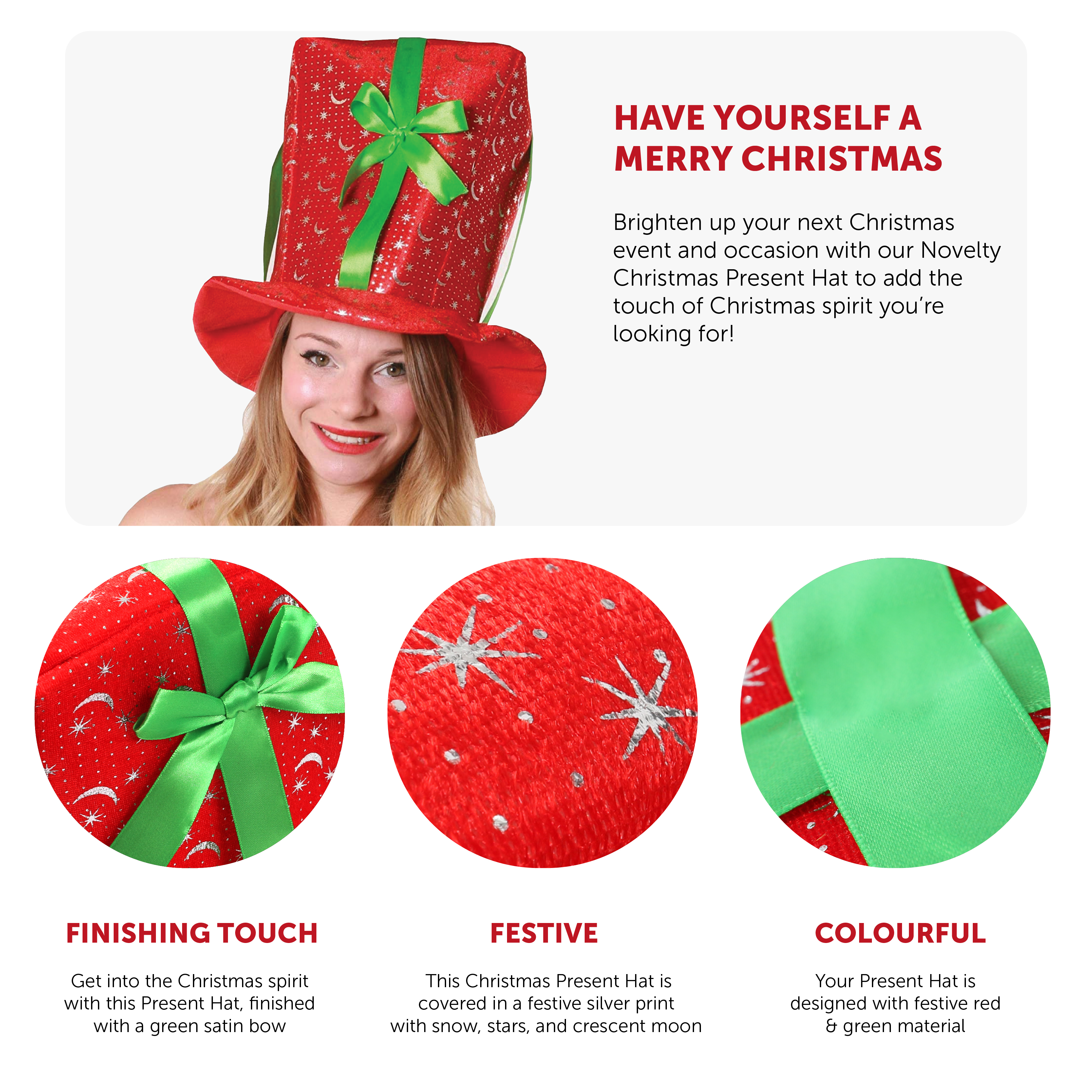 CHRISTMAS PRESENT HAT: Brighten up your next Christmas event and occasion with our Novelty Christmas Present Hat to add the touch of Christmas spirit you’re looking for!