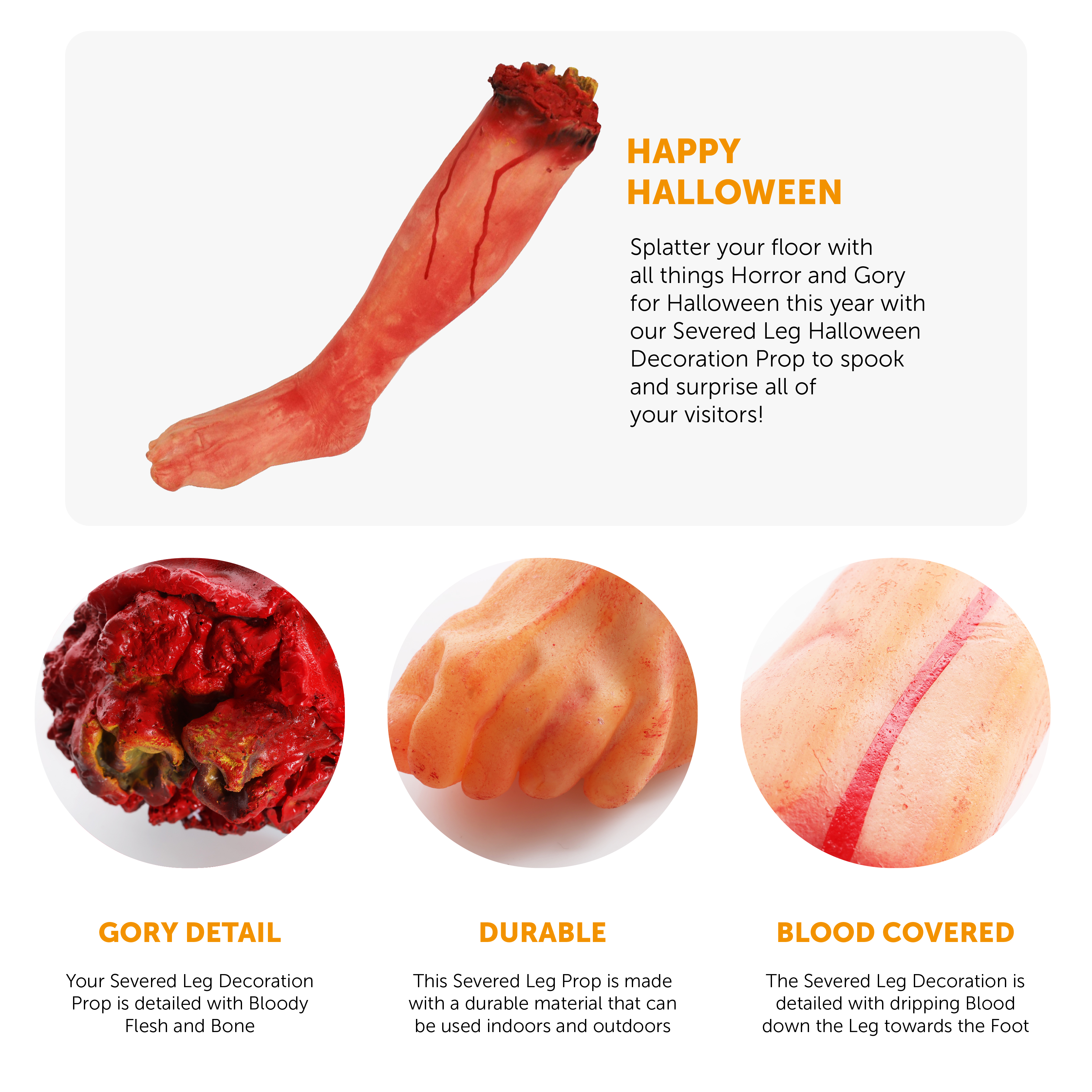 SEVERED LEG HALLOWEEN DECORATION: Splatter your floor with all things Horror and Gory for Halloween this year with our Severed Leg Halloween Decoration Prop to spook and surprise all of your visitors!